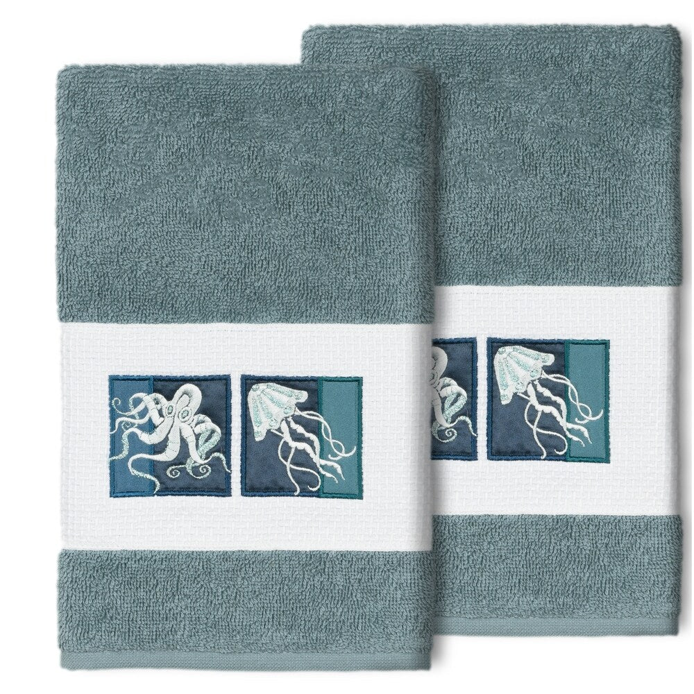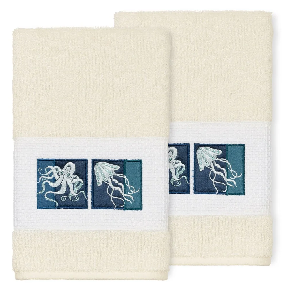 Authentic Hotel and Spa 100% Turkish Cotton AVA 2PC Embellished Hand Towel Set
