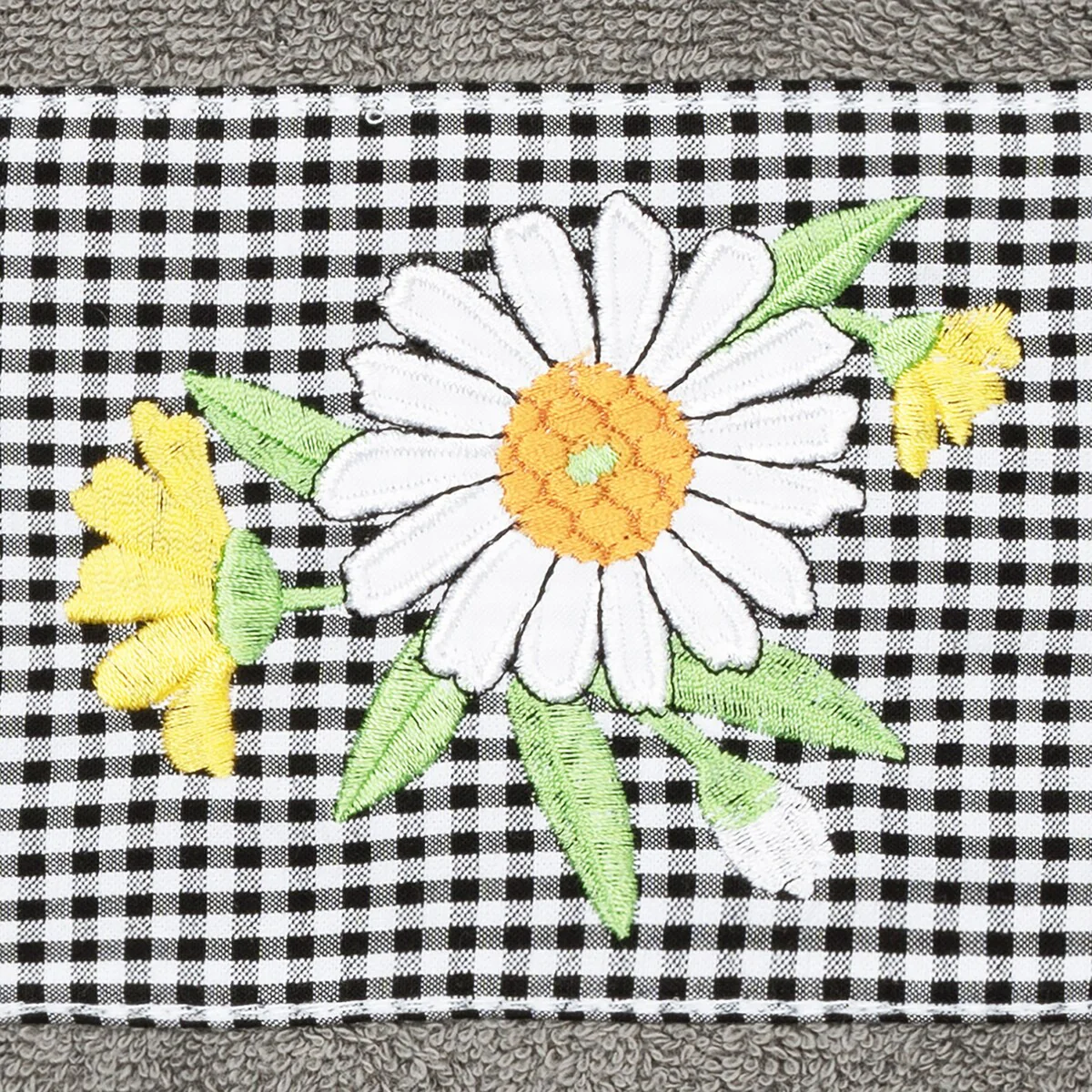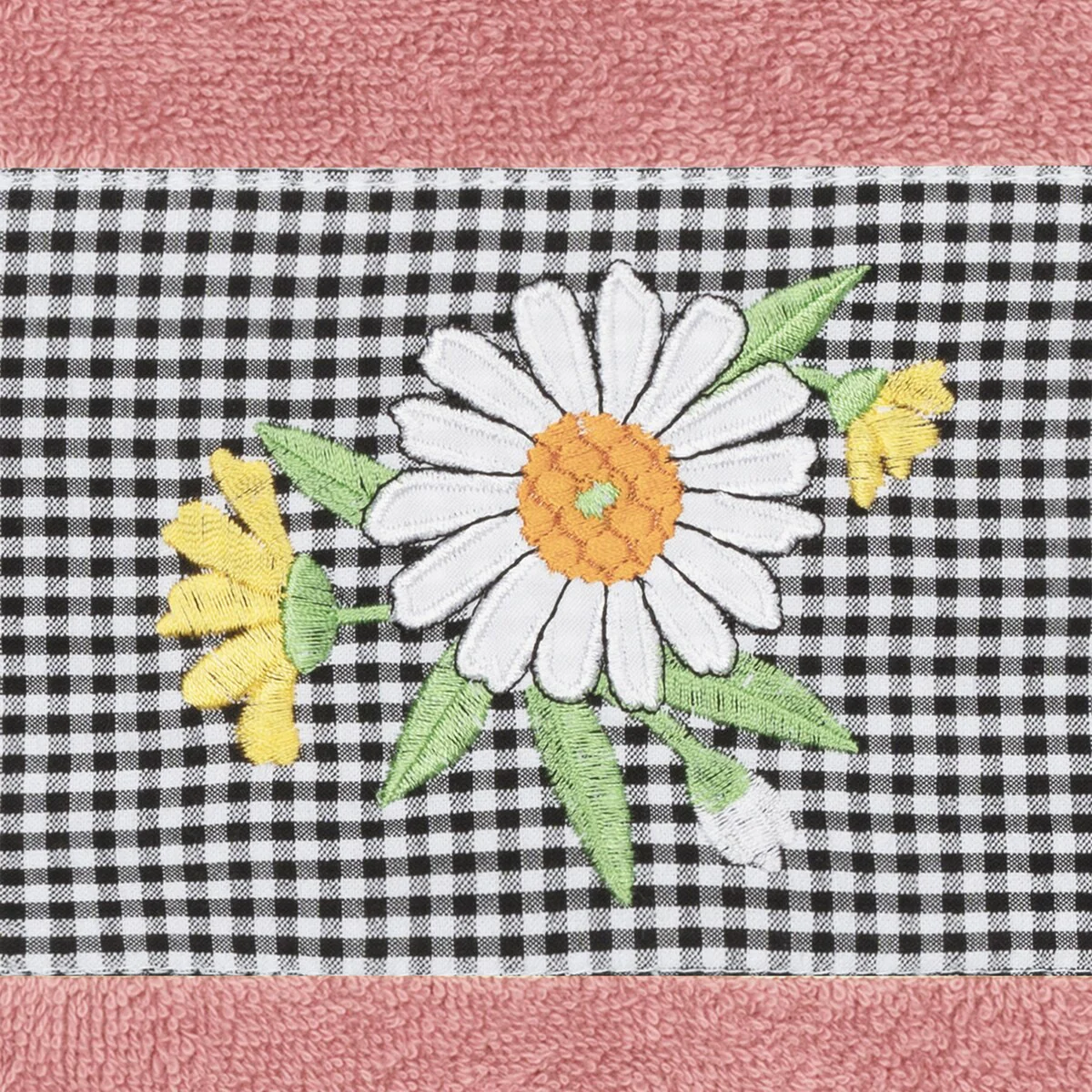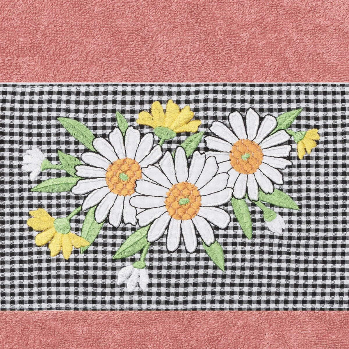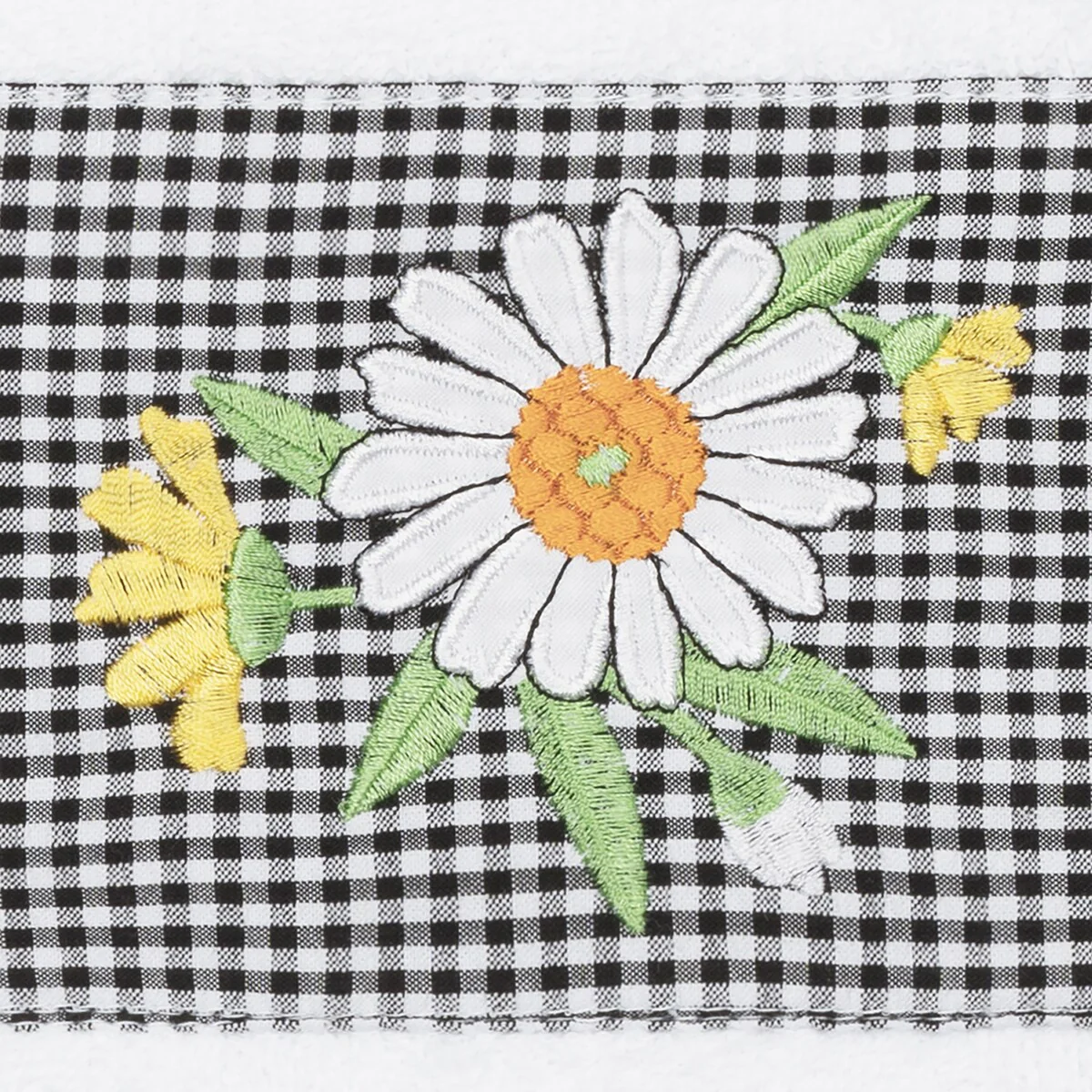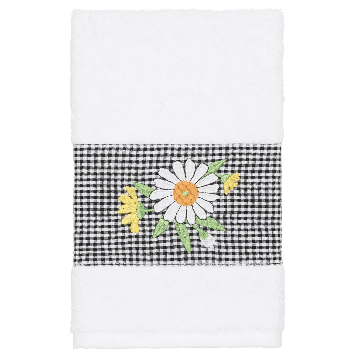 The Daisy Embellished Towel Collection features a fresh bouquet embroidered on a textured gingham check cloth border. These soft and luxurious towels are made of 100% premium Turkish Cotton and offer lasting absorbency and superior durability.