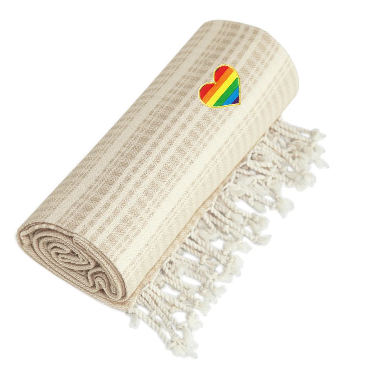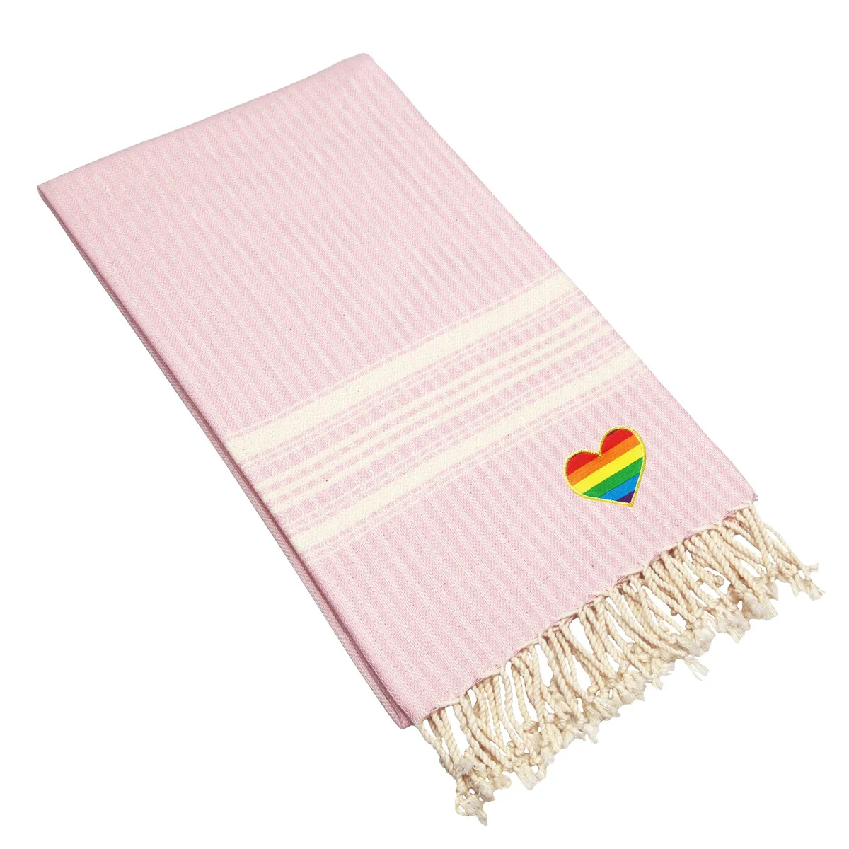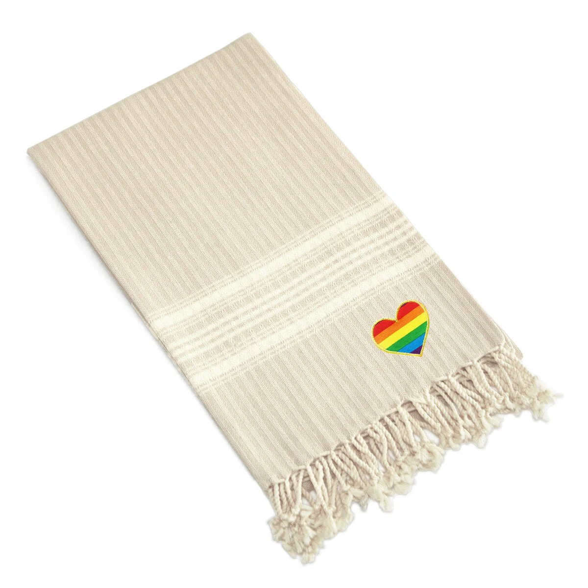 - One Cheerful Rainbow Heart embroidered Pestemal Beach Towel