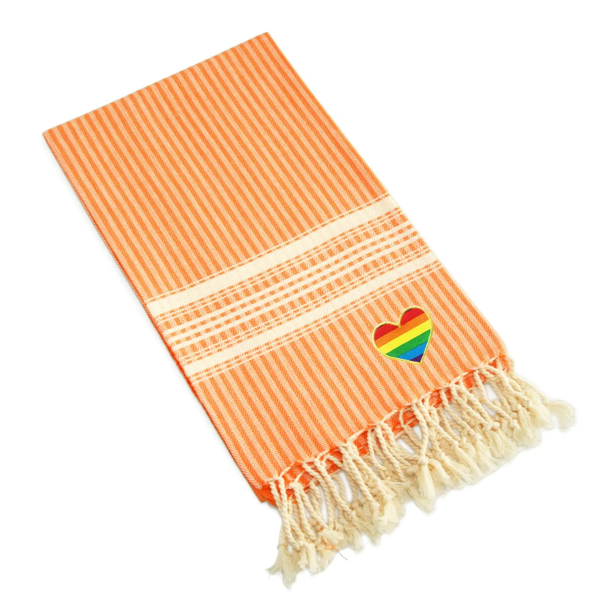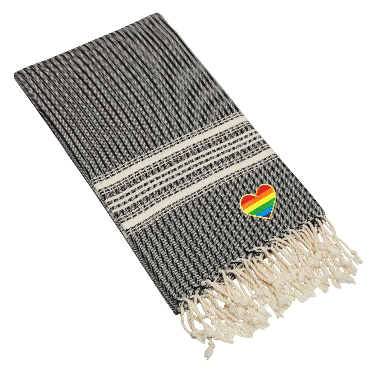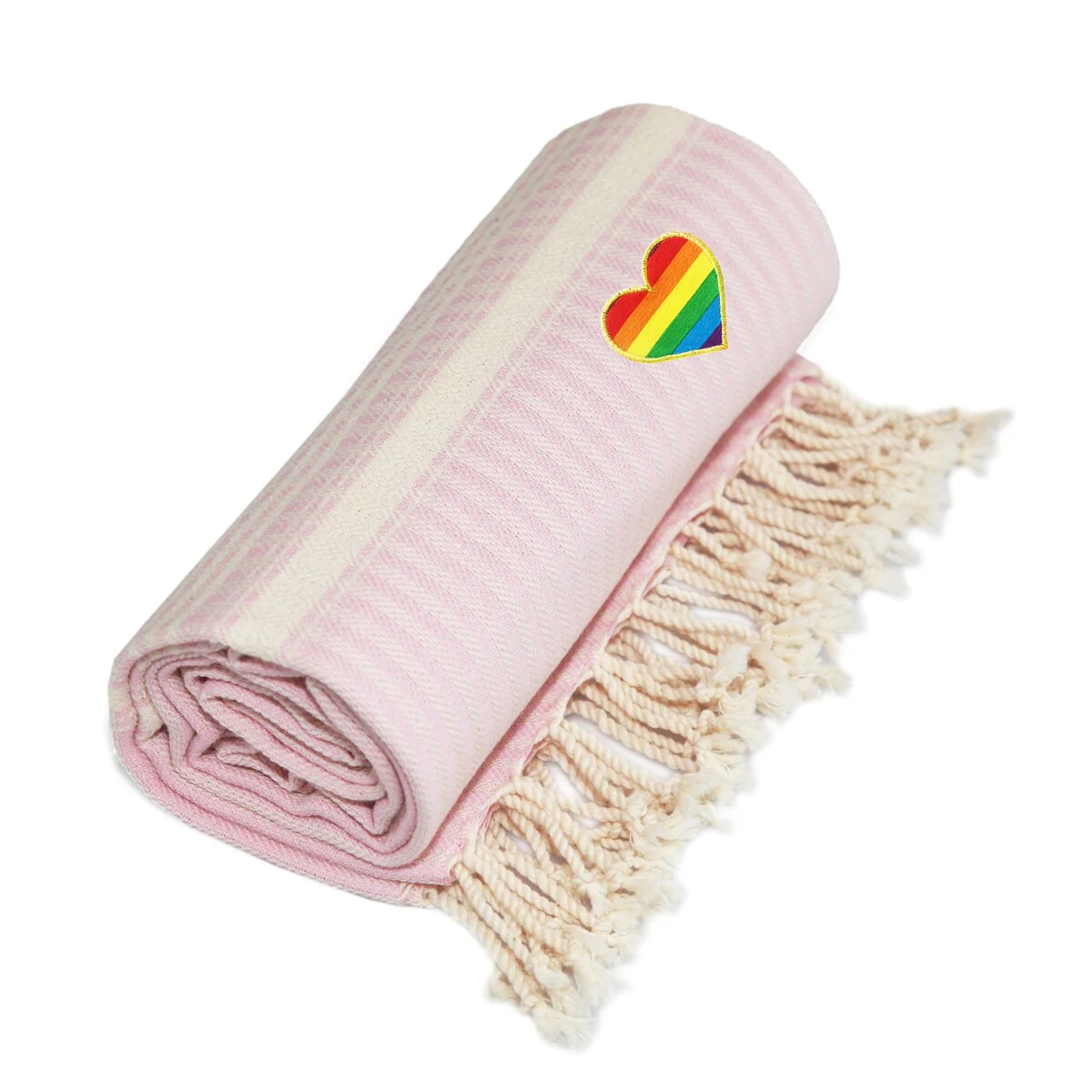 - One Cheerful Rainbow Heart embroidered Pestemal Beach Towel