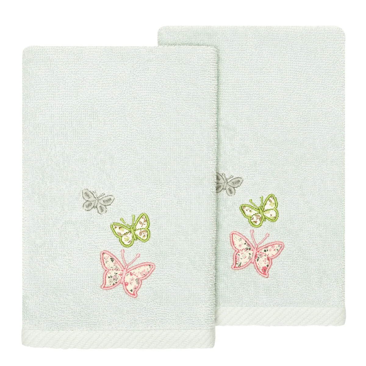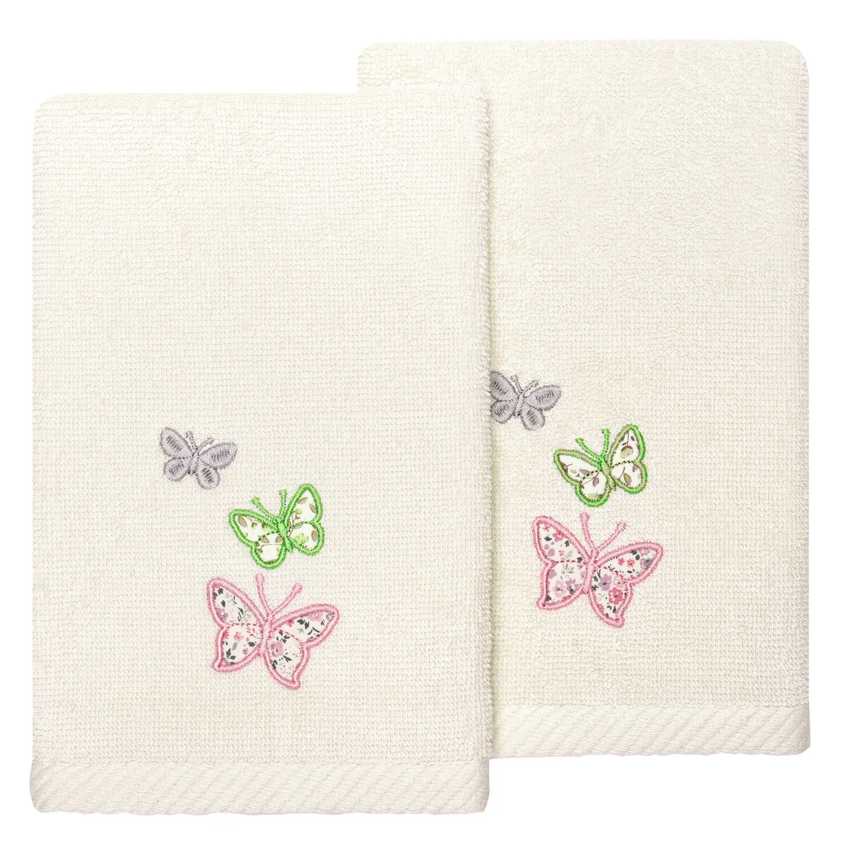 Your decorations are not complete without exquisite embroidered towels for the comfort of your family and guests. The Mariposa towels feature calico applique butterflies and are trimmed with a calico border. Cloud soft and super absorbent, these luxurious, durable towels keep their plush appearance after washing. The Mariposa Towel Collection brings a cottage spirit and richness to your home decor and makes a great gift!