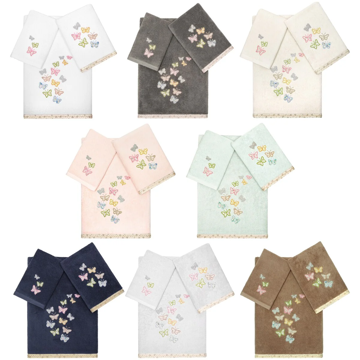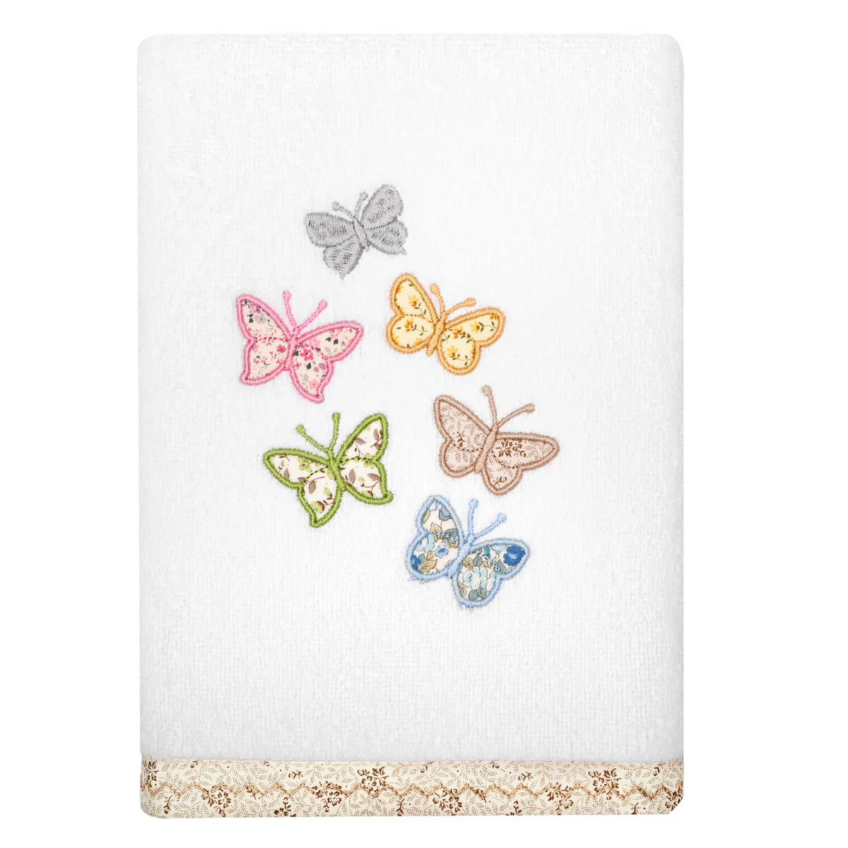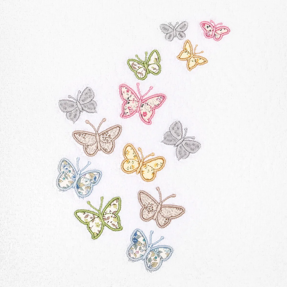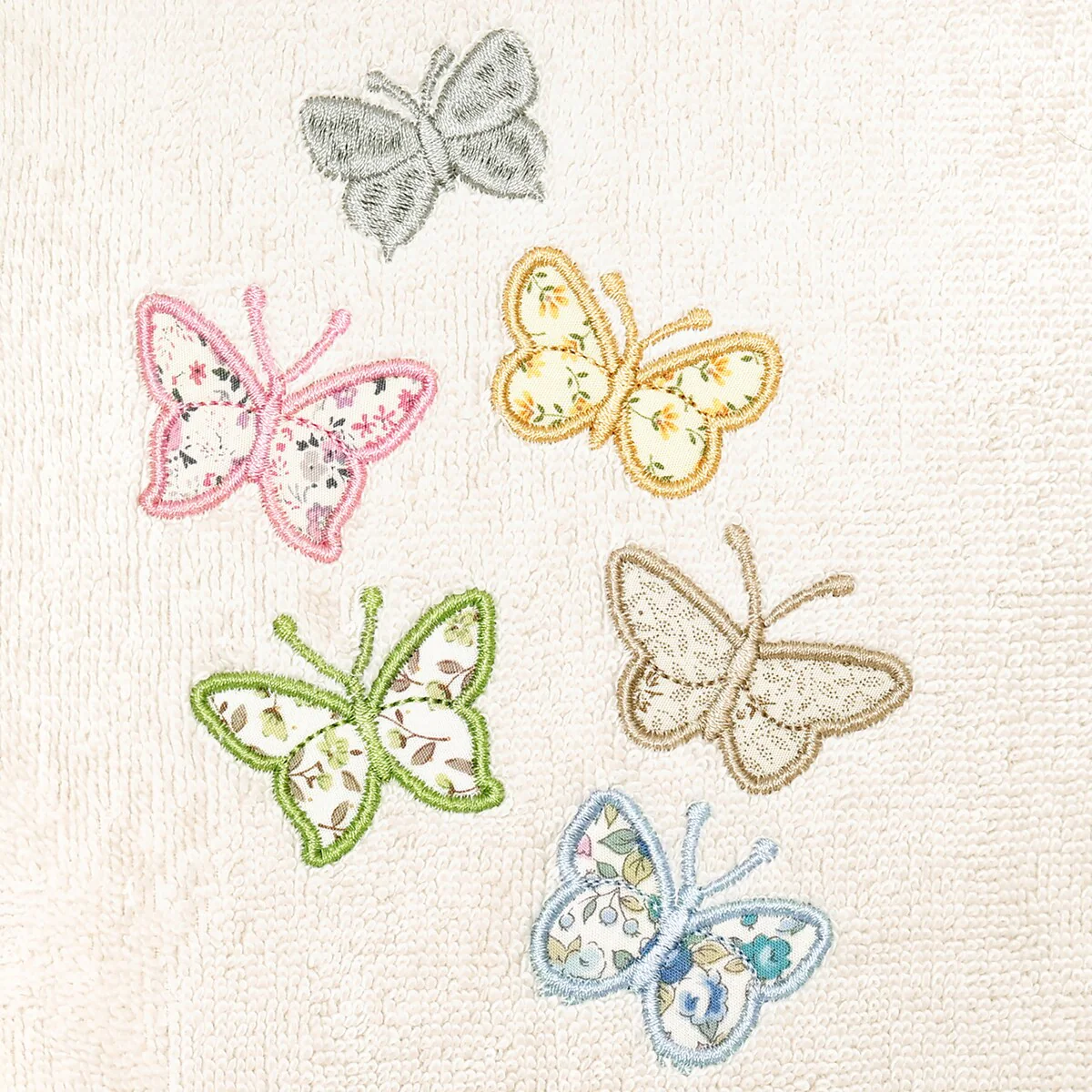 Your decorations are not complete without exquisite embroidered towels for the comfort of your family and guests. The Mariposa towels feature calico applique butterflies and are trimmed with a calico border. Cloud soft and super absorbent, these luxurious, durable towels keep their plush appearance after washing. The Mariposa Towel Collection brings a cottage spirit and richness to your home decor and makes a great gift!