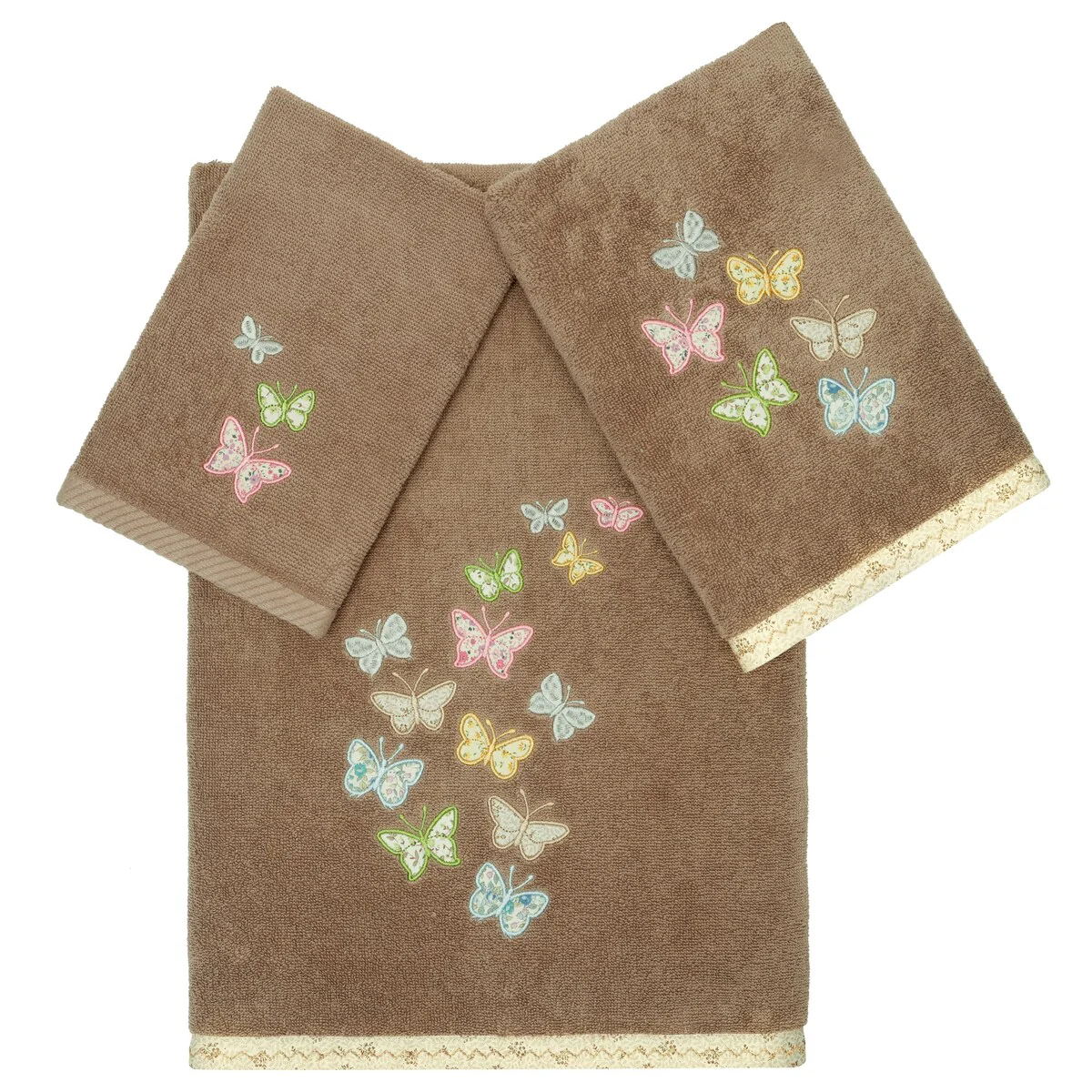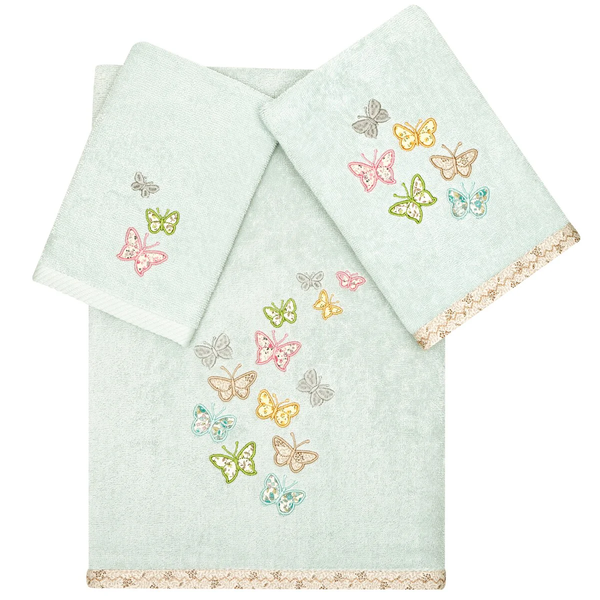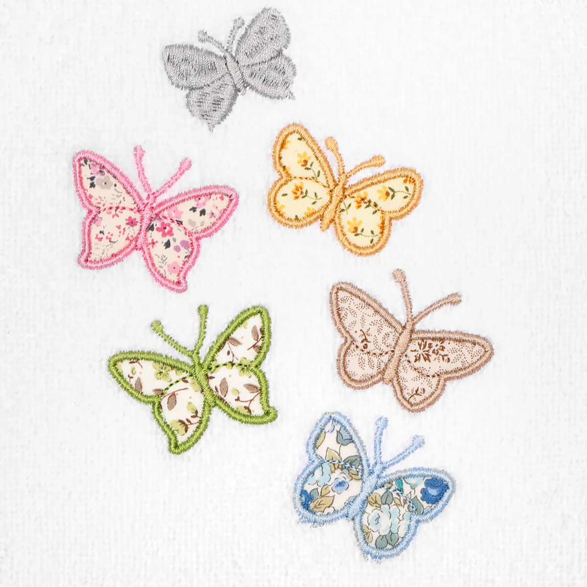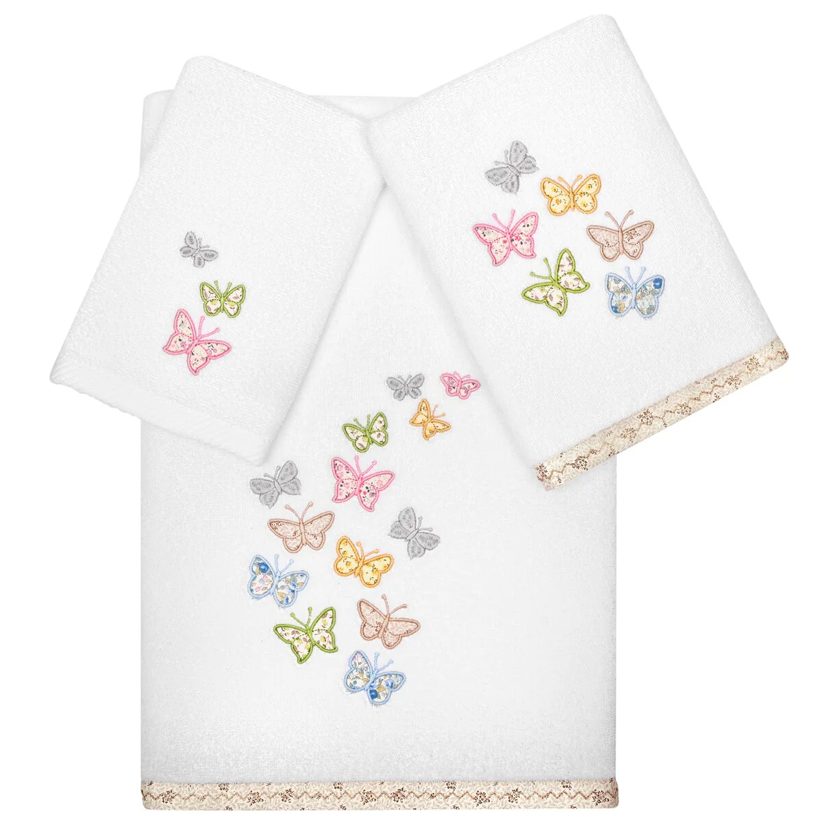 Your decorations are not complete without exquisite embroidered towels for the comfort of your family and guests. The Mariposa towels feature calico applique butterflies and are trimmed with a calico border. Cloud soft and super absorbent, these luxurious, durable towels keep their plush appearance after washing. The Mariposa Towel Collection brings a cottage spirit and richness to your home decor and makes a great gift!