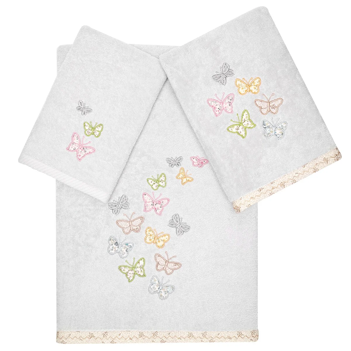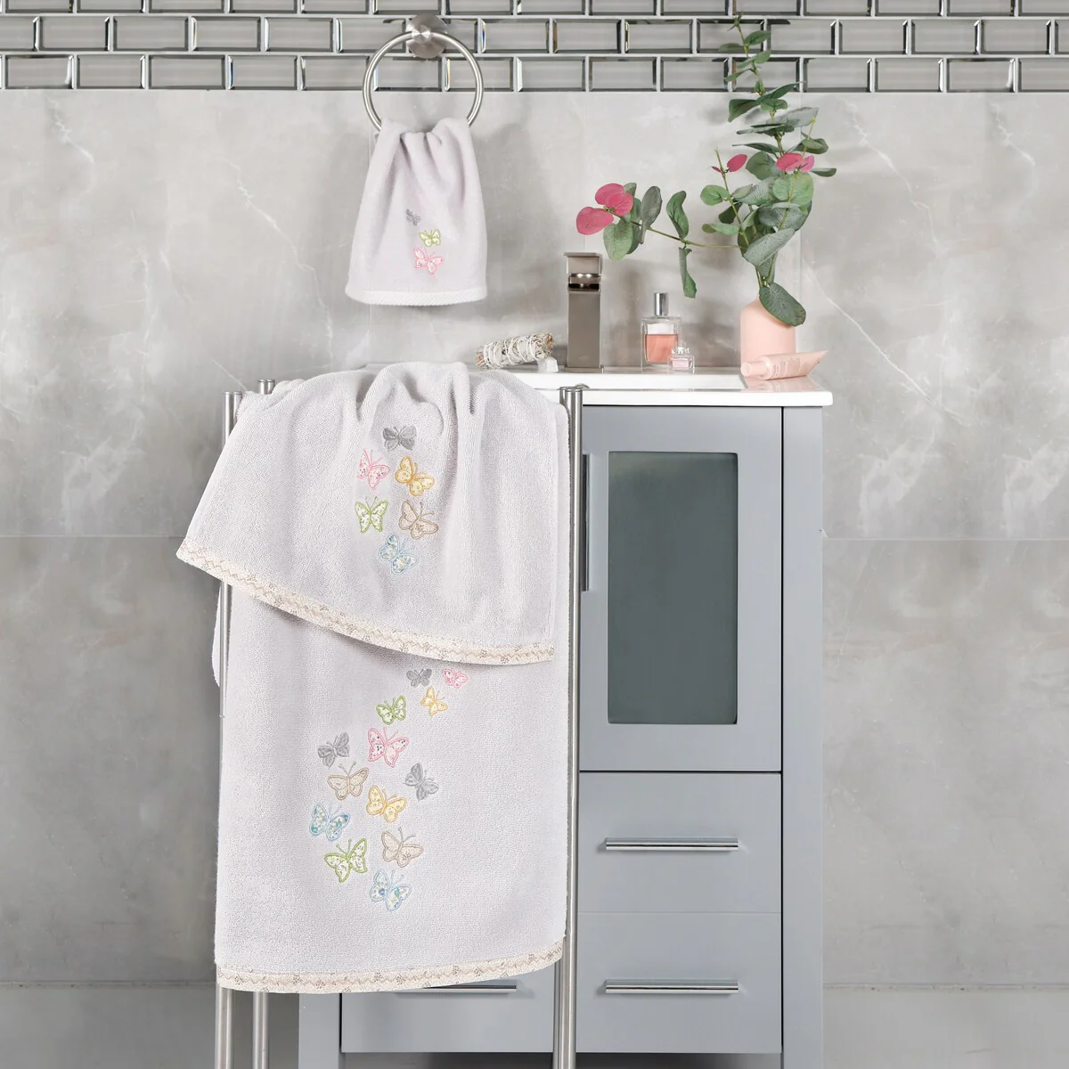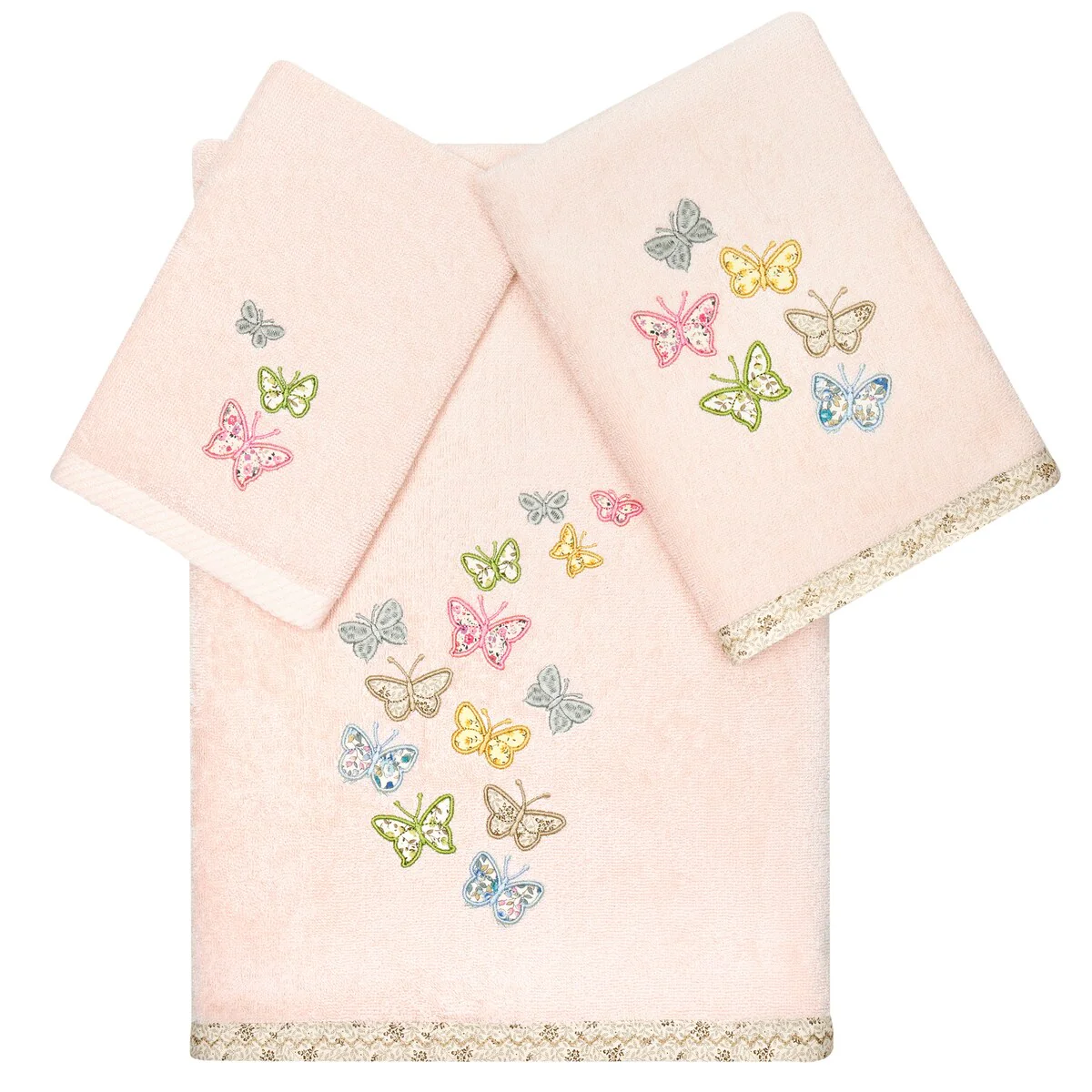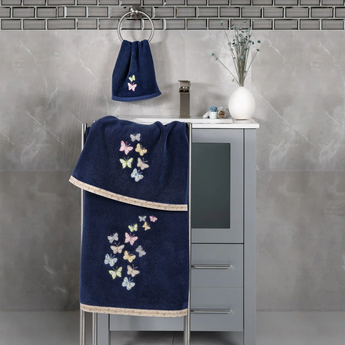 Your decorations are not complete without exquisite embroidered towels for the comfort of your family and guests. The Mariposa towels feature calico applique butterflies and are trimmed with a calico border. Cloud soft and super absorbent, these luxurious, durable towels keep their plush appearance after washing. The Mariposa Towel Collection brings a cottage spirit and richness to your home decor and makes a great gift!