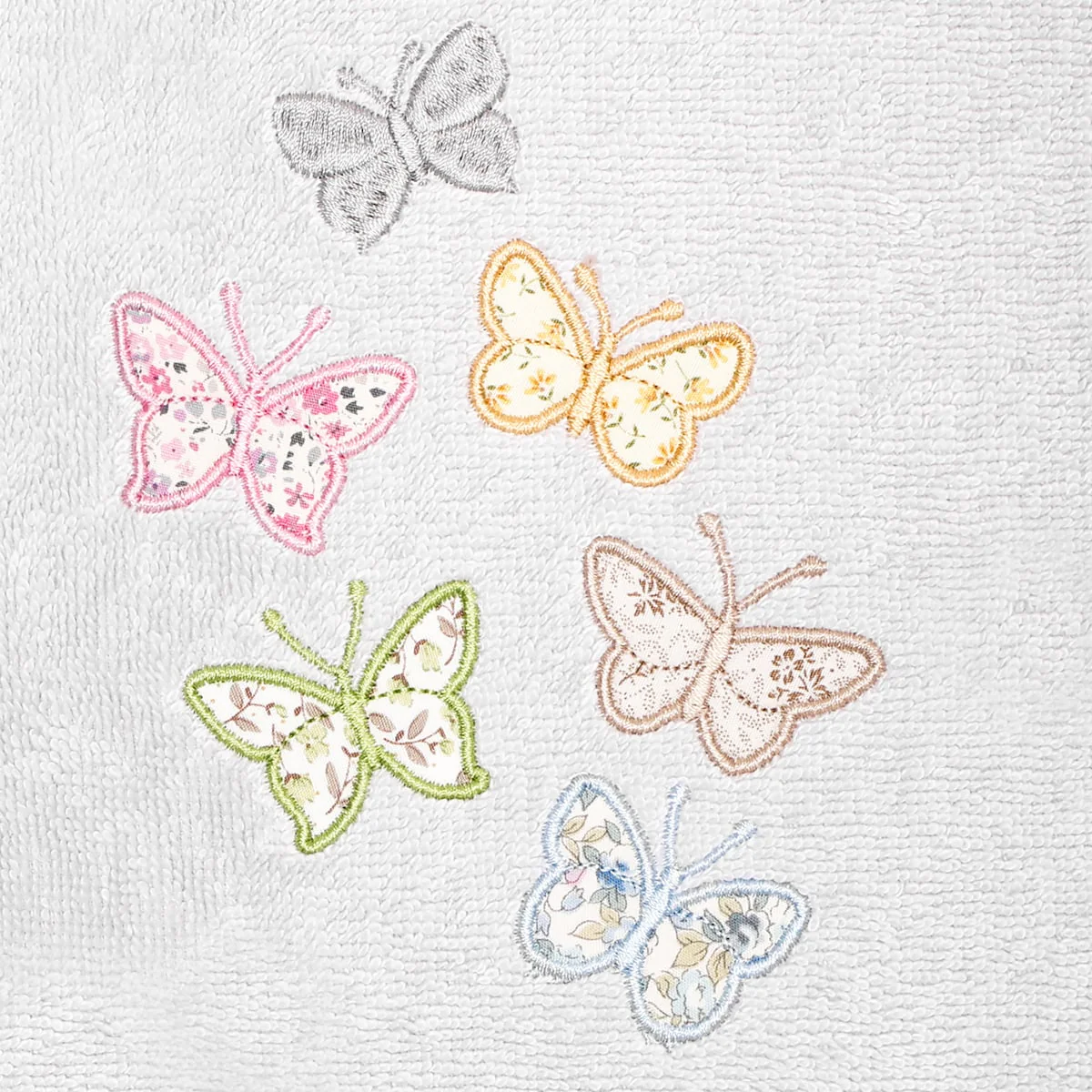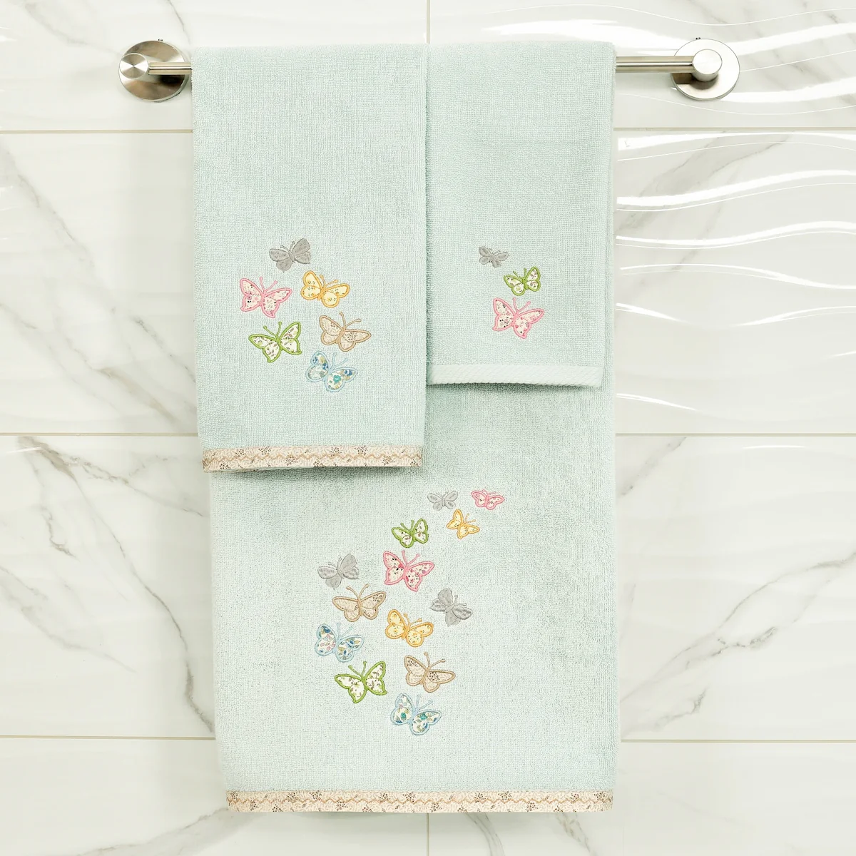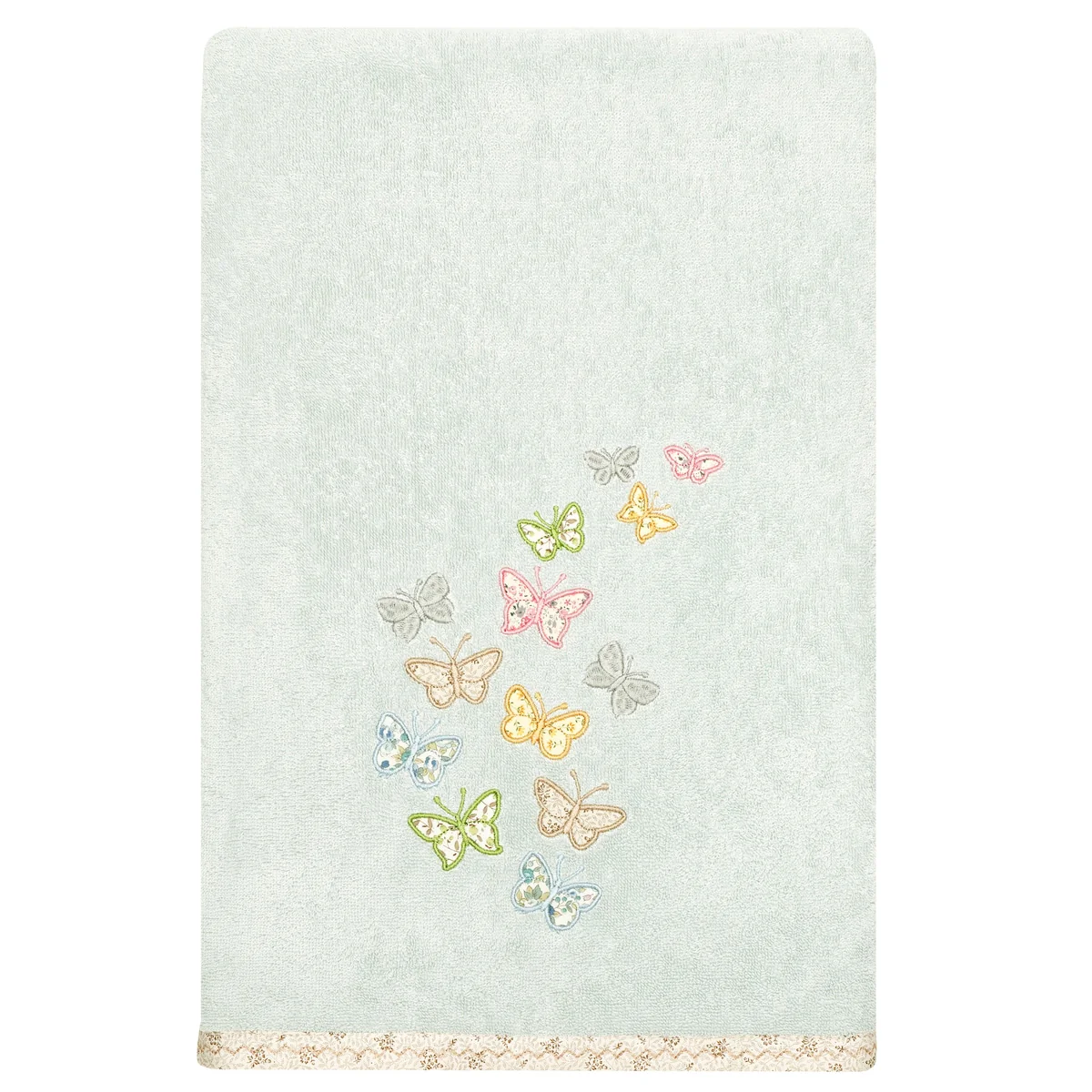 Your decorations are not complete without exquisite embroidered towels for the comfort of your family and guests. The Mariposa towels feature calico applique butterflies and are trimmed with a calico border. Cloud soft and super absorbent, these luxurious, durable towels keep their plush appearance after washing. The Mariposa Towel Collection brings a cottage spirit and richness to your home decor and makes a great gift!