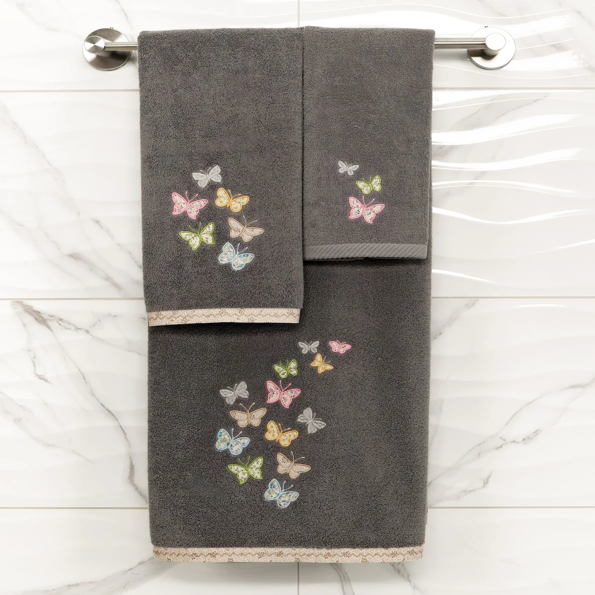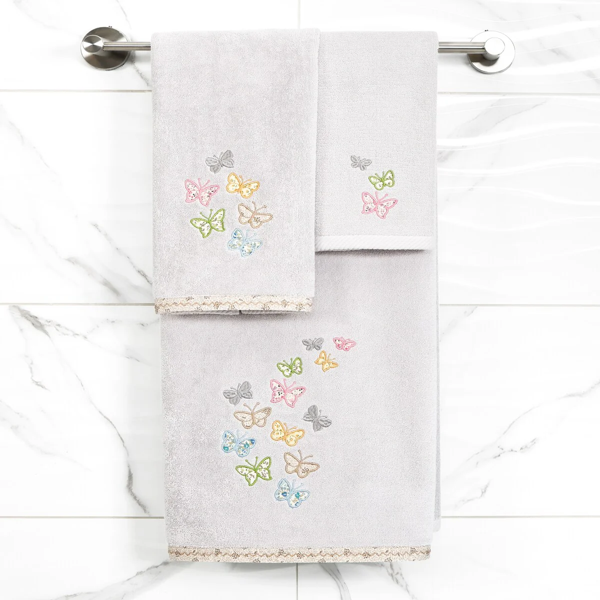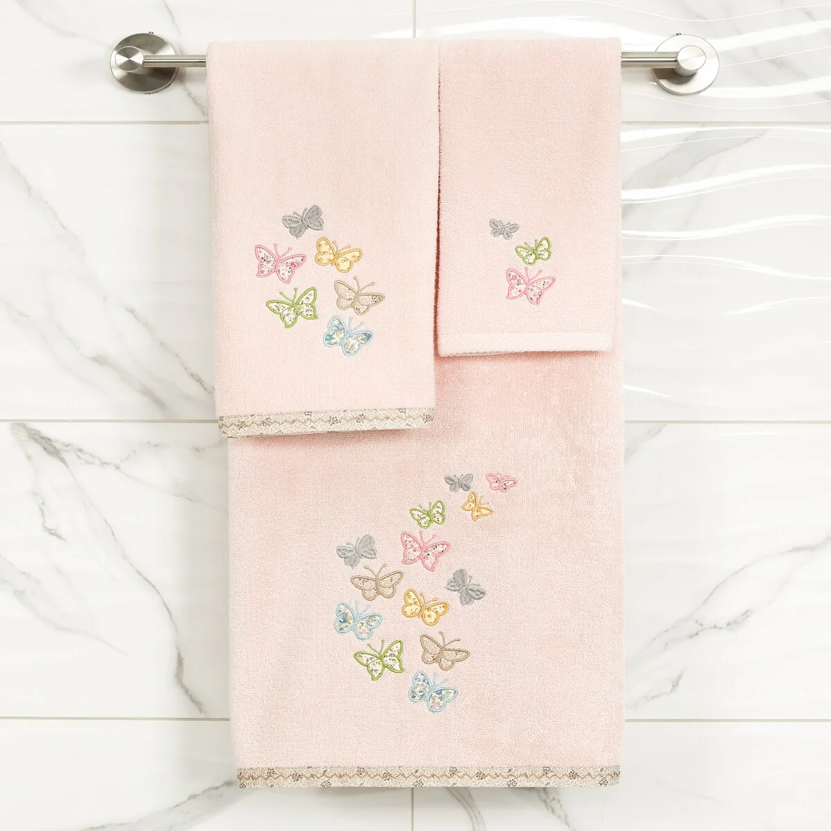 Your decorations are not complete without exquisite embroidered towels for the comfort of your family and guests. The Mariposa towels feature calico applique butterflies and are trimmed with a calico border. Cloud soft and super absorbent, these luxurious, durable towels keep their plush appearance after washing. The Mariposa Towel Collection brings a cottage spirit and richness to your home decor and makes a great gift!