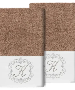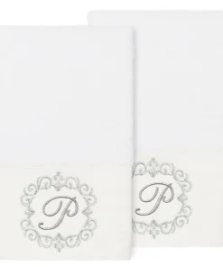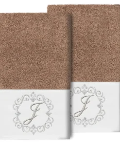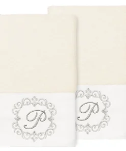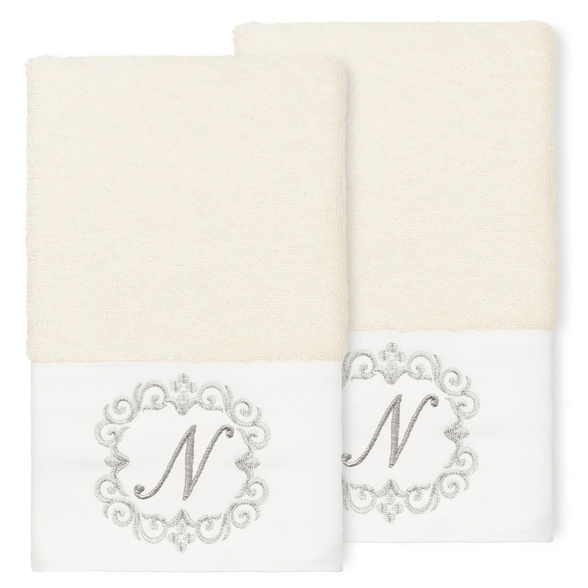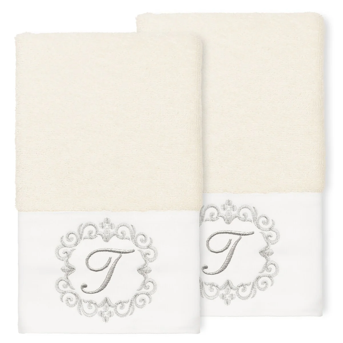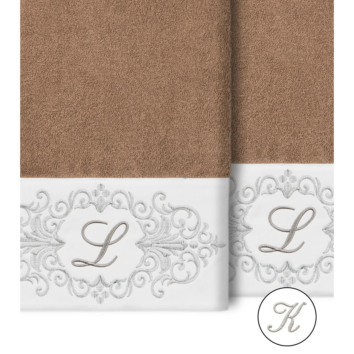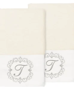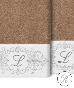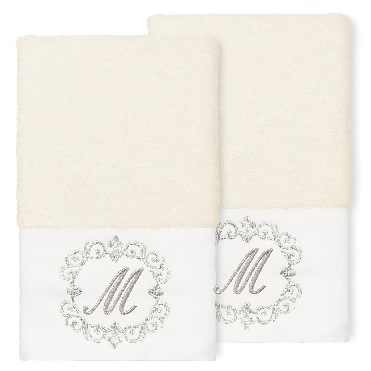 The Monica Embellished Towel Collection features an elegant metallic crest motif with your monogram embroidered on a crisp white border. These soft and luxurious towels are made of 100% premium Turkish Cotton and offer lasting absorbency and superior durability.