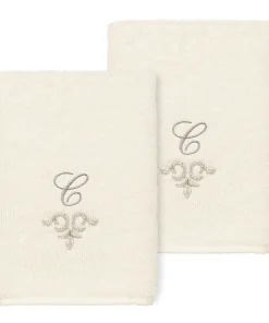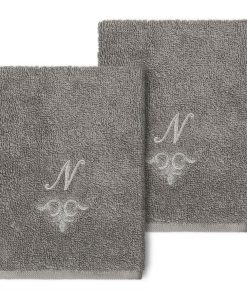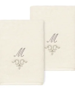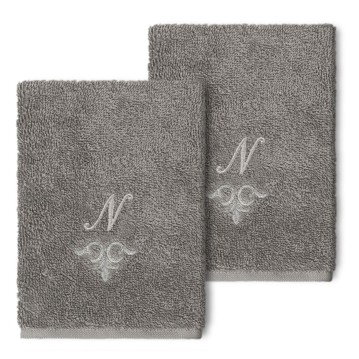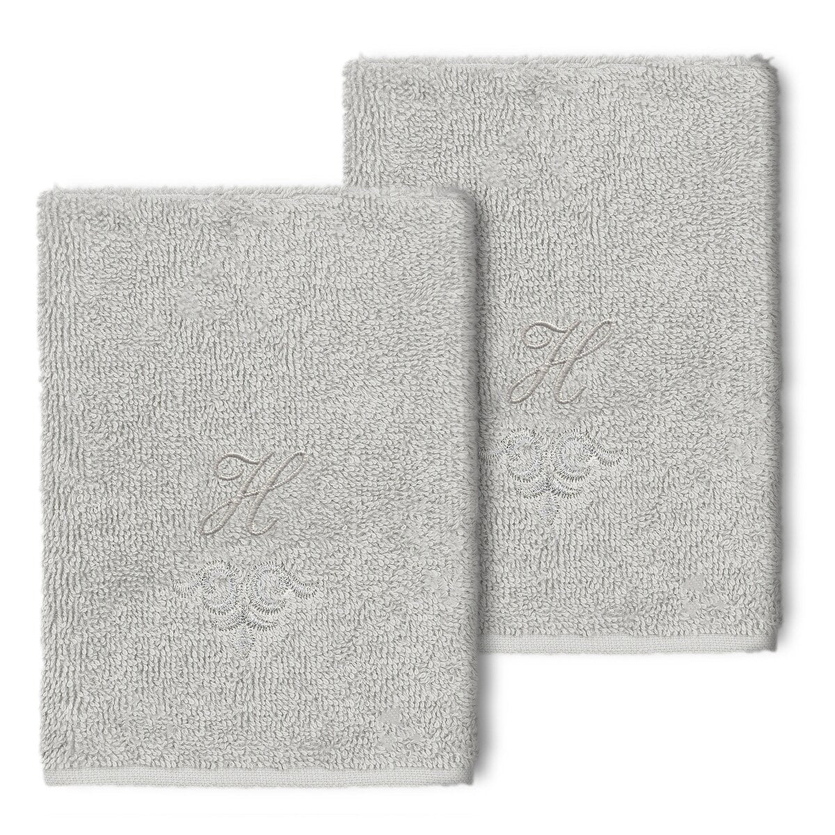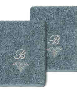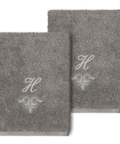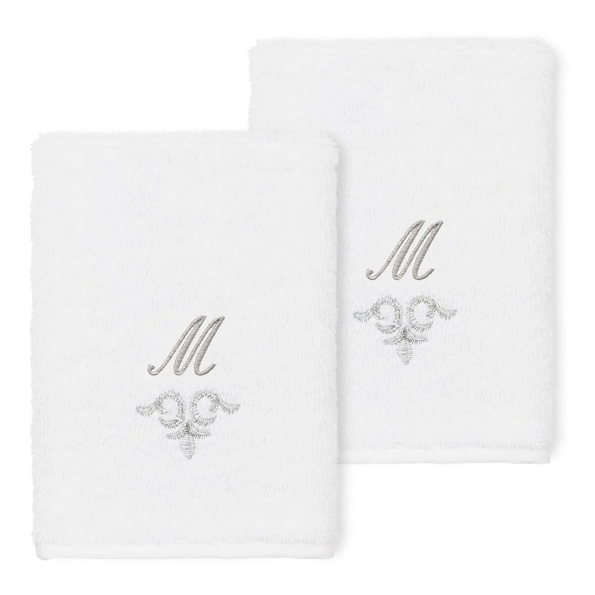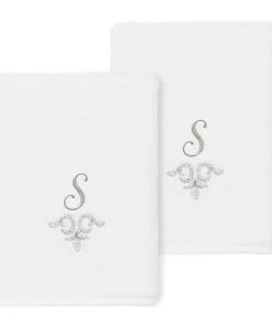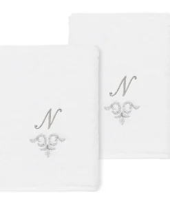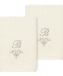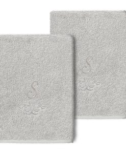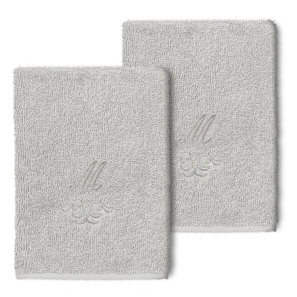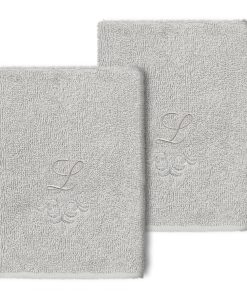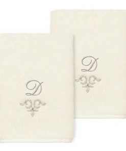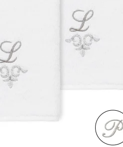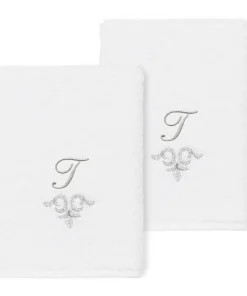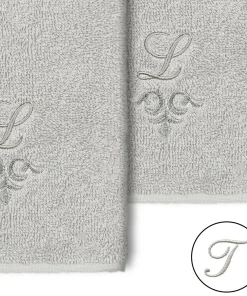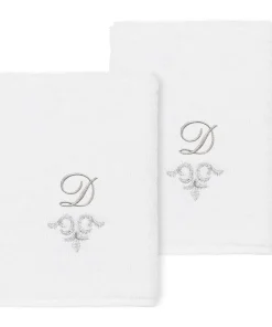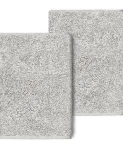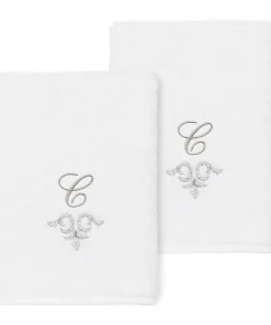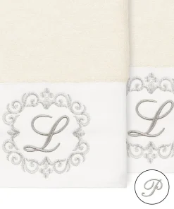 The Monica Embellished Towel Collection features an elegant metallic crest motif with your monogram embroidered on a crisp white border. Â These soft and luxurious towels are made of 100% premium Turkish Cotton and offer lasting absorbency and superior durability.