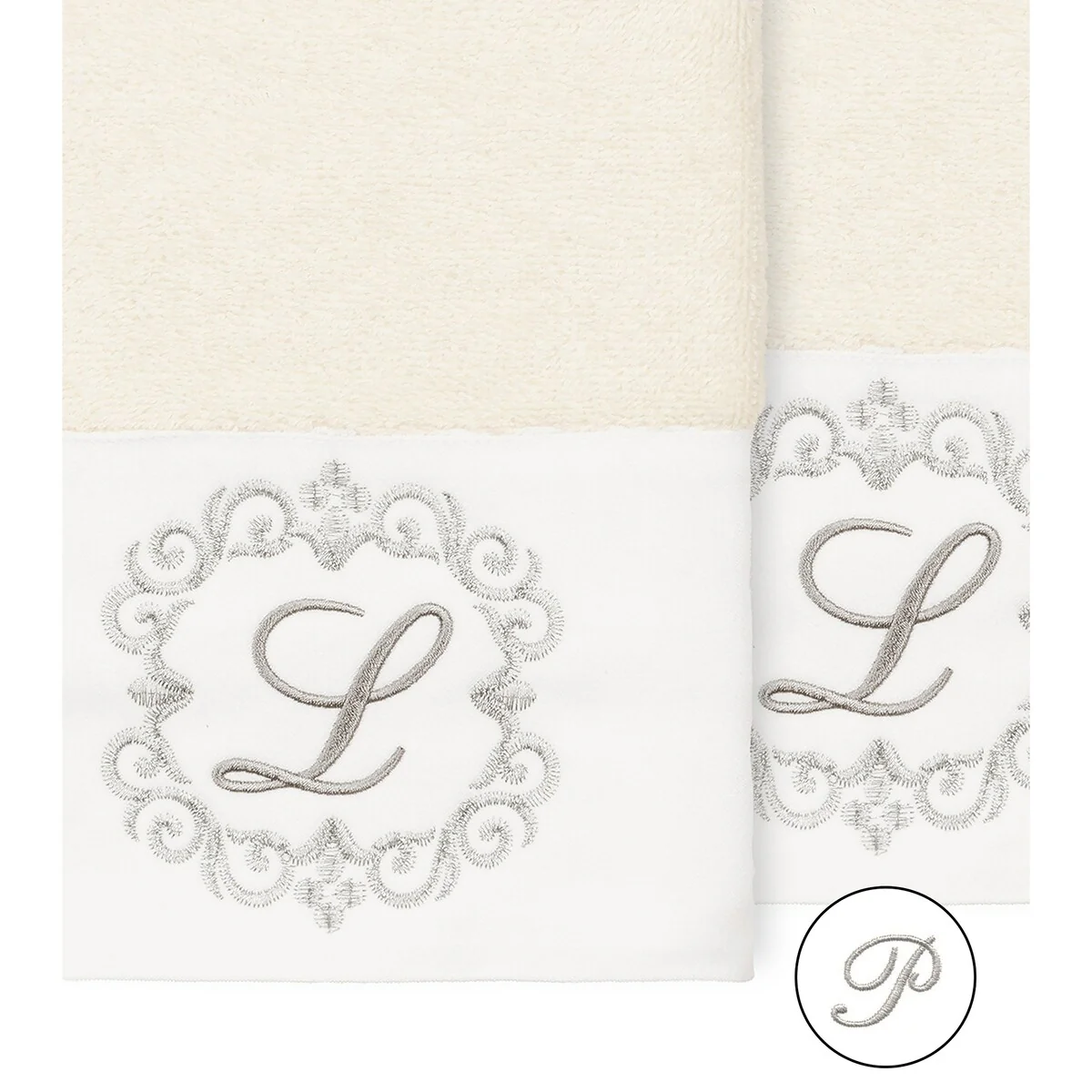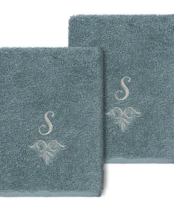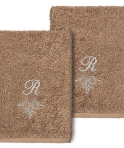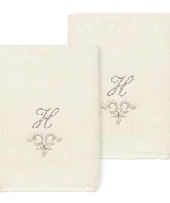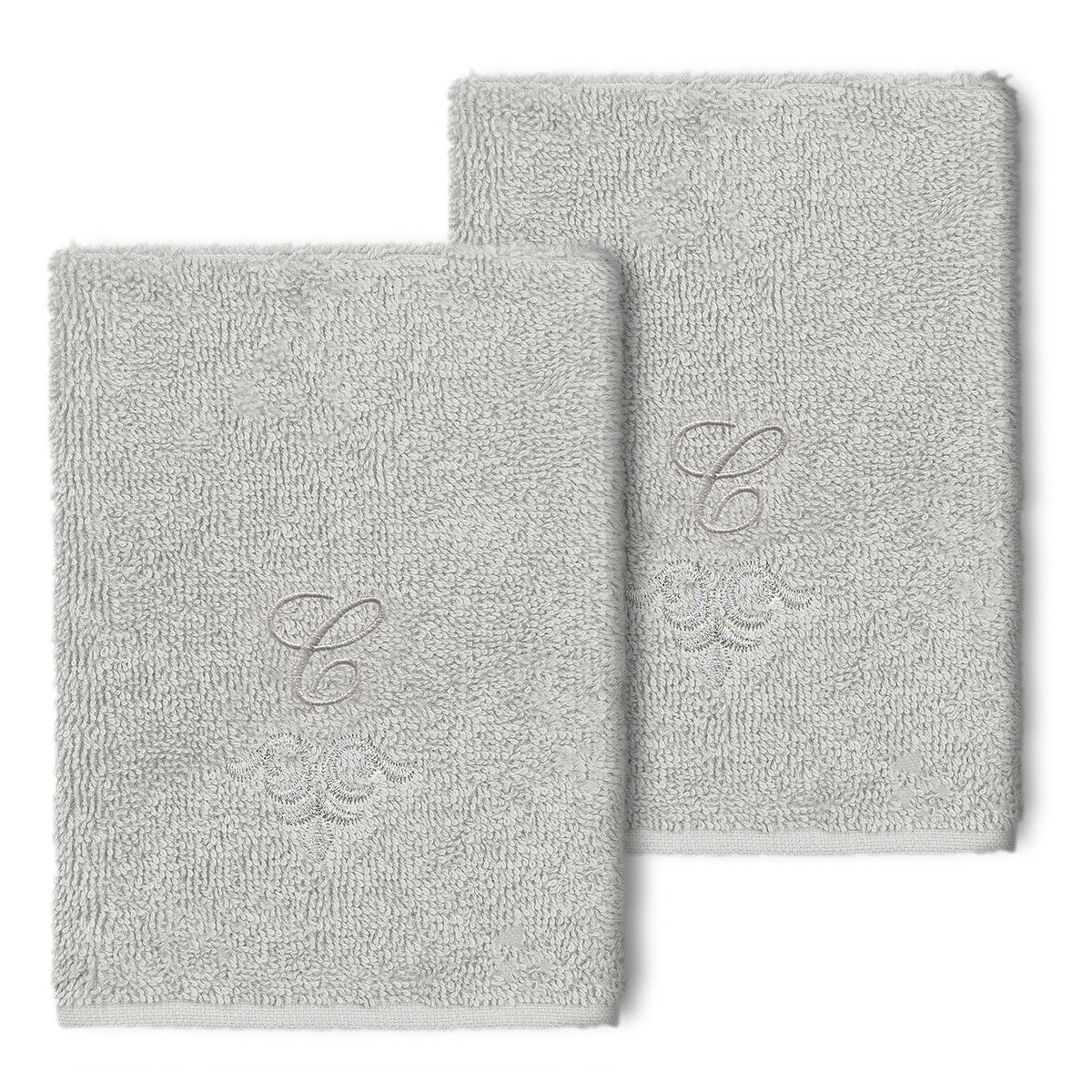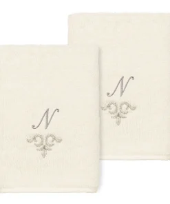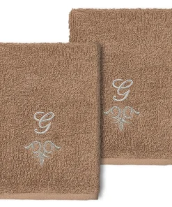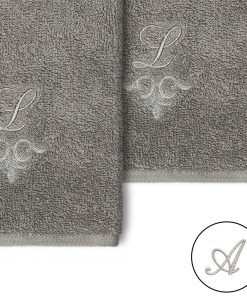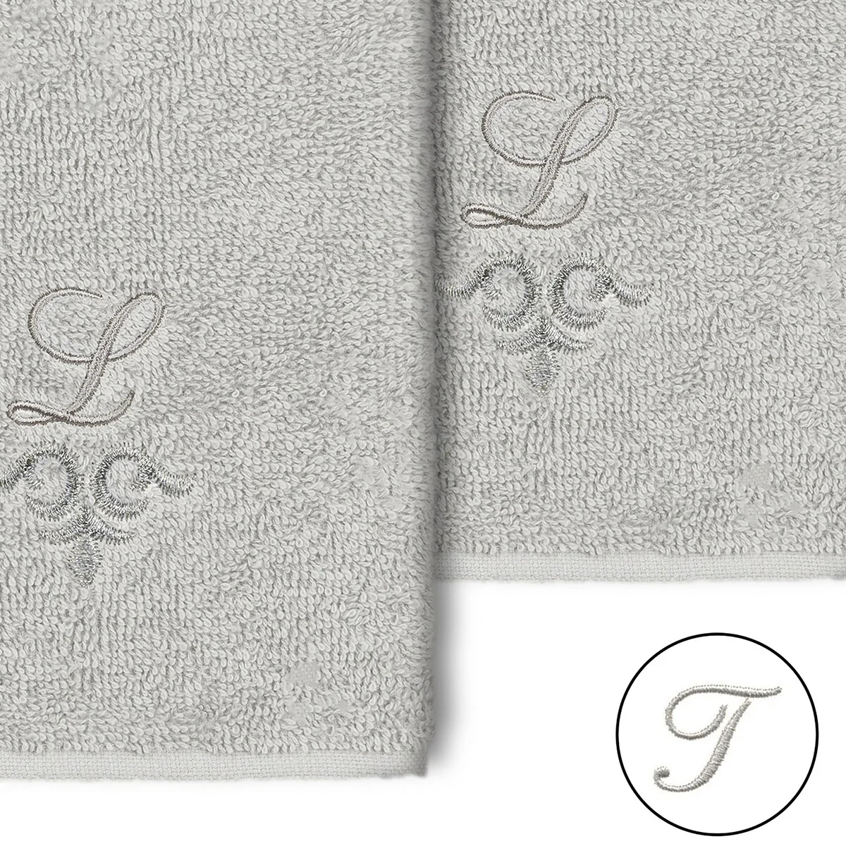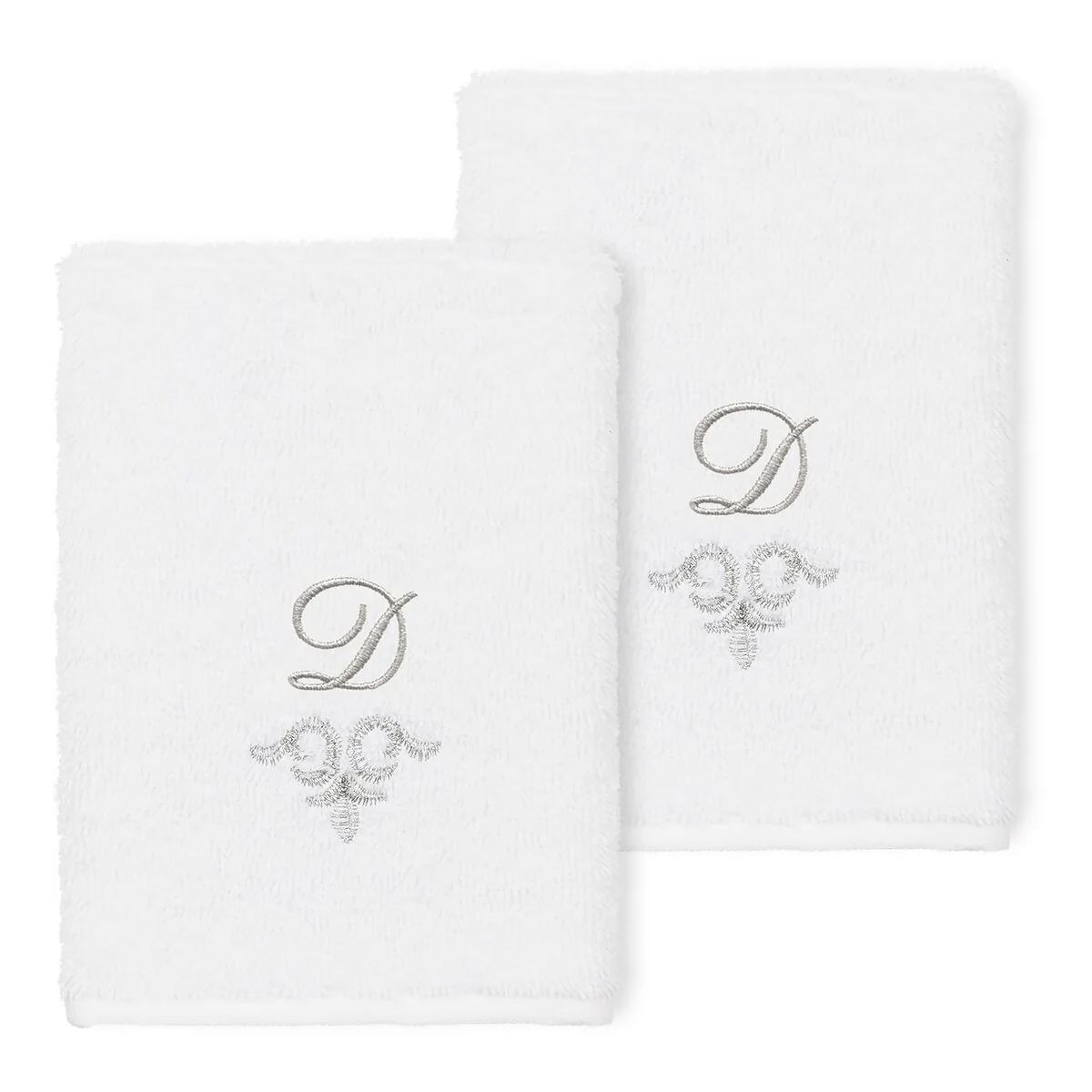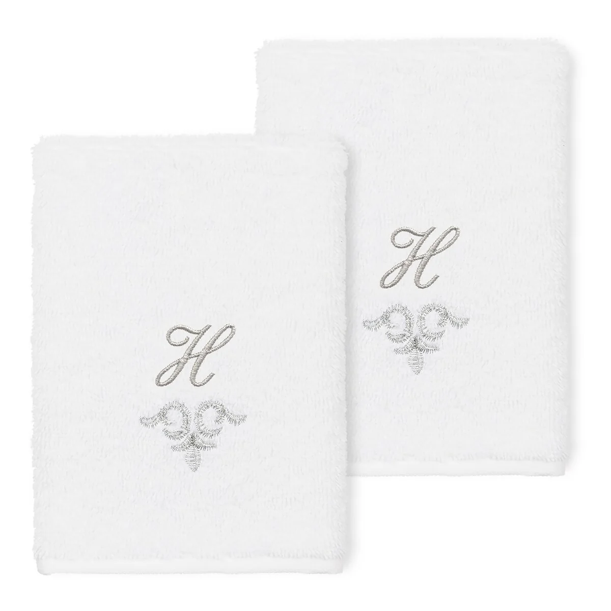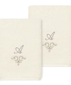 The Monica Embellished Towel Collection features an elegant metallic crest motif with your monogram embroidered on a crisp white border. Â These soft and luxurious towels are made of 100% premium Turkish Cotton and offer lasting absorbency and superior durability.