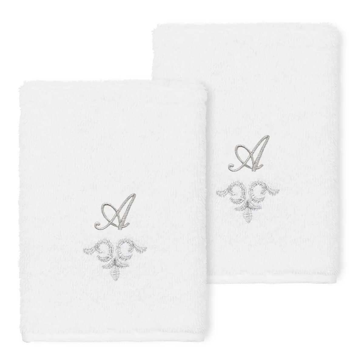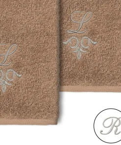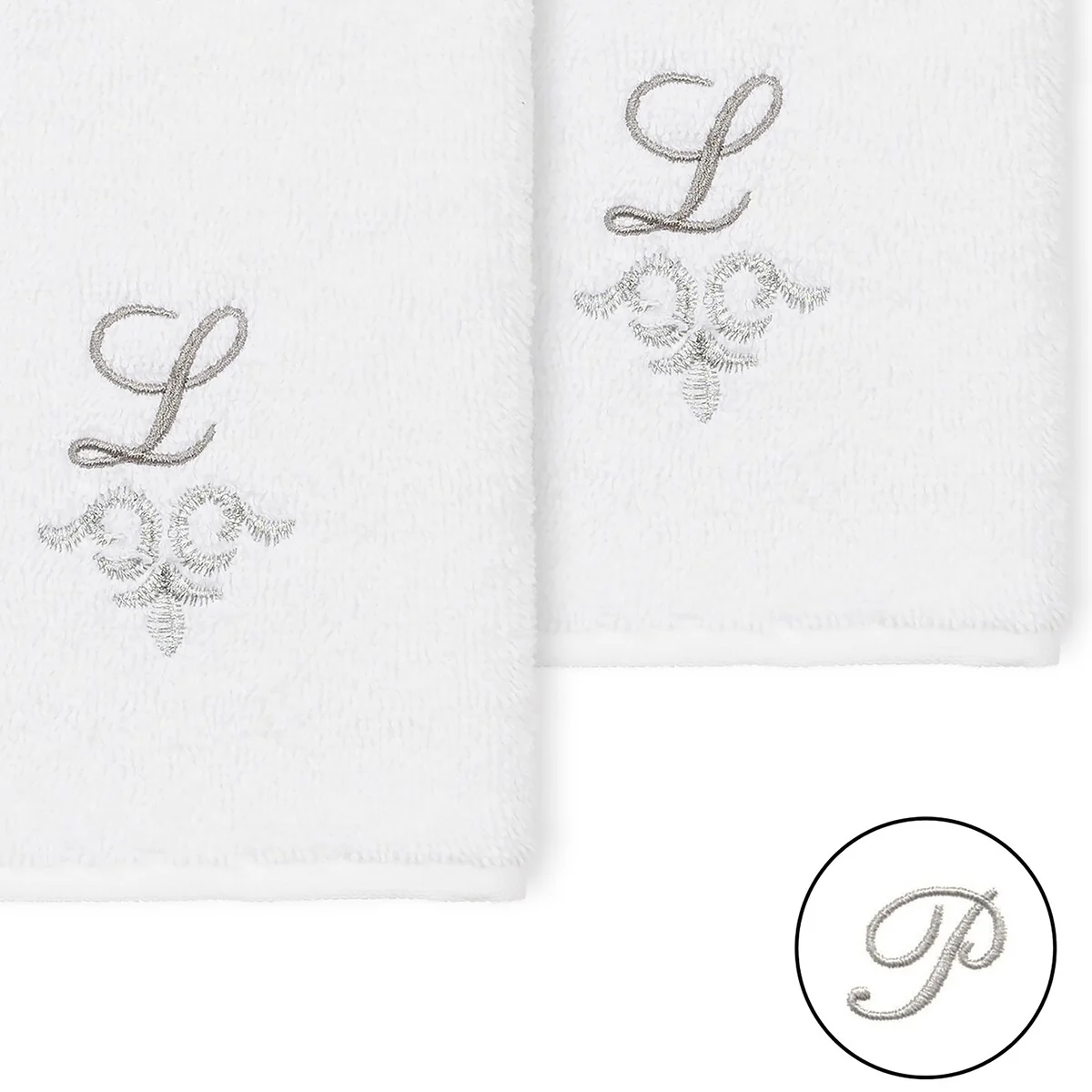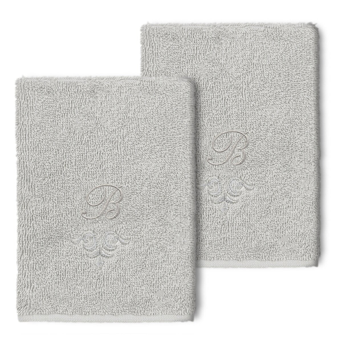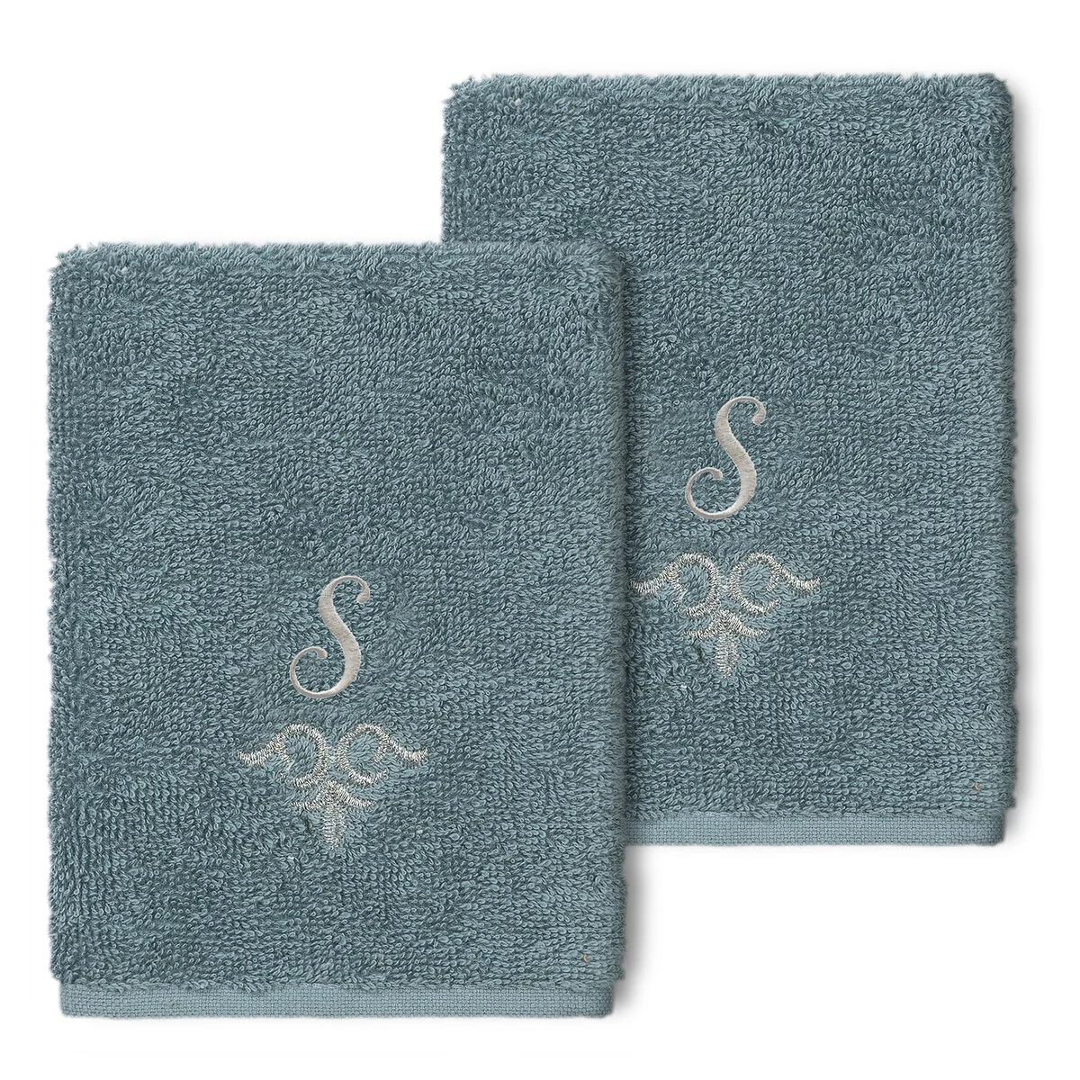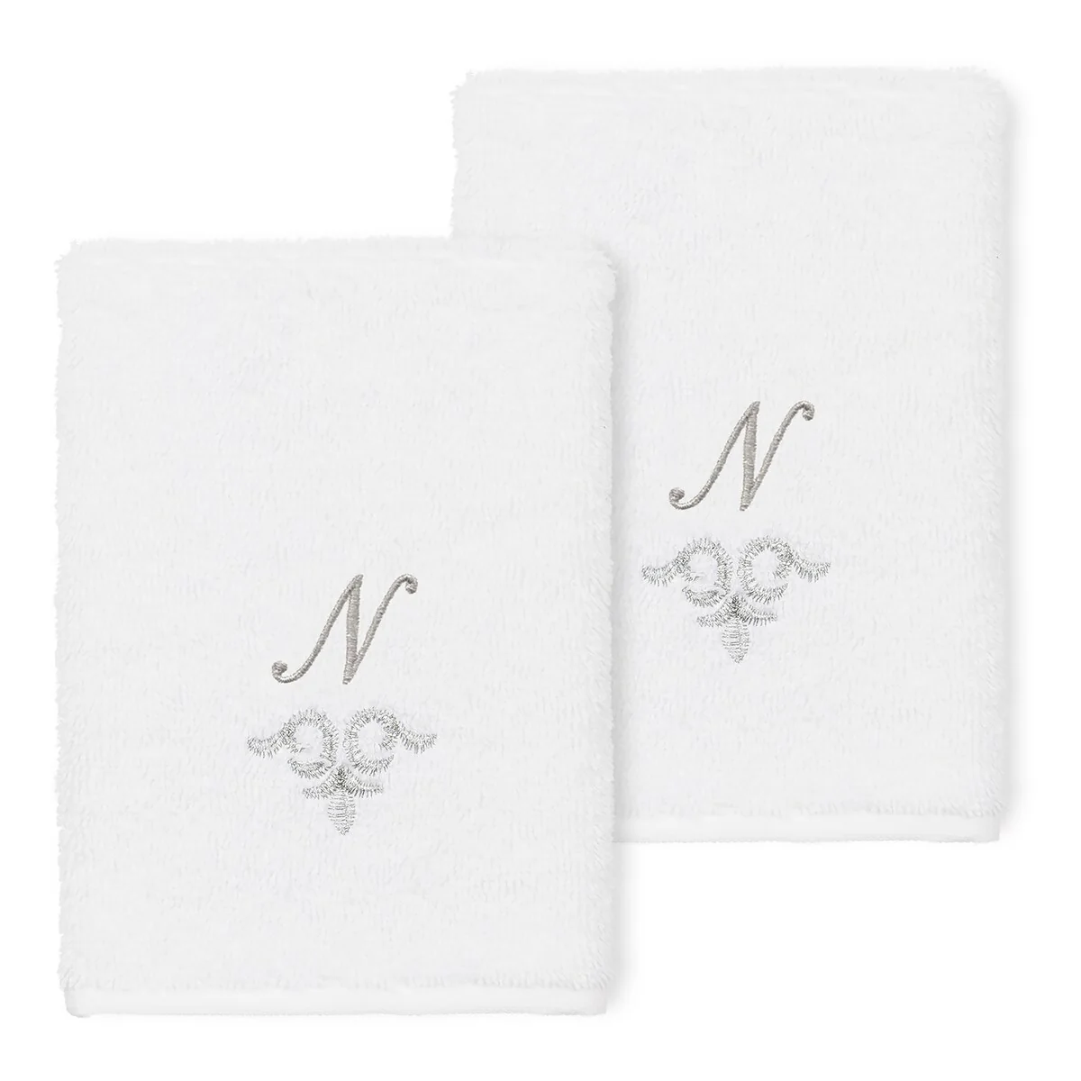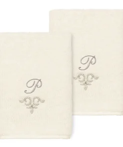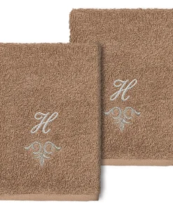 The Monica Embellished Towel Collection features an elegant metallic crest motif with your monogram embroidered on a crisp white border. Â These soft and luxurious towels are made of 100% premium Turkish Cotton and offer lasting absorbency and superior durability.