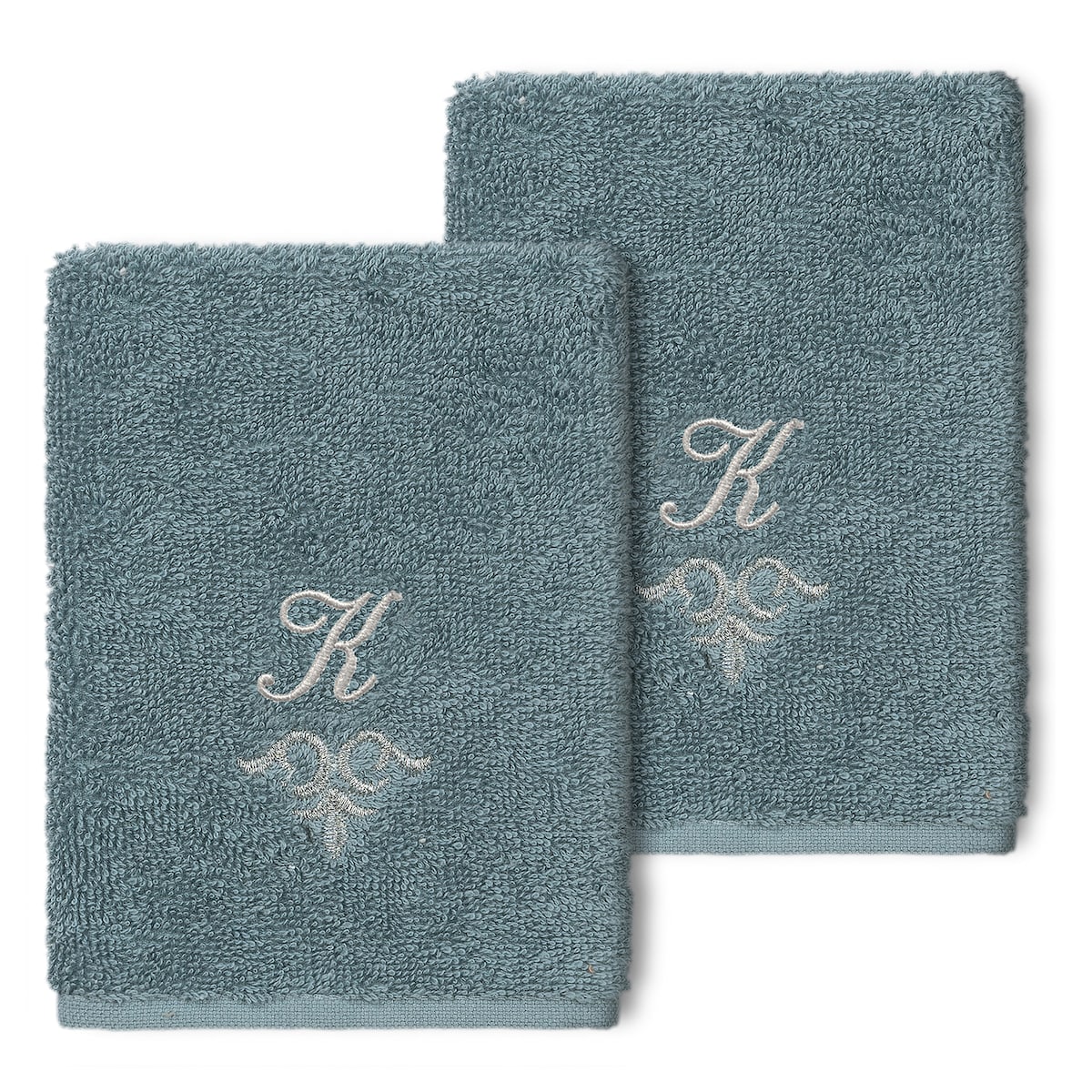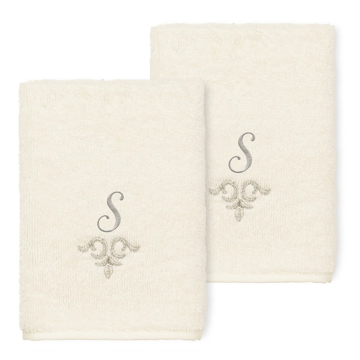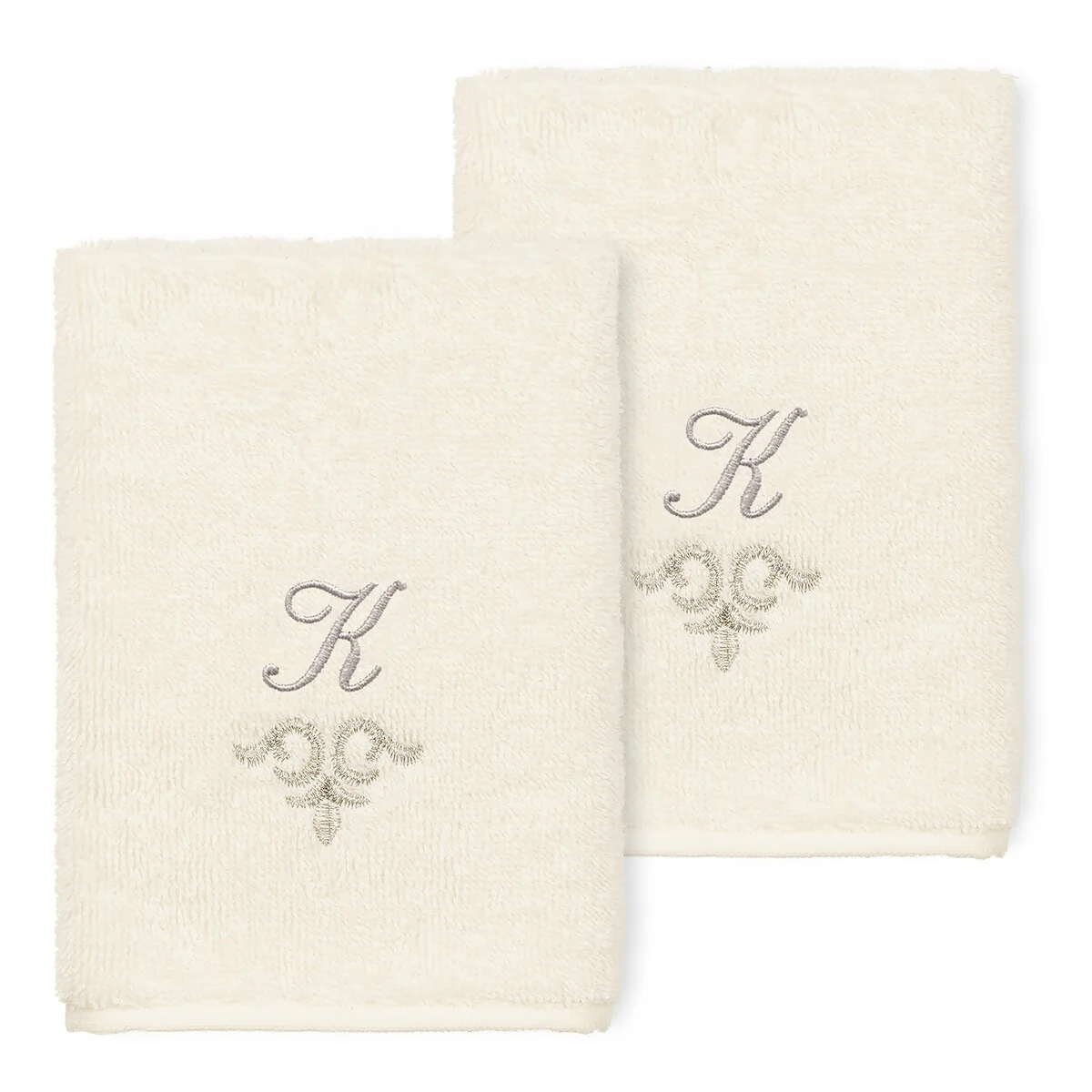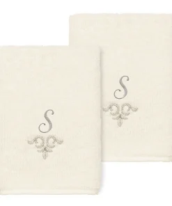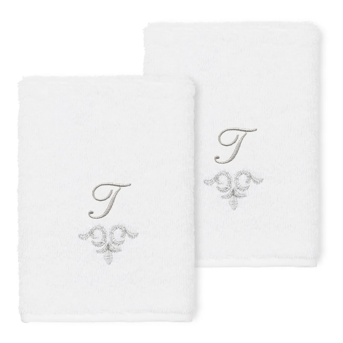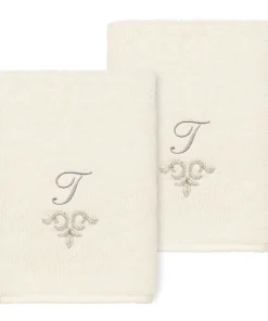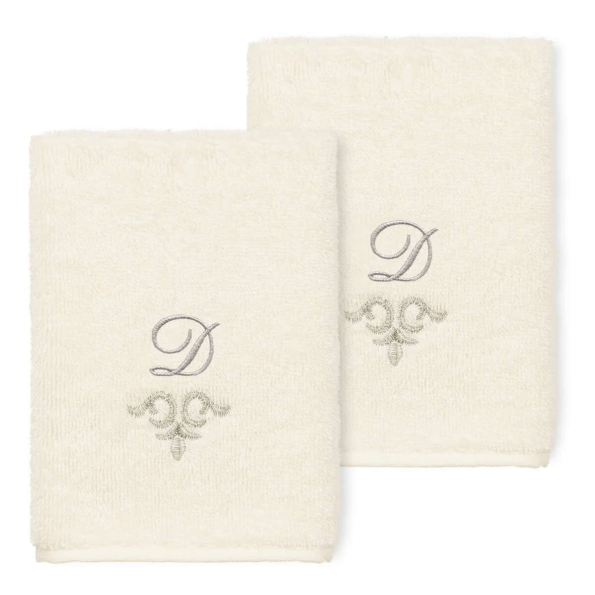 The Monica Embellished Towel Collection features an elegant metallic crest motif with your monogram embroidered on a crisp white border. Â These soft and luxurious towels are made of 100% premium Turkish Cotton and offer lasting absorbency and superior durability.