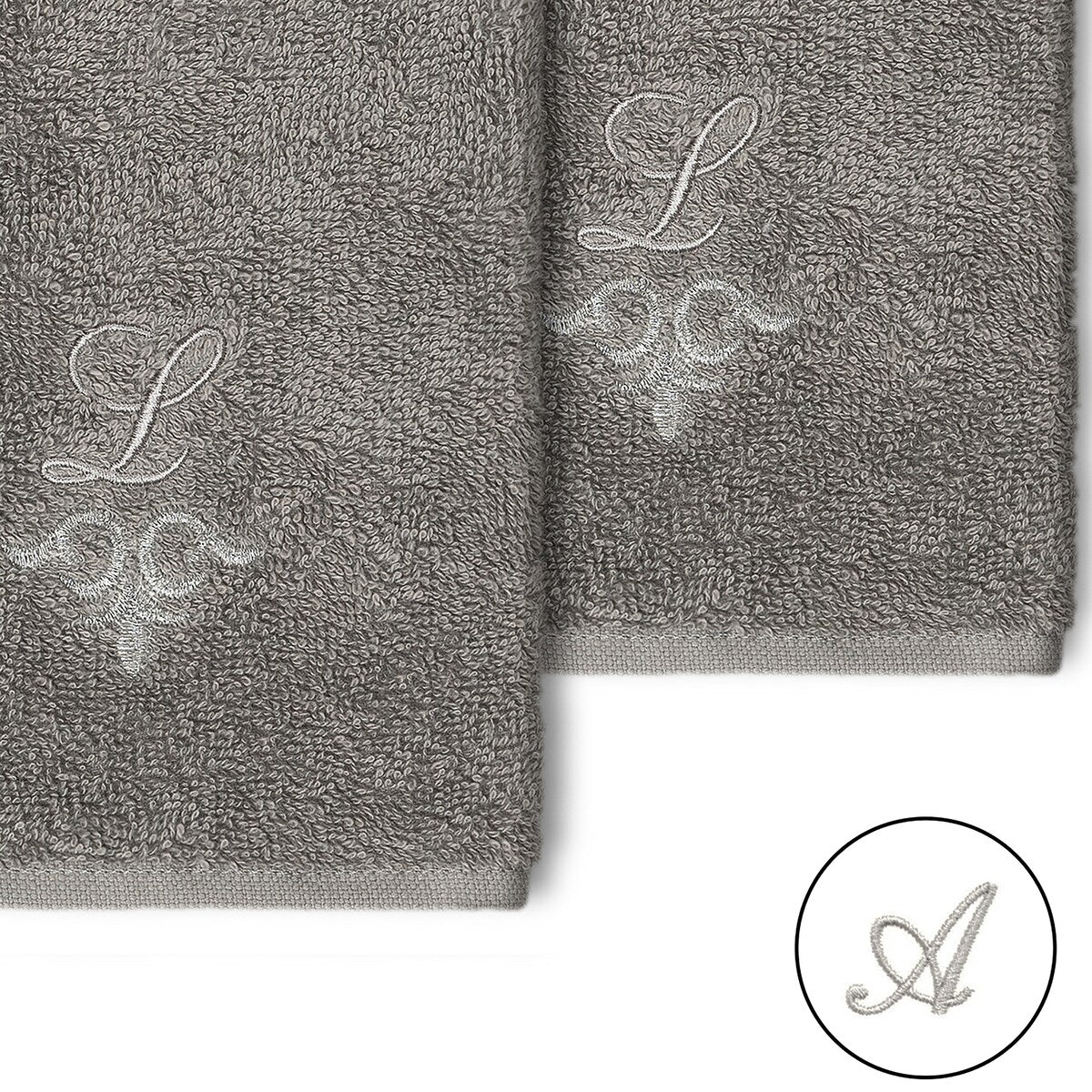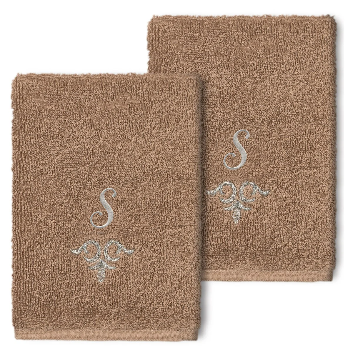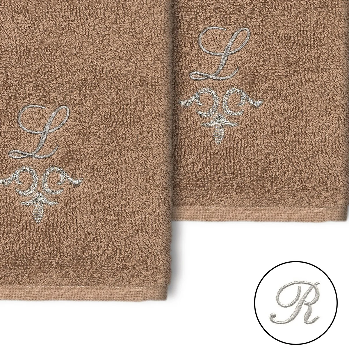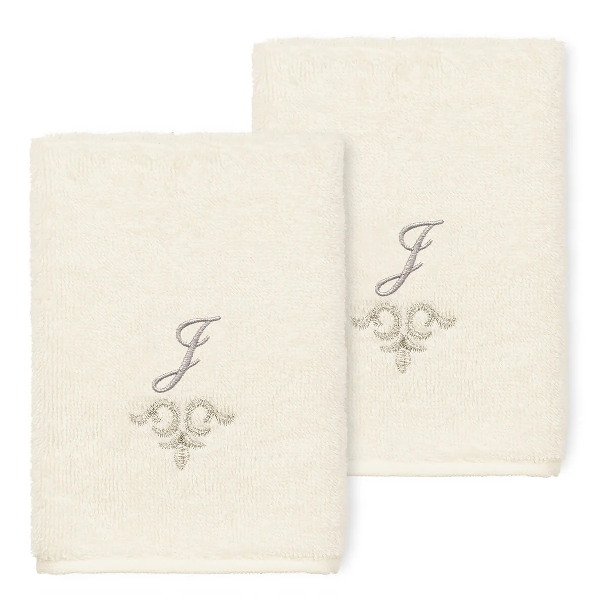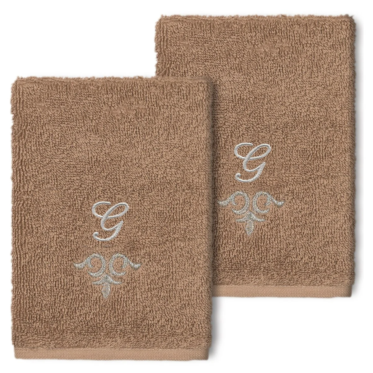 The Monica Embellished Towel Collection features an elegant metallic crest motif with your monogram embroidered on a crisp white border. Â These soft and luxurious towels are made of 100% premium Turkish Cotton and offer lasting absorbency and superior durability.