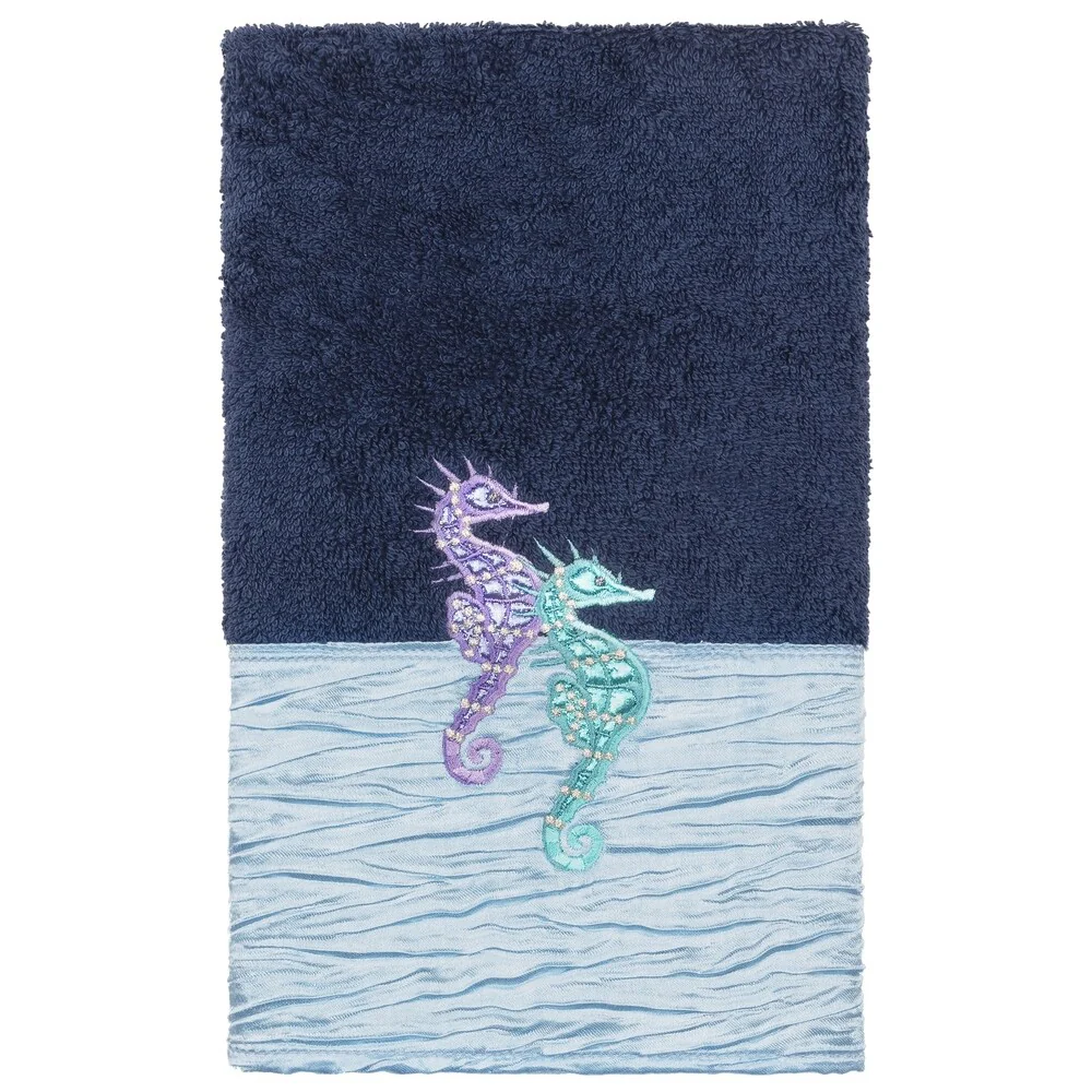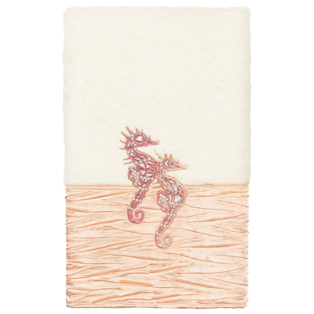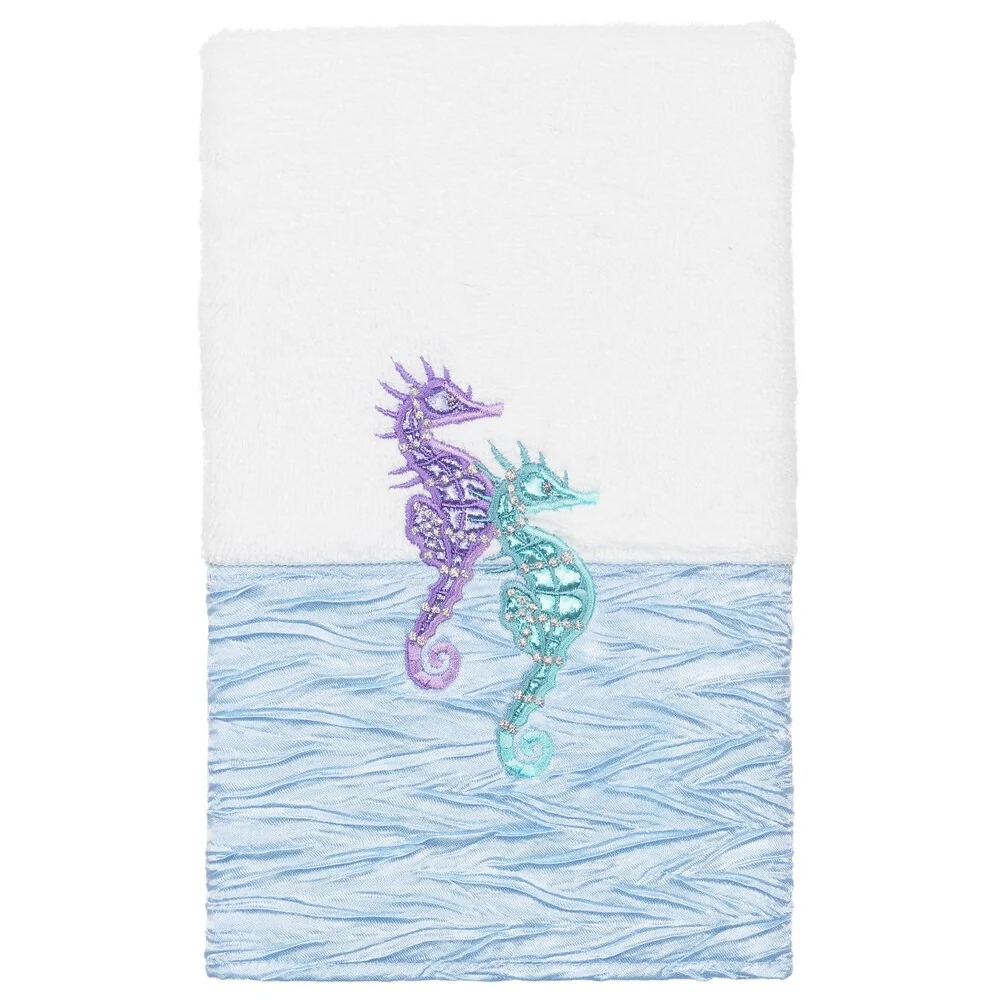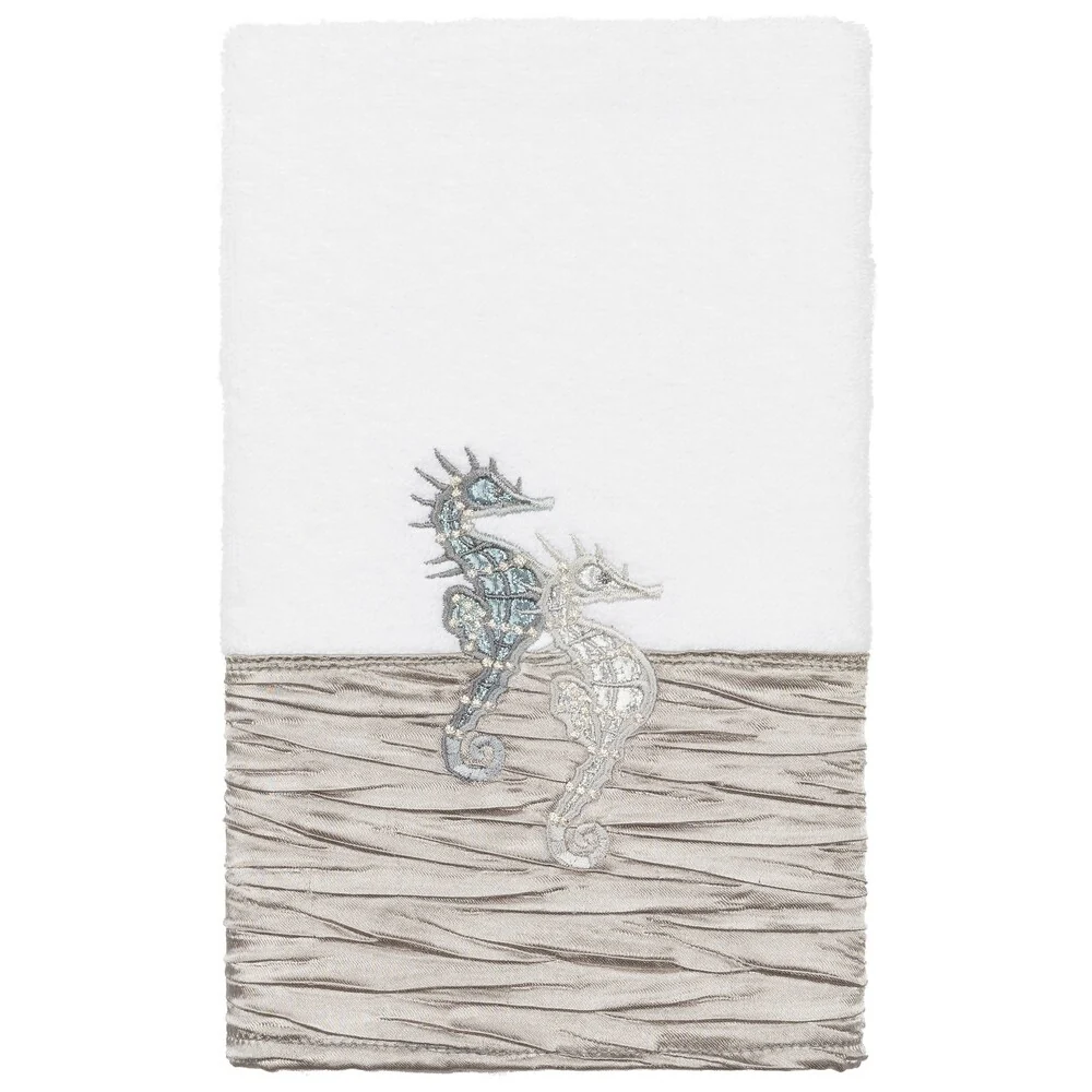 The Sofia Embellished Towel Collection features sparkling seahorses embroidered on a lustrous pleated border. These soft and luxurious towels are made of 100% premium Turkish Cotton and offer lasting absorbency and superior durability.
