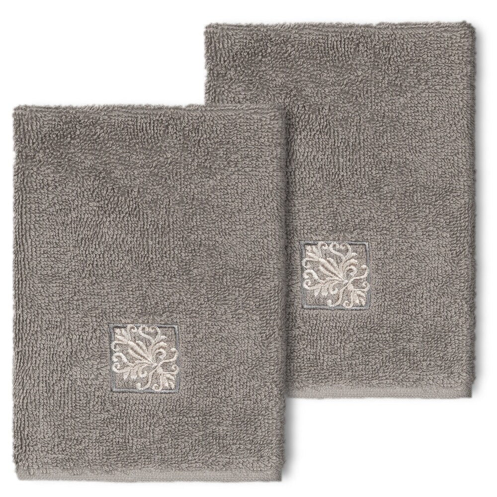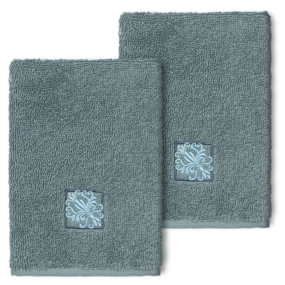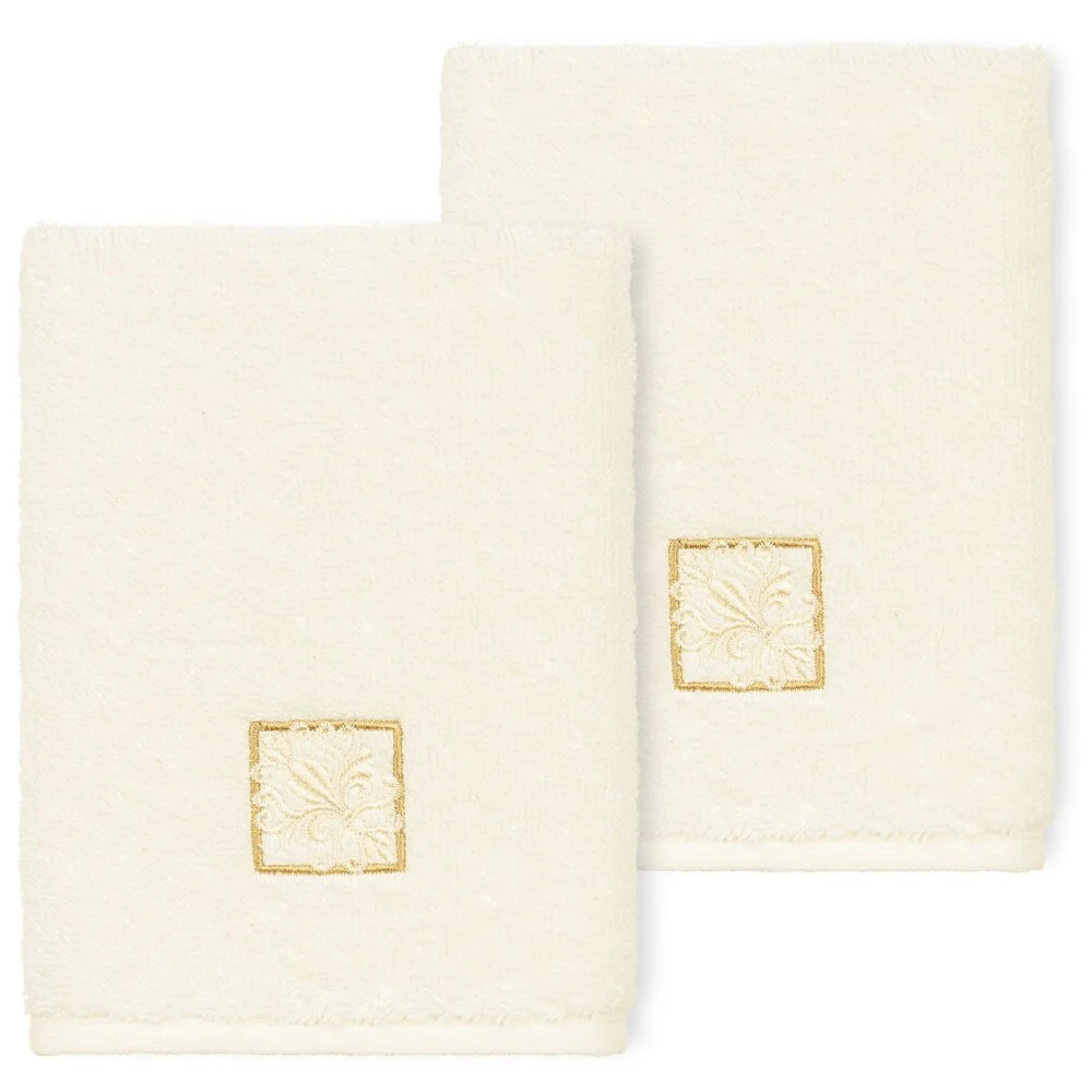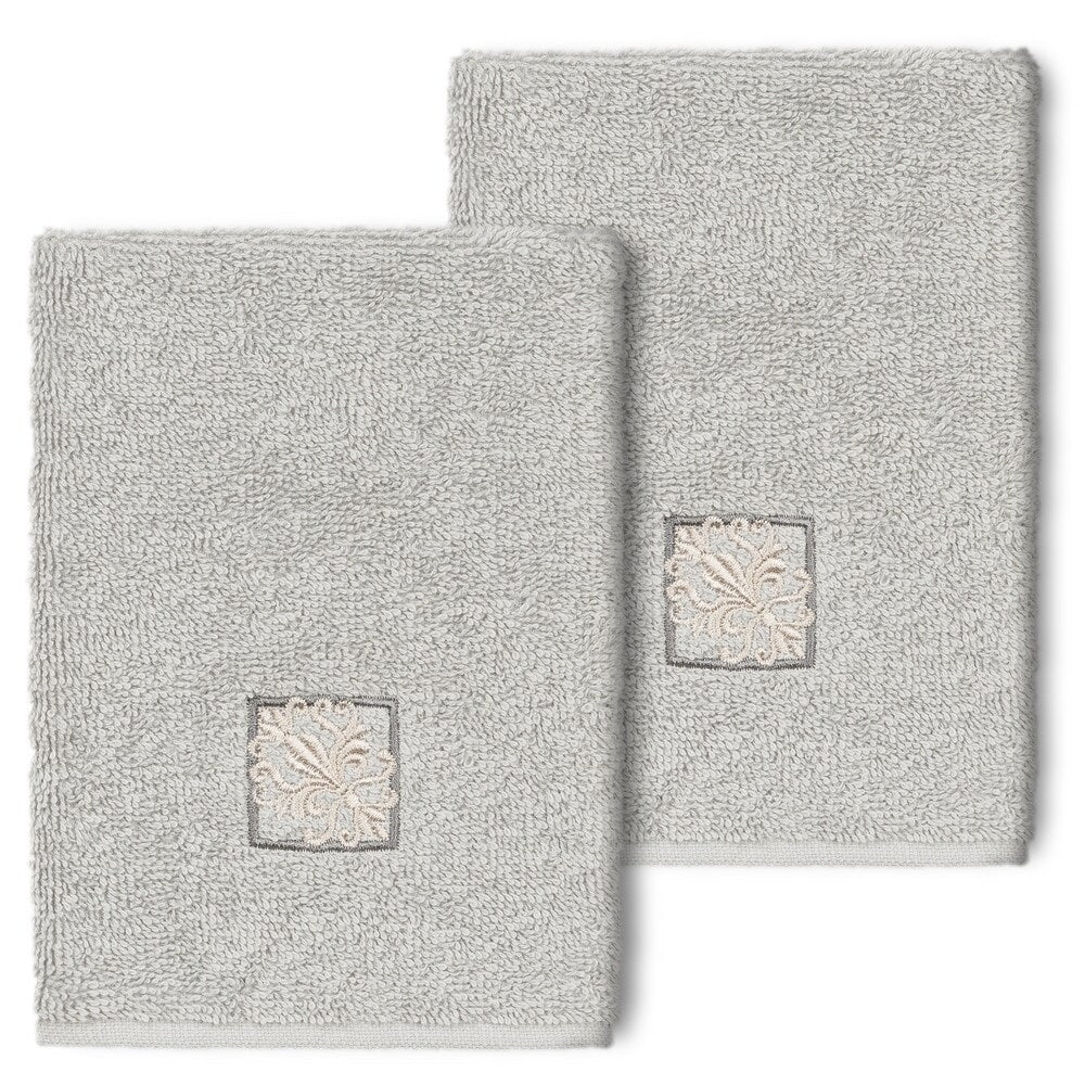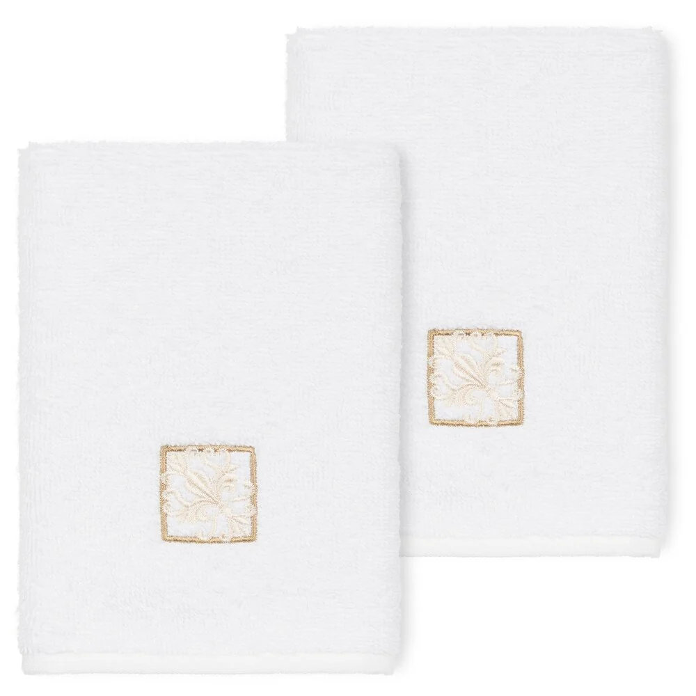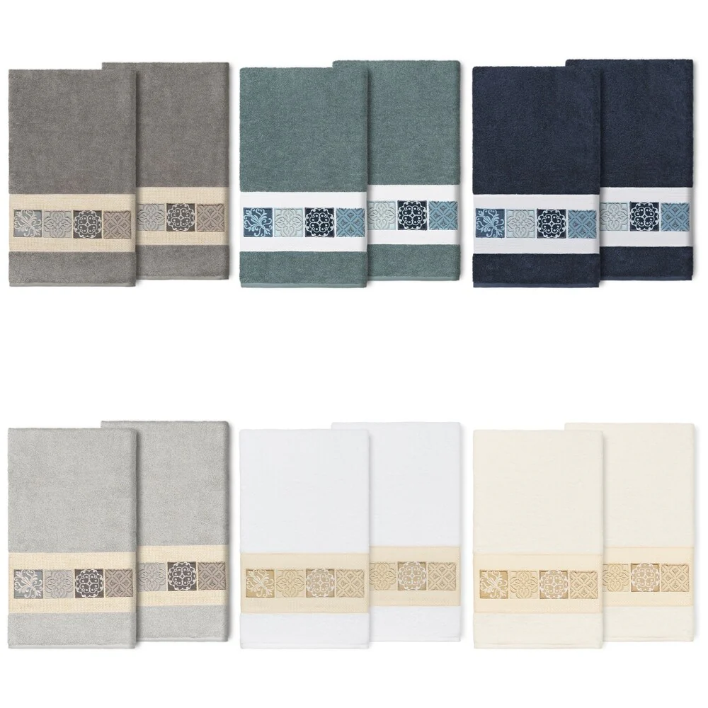 The Vivian Embellished Towel Collection features a classic tile pattern embroidered on a woven textured border. These soft and luxurious towels are made of 100% premium Turkish Cotton and offer lasting absorbency and superior durability.