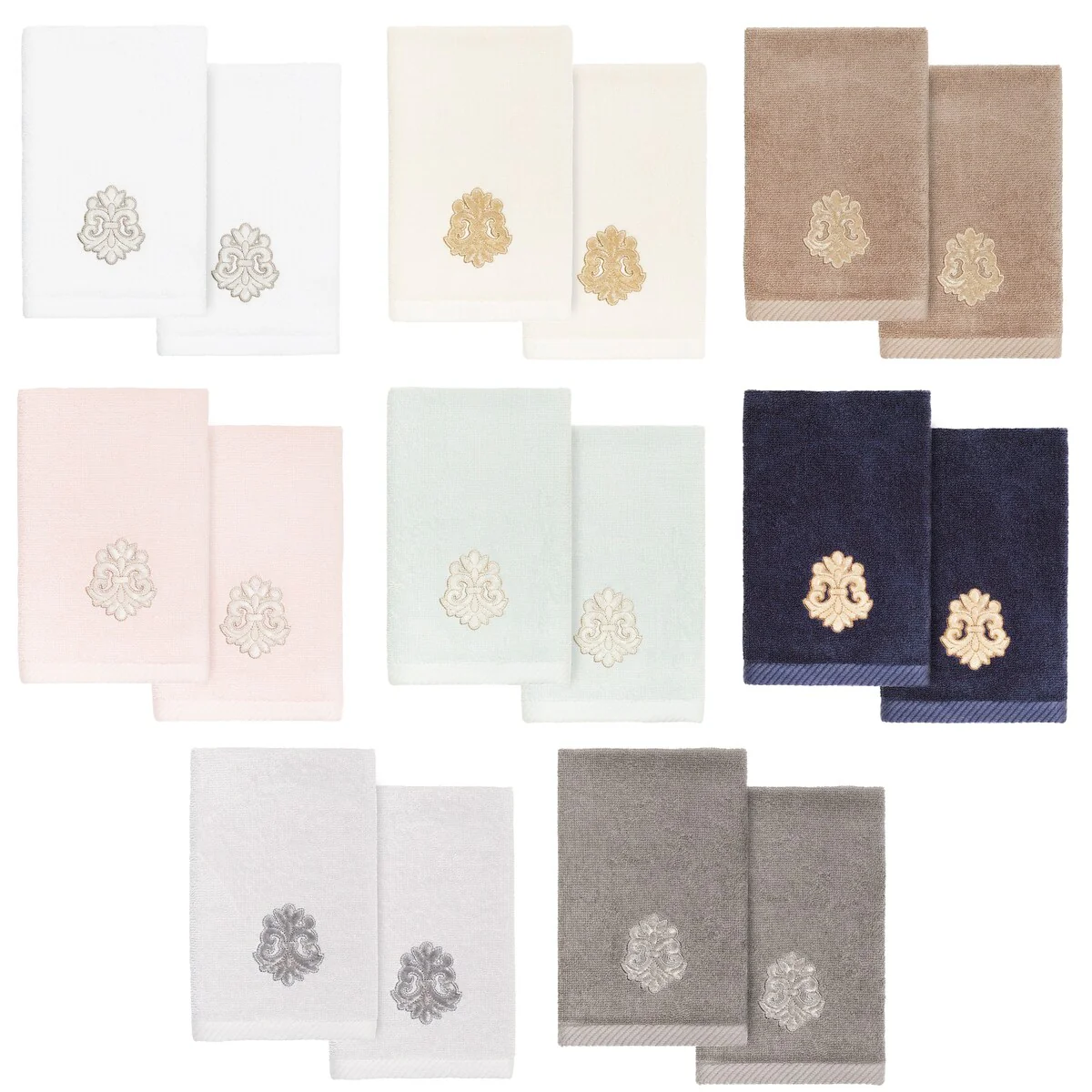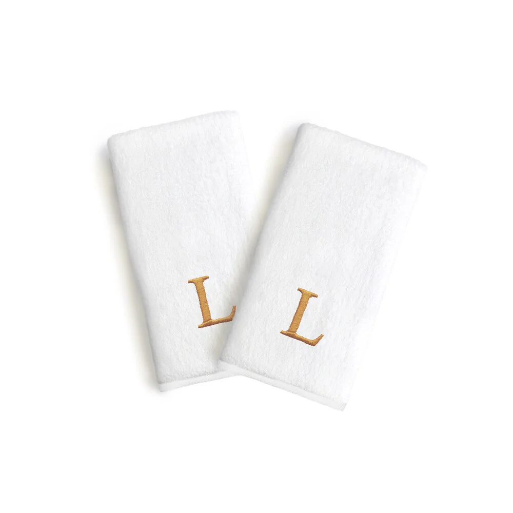 Authentic Hotel and Spa 2-piece White Turkish Cotton Hand Towels with Gold Block Monogrammed Initial