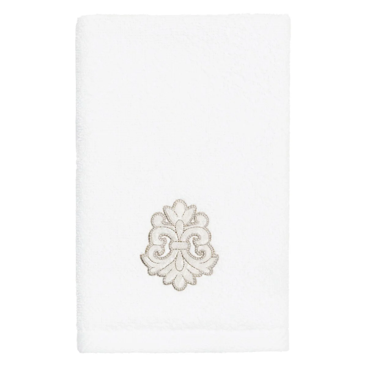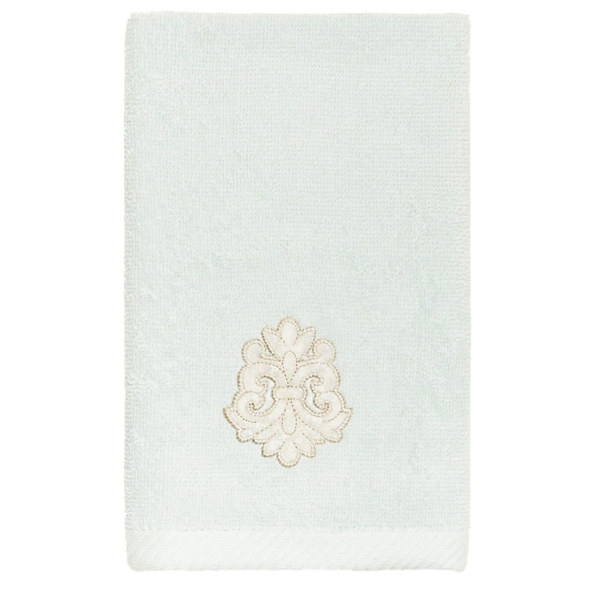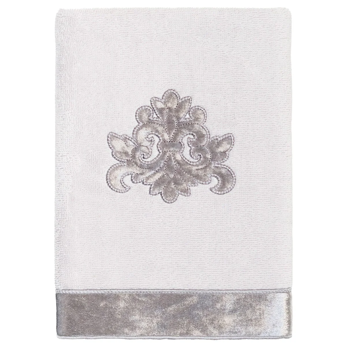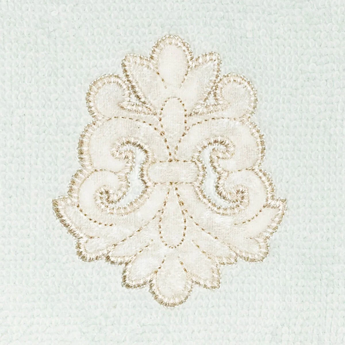 Your decorations are not complete without elegant embroidered towels by Authentic Hotel and Spa for the comfort of your family and guests. The May towels feature a classic velvet crest applique and are trimmed with the same lustrous velvet border. Cloud soft and super absorbent, these luxurious, durable towels keep their plush appearance after washing. This collection is available in 8 elegant colors: White, Beige, Blush, Aqua, Silver, Cocoa, Charcoal and Marine. The May Towel Collection brings a refined spirit and richness to your home decor and makes a great gift.