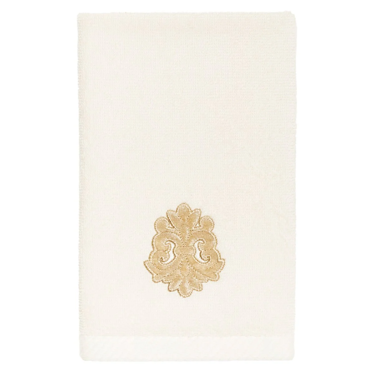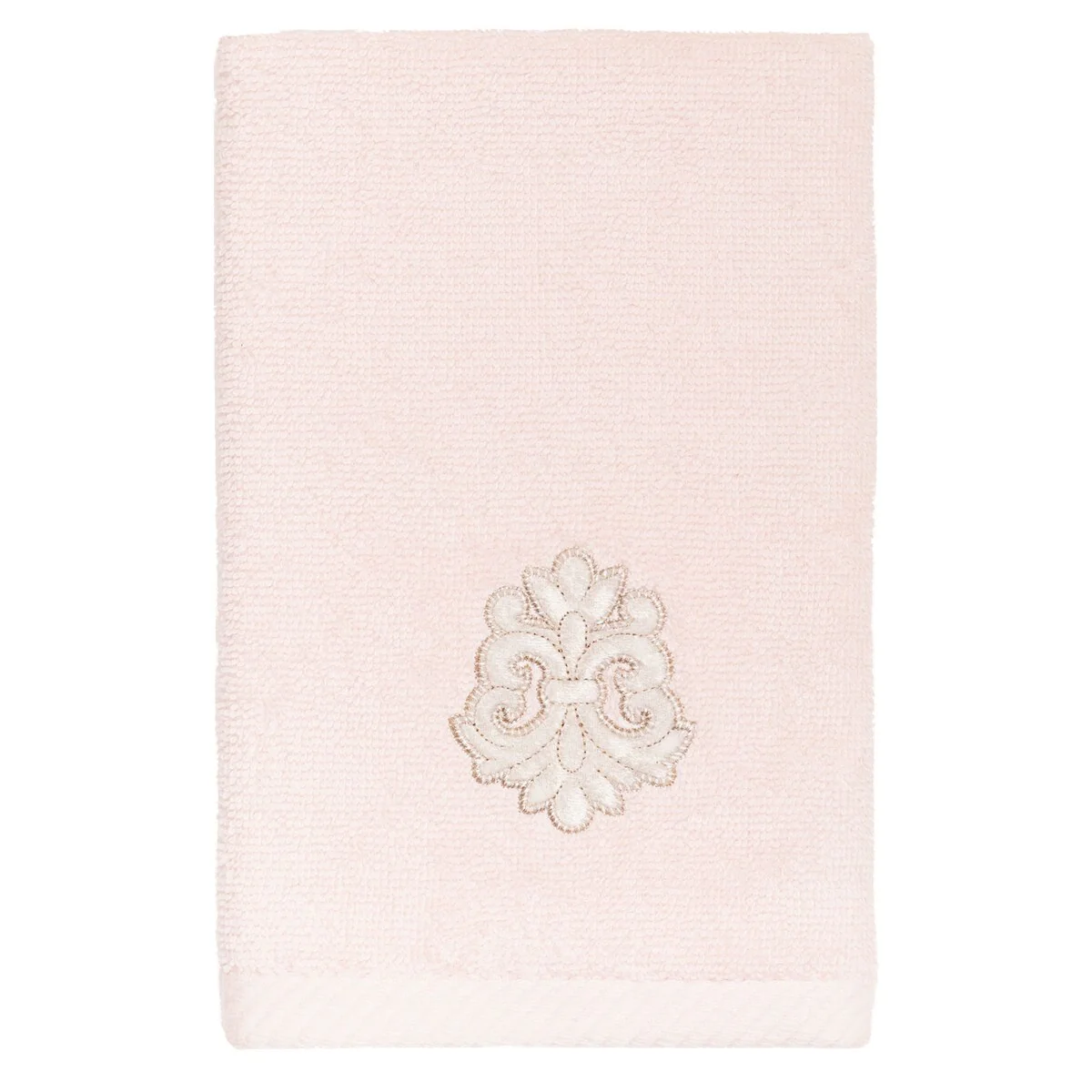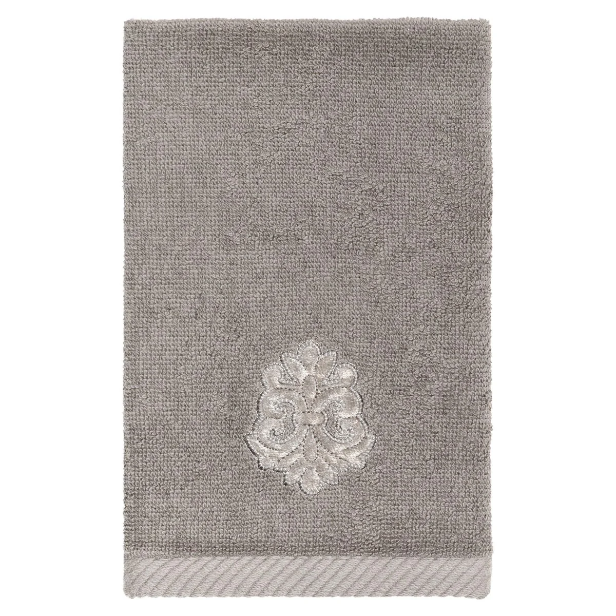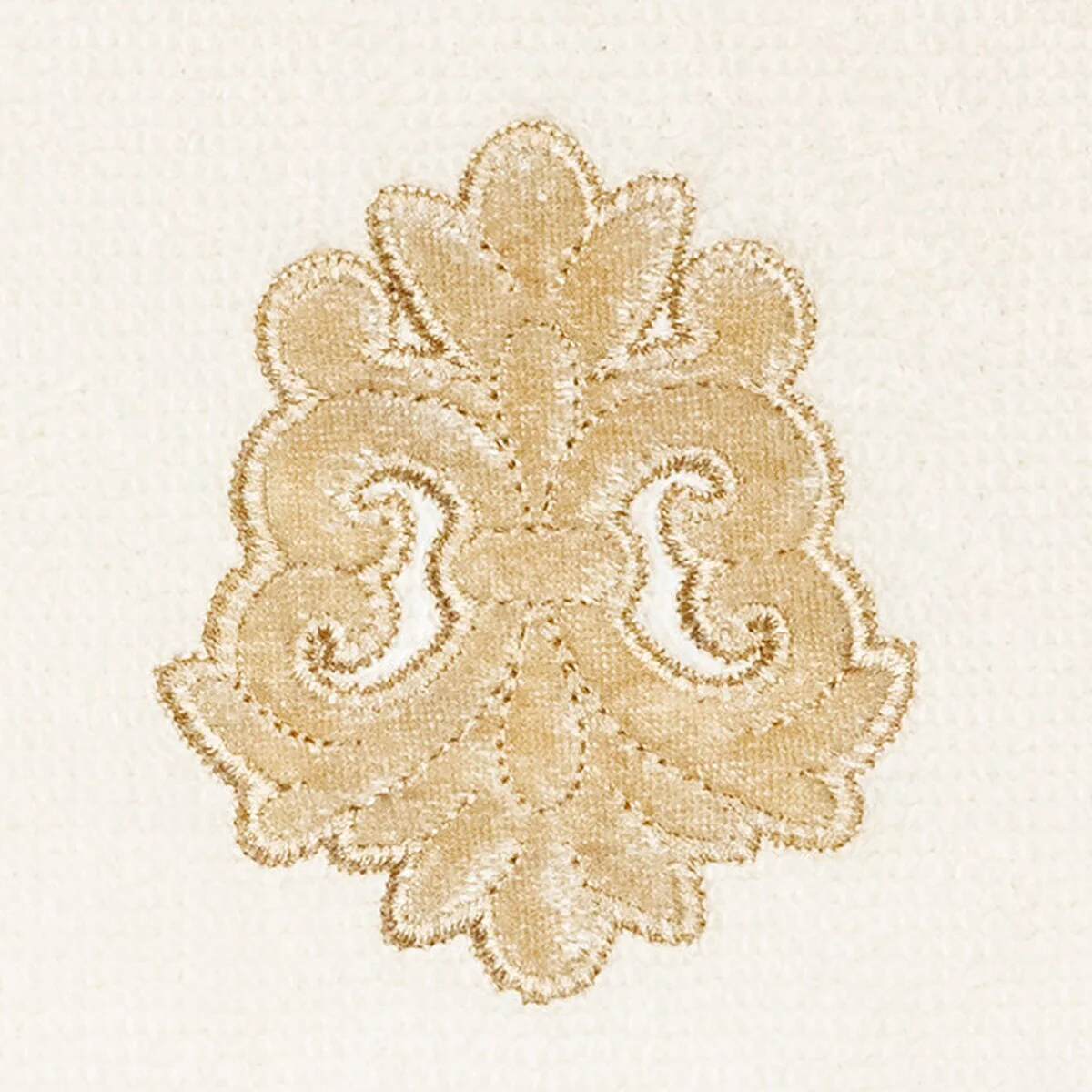Your decorations are not complete without elegant embroidered towels by Authentic Hotel and Spa for the comfort of your family and guests. The May towels feature a classic velvet crest applique and are trimmed with the same lustrous velvet border. Cloud soft and super absorbent, these luxurious, durable towels keep their plush appearance after washing. This collection is available in 8 elegant colors: White, Beige, Blush, Aqua, Silver, Cocoa, Charcoal and Marine. The May Towel Collection brings a refined spirit and richness to your home decor and makes a great gift.