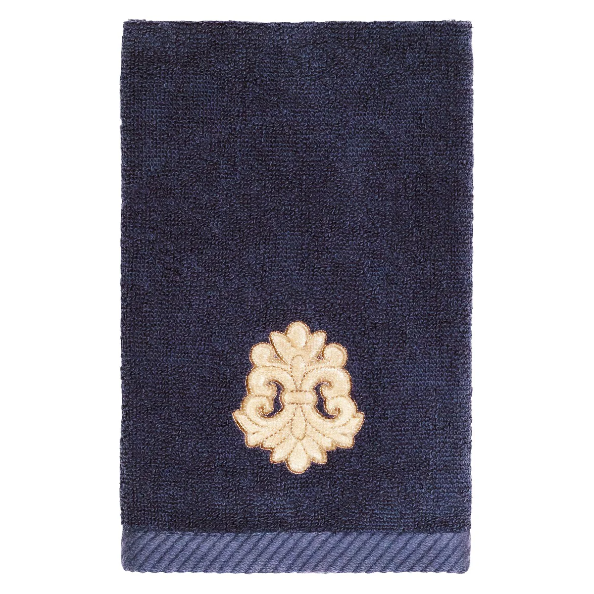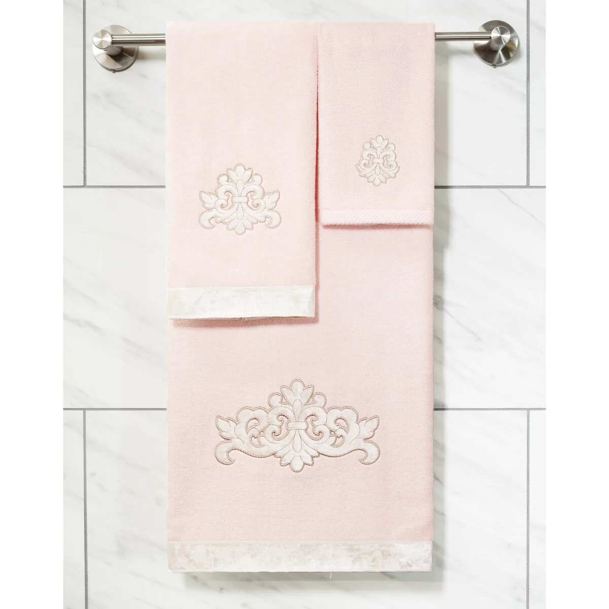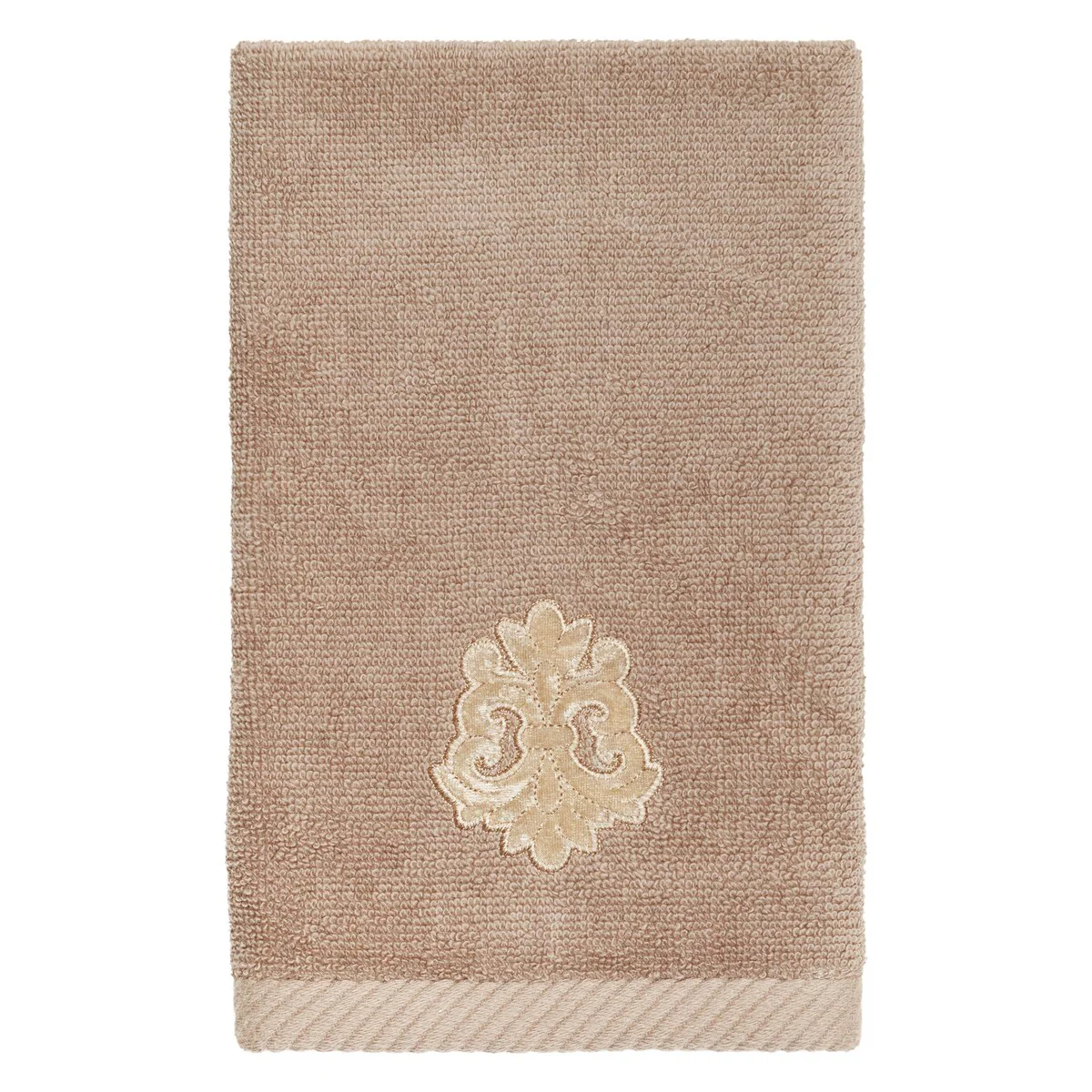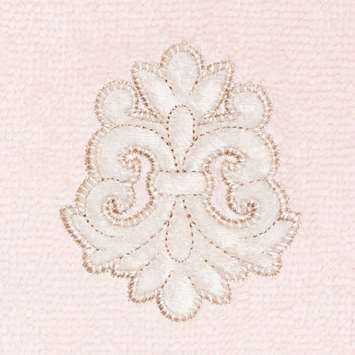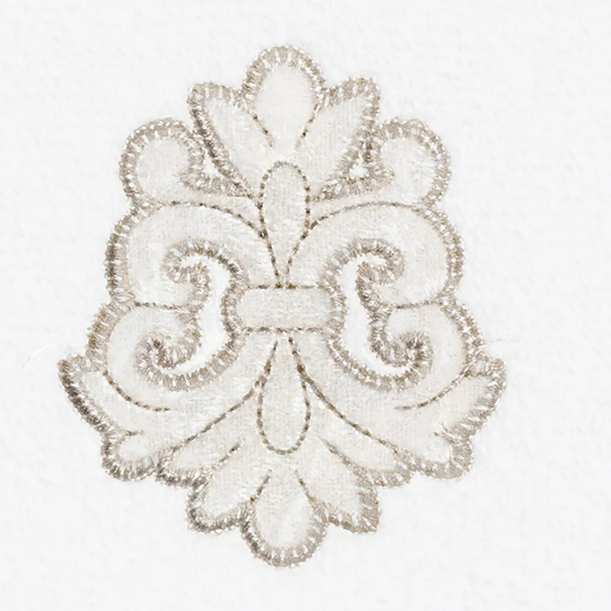 Your decorations are not complete without elegant embroidered towels by Authentic Hotel and Spa for the comfort of your family and guests. The May towels feature a classic velvet crest applique and are trimmed with the same lustrous velvet border. Cloud soft and super absorbent, these luxurious, durable towels keep their plush appearance after washing. This collection is available in 8 elegant colors: White, Beige, Blush, Aqua, Silver, Cocoa, Charcoal and Marine. The May Towel Collection brings a refined spirit and richness to your home decor and makes a great gift.