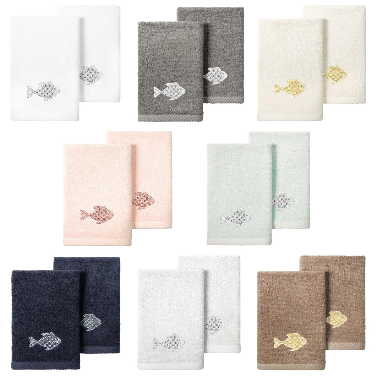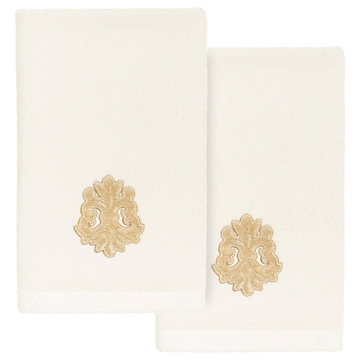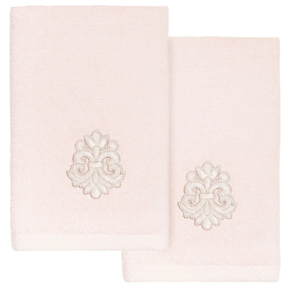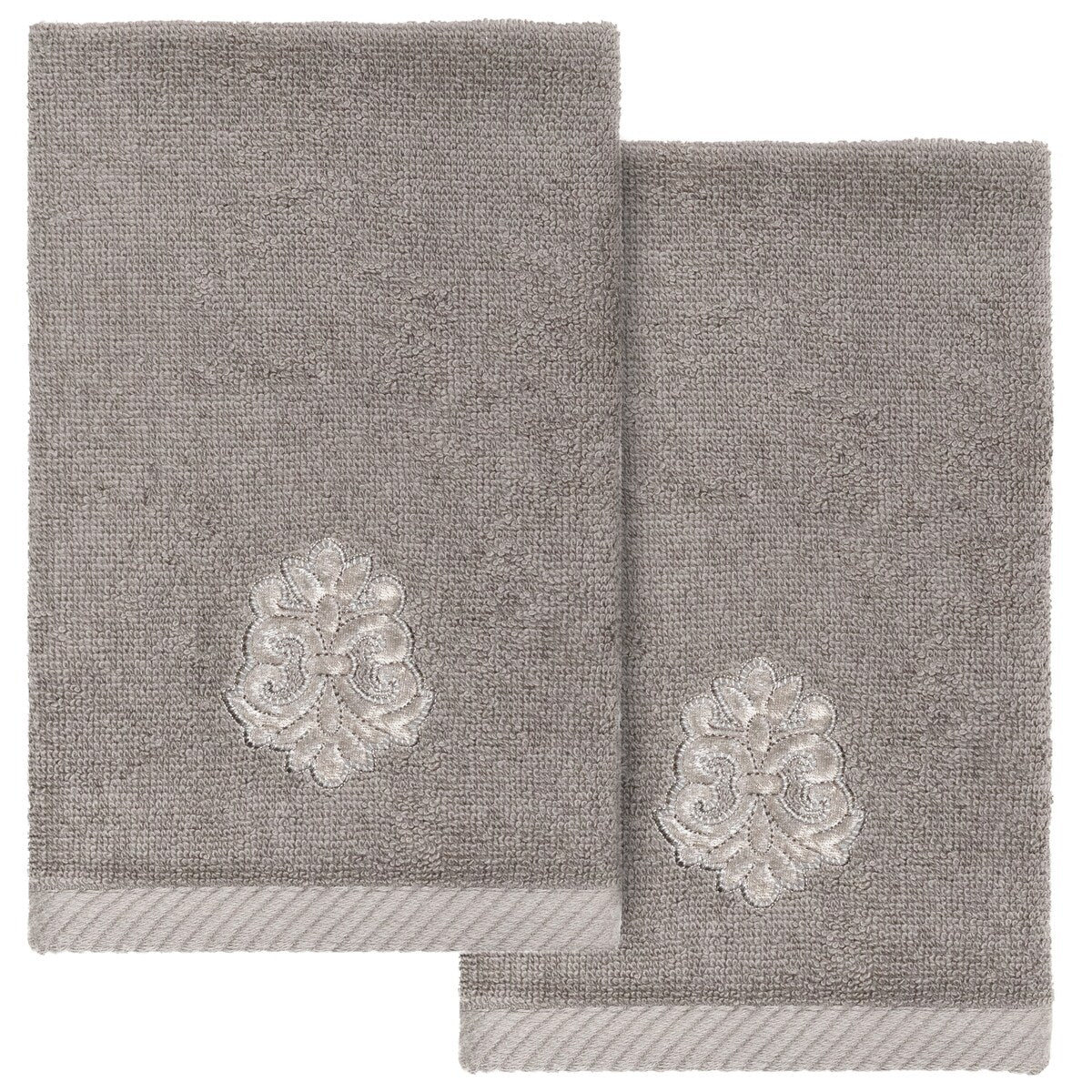 Your decorations are not complete without elegant embroidered towels by Authentic Hotel and Spa for the comfort of your family and guests. The May towels feature a classic velvet crest applique and are trimmed with the same lustrous velvet border. Cloud soft and super absorbent, these luxurious, durable towels keep their plush appearance after washing. This collection is available in 8 elegant colors: White, Beige, Blush, Aqua, Silver, Cocoa, Charcoal and Marine. The May Towel Collection brings a refined spirit and richness to your home decor and makes a great gift.