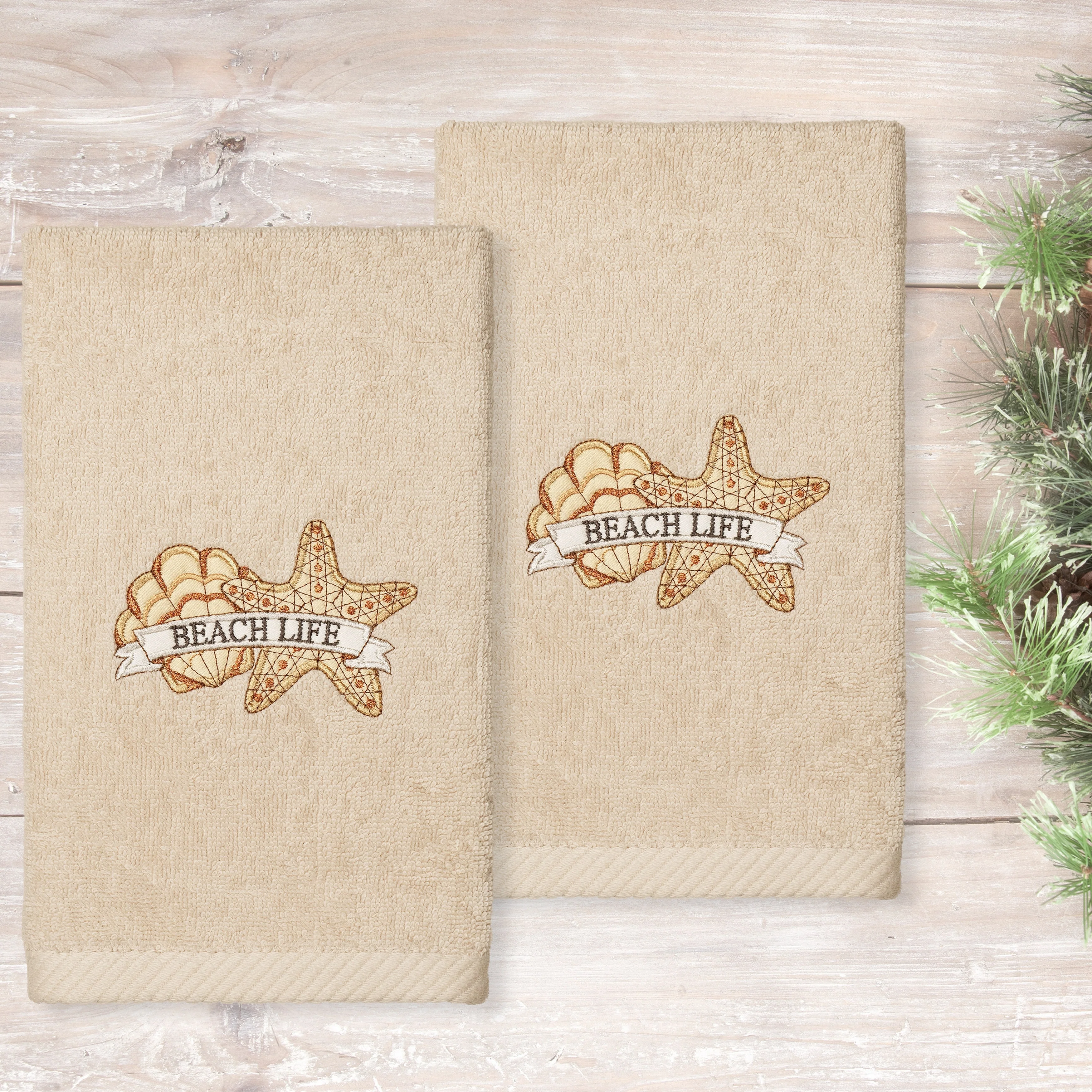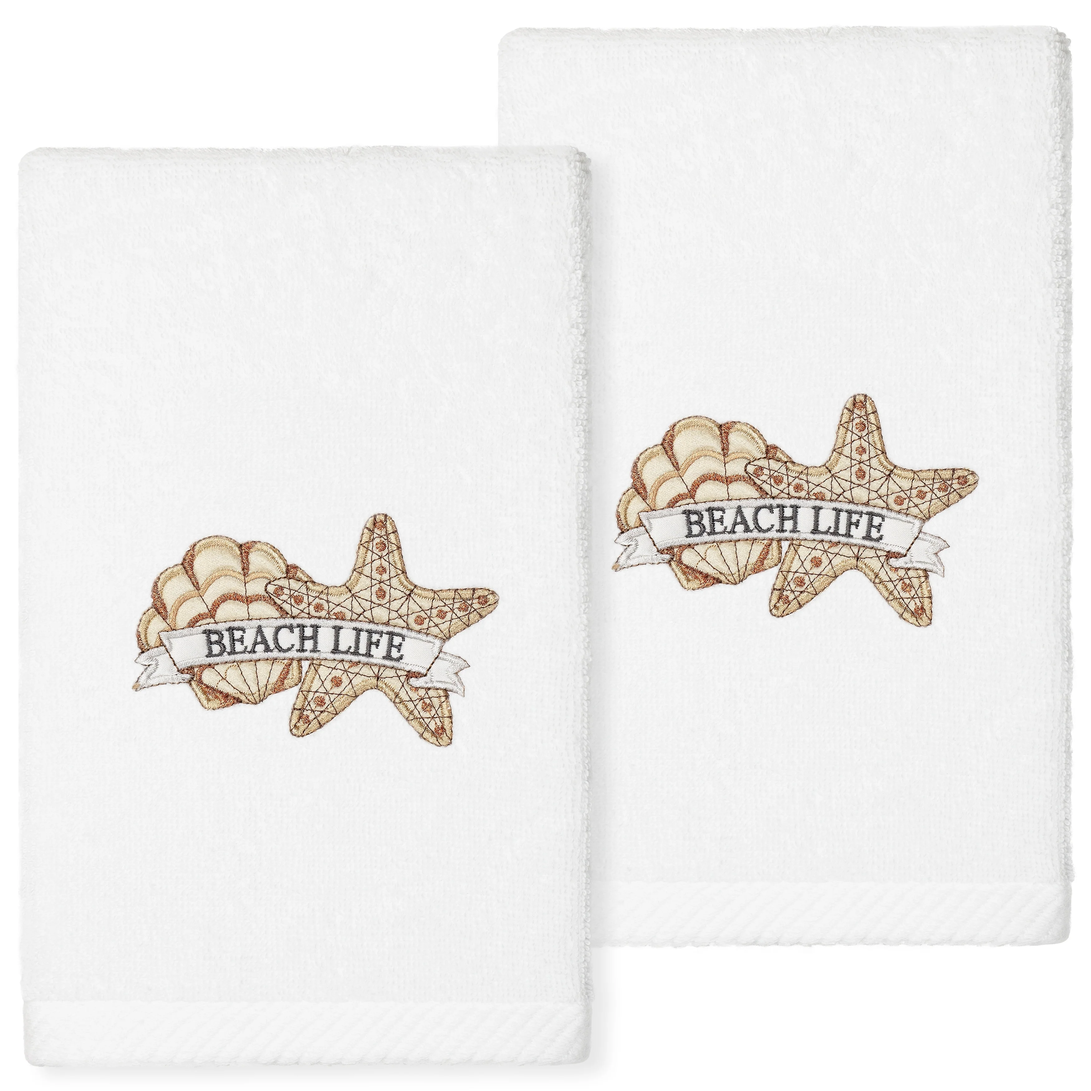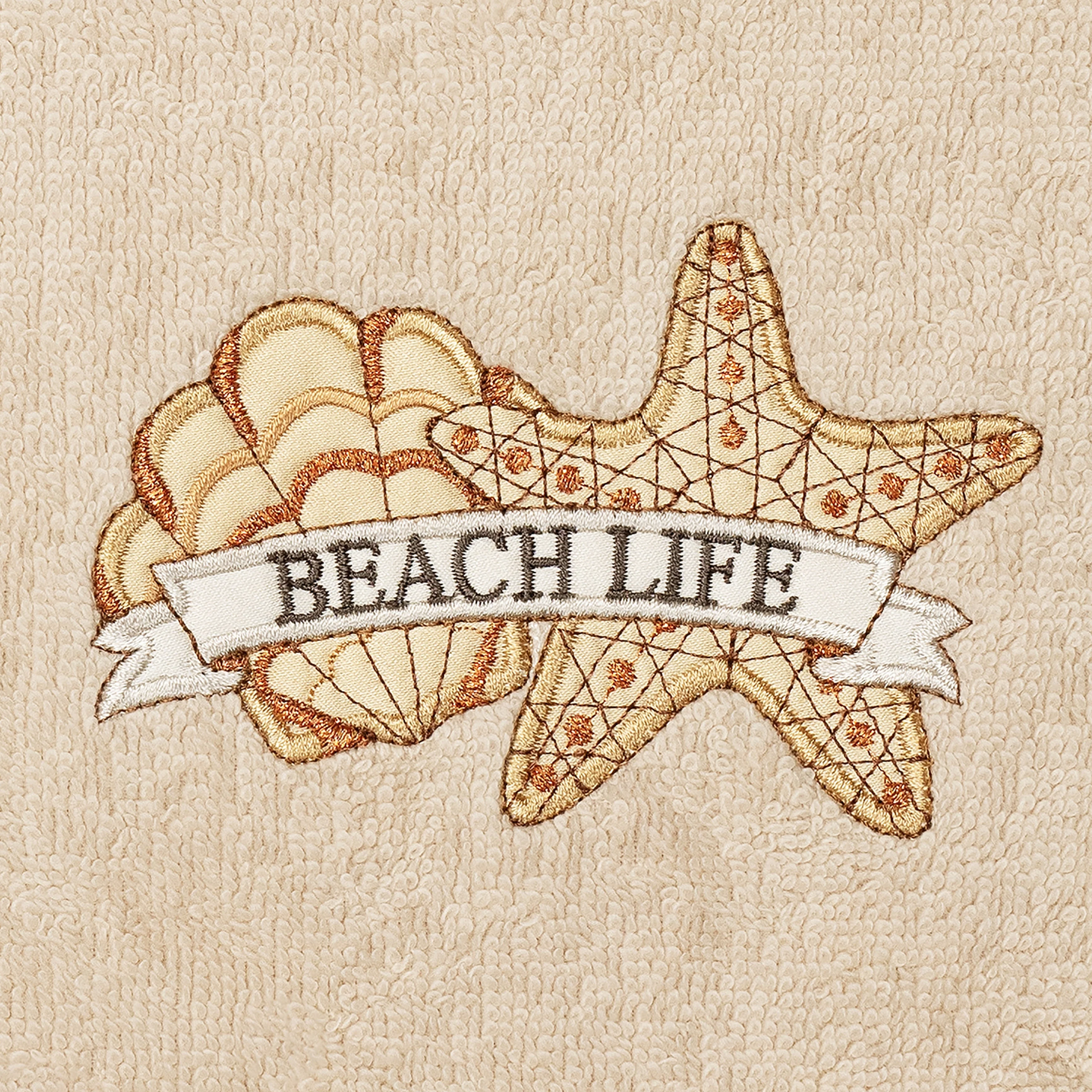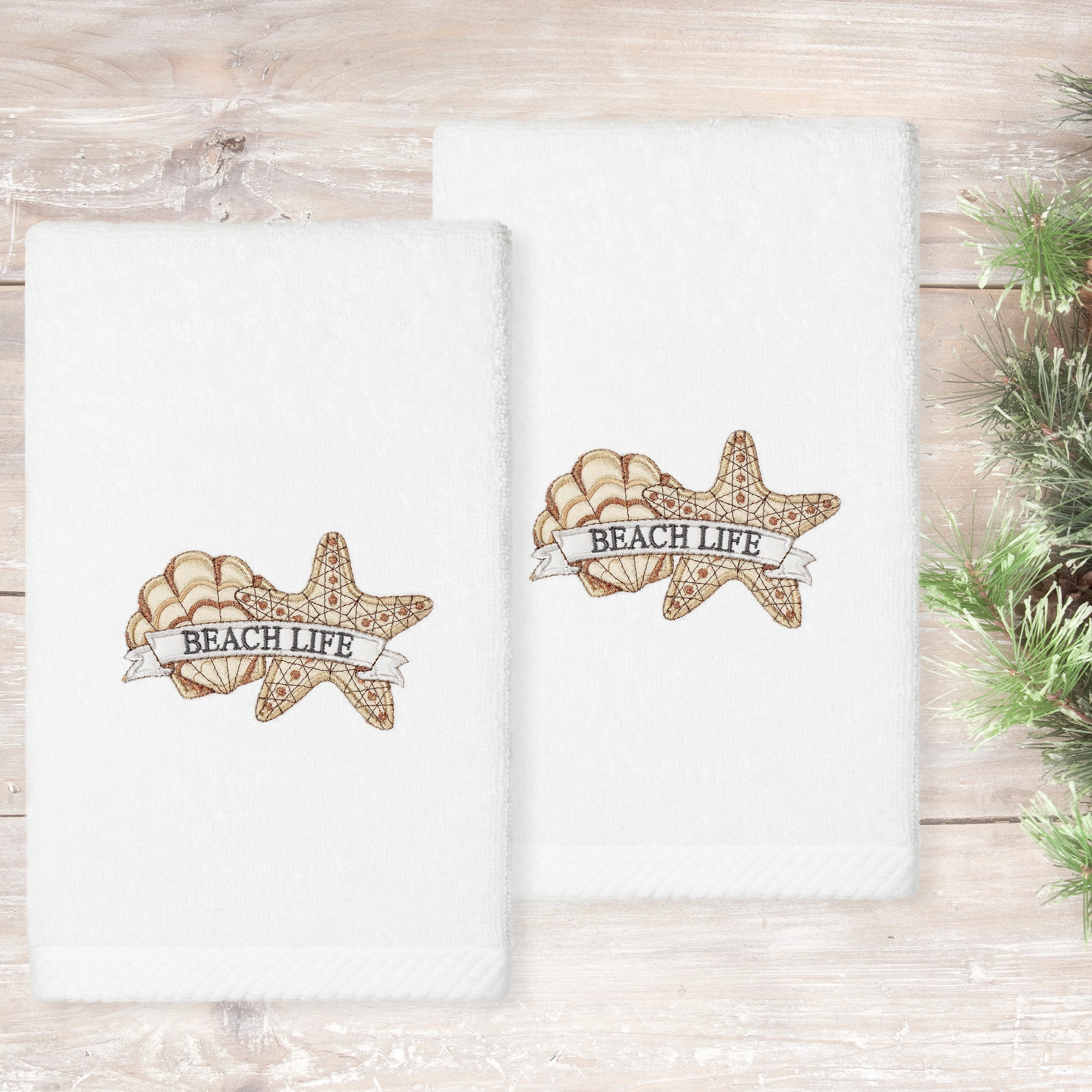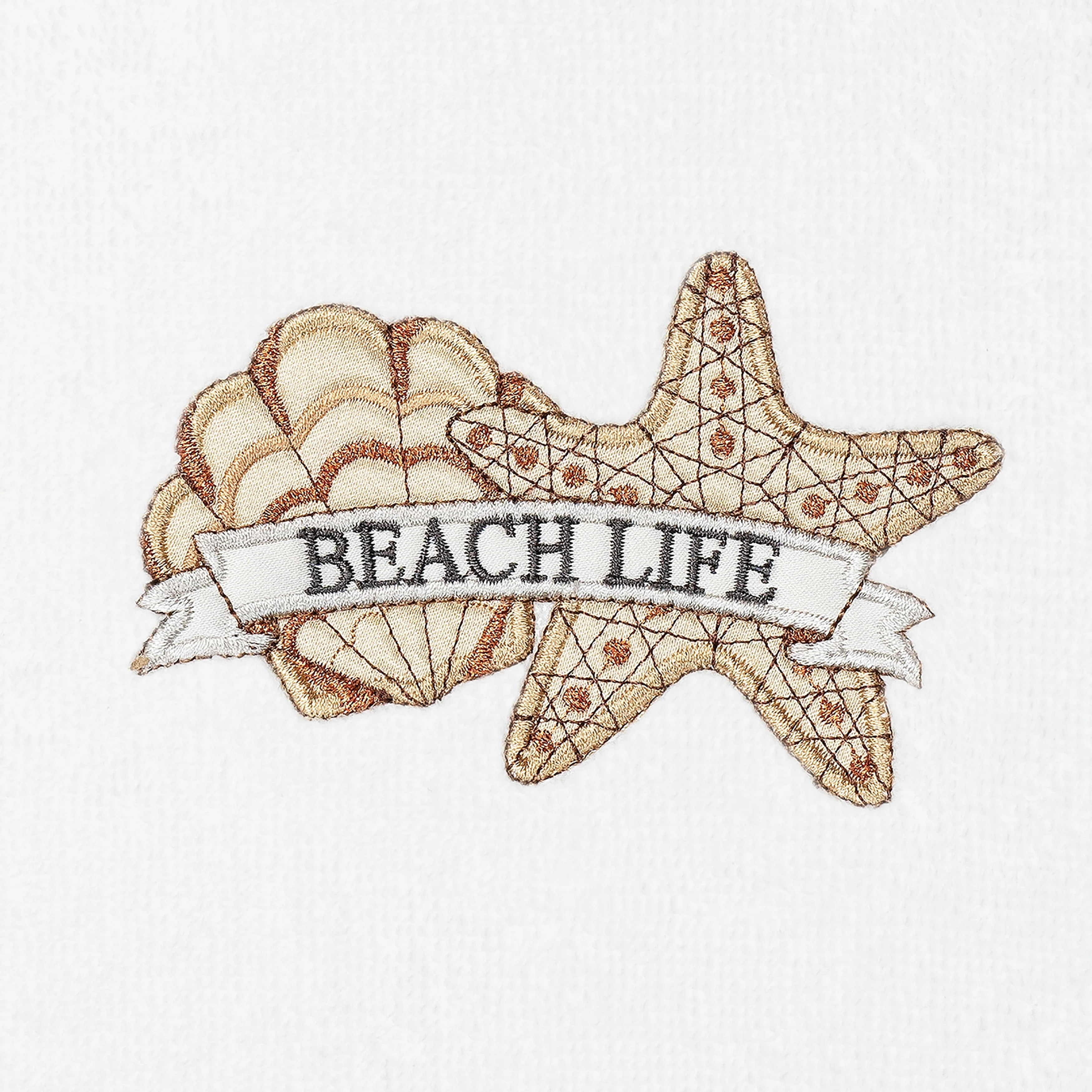 Add a vacation mood to your bath décor with the "Beach Life" embroidered hand towels by Authentic Hotel and Spa. These towels feature sparkling seashells and a banner declaring your carefree, coastal spirit. This special & luxurious terry hand towel is manufactured with the finest Turkish cotton fiber for maximum softness and absorbency.