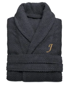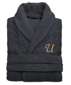 - Color: Charcoal grey robe with gold embroidered initial
