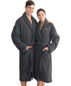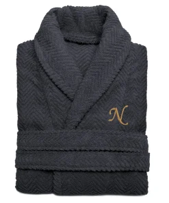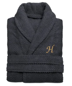 Step out of a bath into the luxurious comfort of this Turkish cotton bath robe. Featuring an embroidered monogram, this bath robe has a herringbone weave that prevents it from shedding after repeated use.