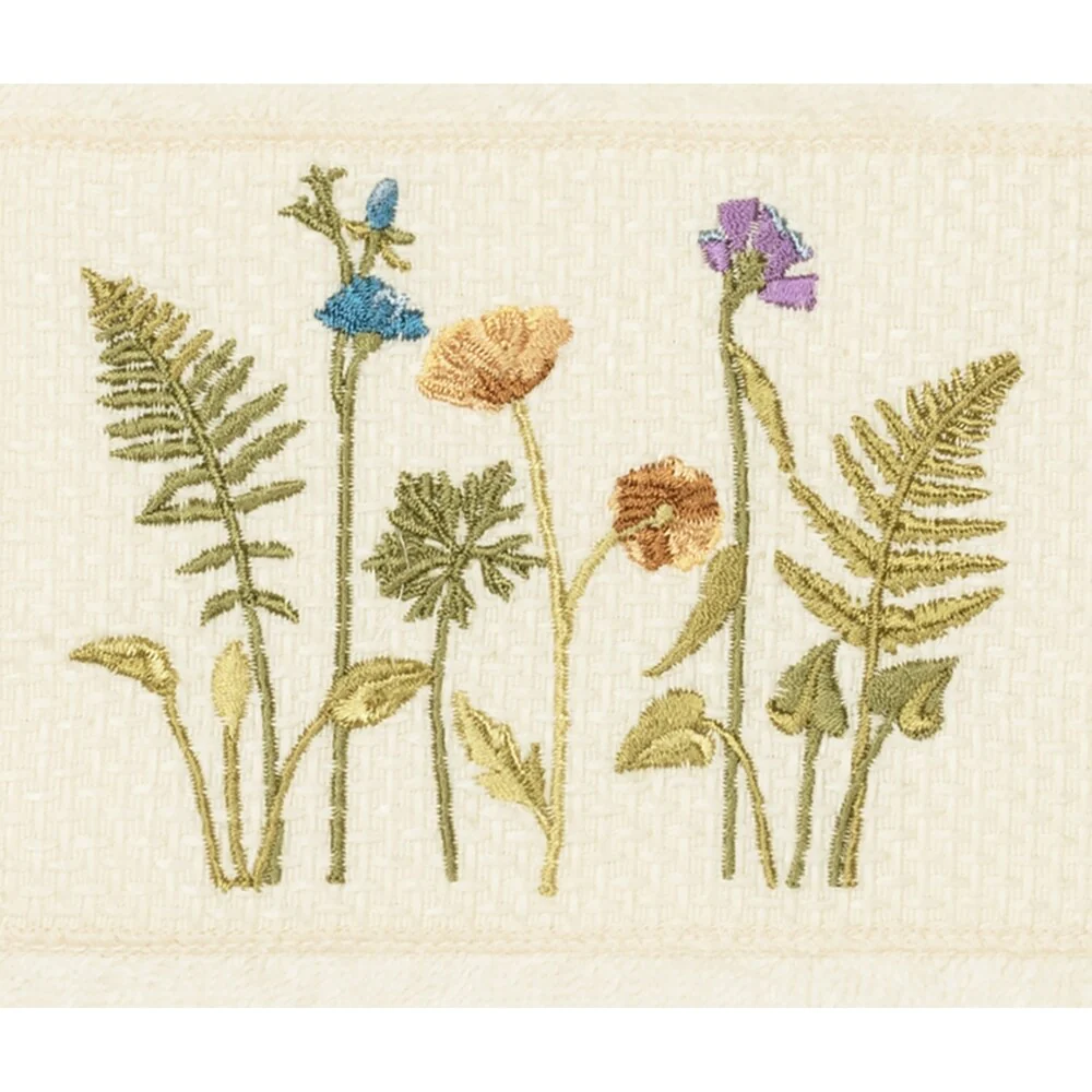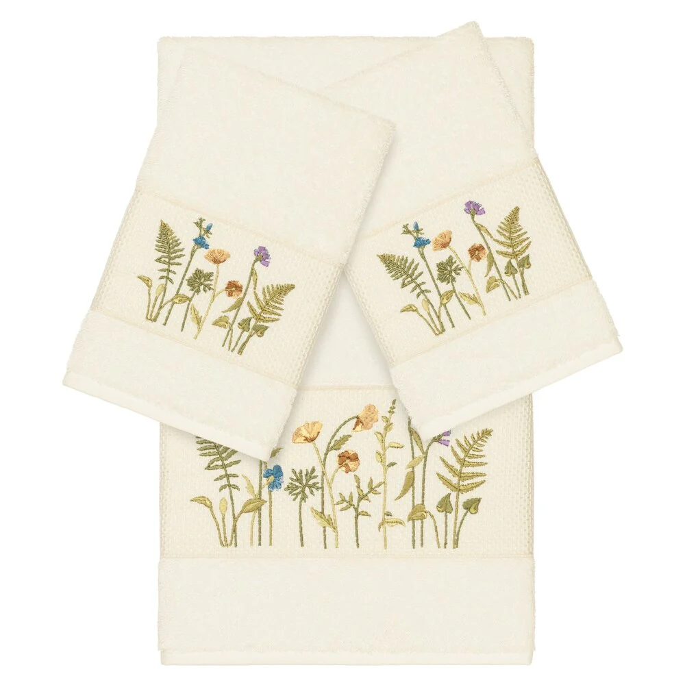 This authentic hotel and spa 4-piece towel set is made from plush, high end Turkish cotton for supreme absorbency and durability. The beautiful cream towels are embellished with a wildflowers applique and embroidery design with a textured woven border to add that special touch to your bathroom.