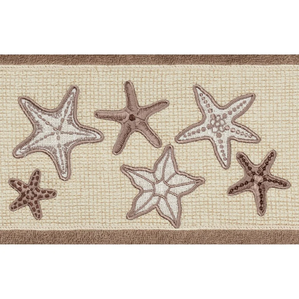 This authentic hotel and spa 8-piece towel set is made from plush, high end Turkish cotton for supreme absorbency and durability. The beautiful latte brown towels are embellished with a starfish applique and embroidery design with a textured woven border to add that special touch to your bathroom.