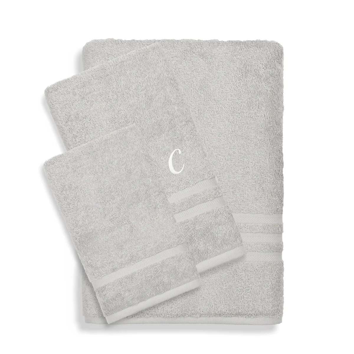 Authentic Hotel and Spa Omni Turkish Cotton Terry 3-piece Grey Bath Towel Set with White Script Monogrammed Initial