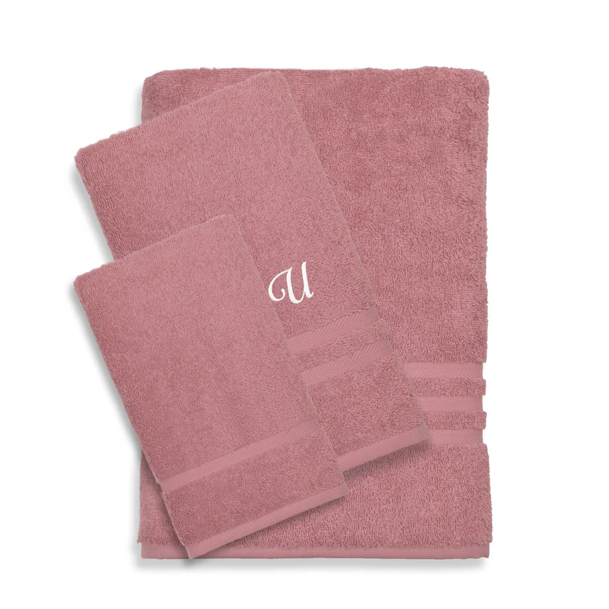 Authentic Hotel and Spa Omni Turkish Cotton Terry 3-piece Tea Rose Bath Towel Set with White Script Monogrammed Initial