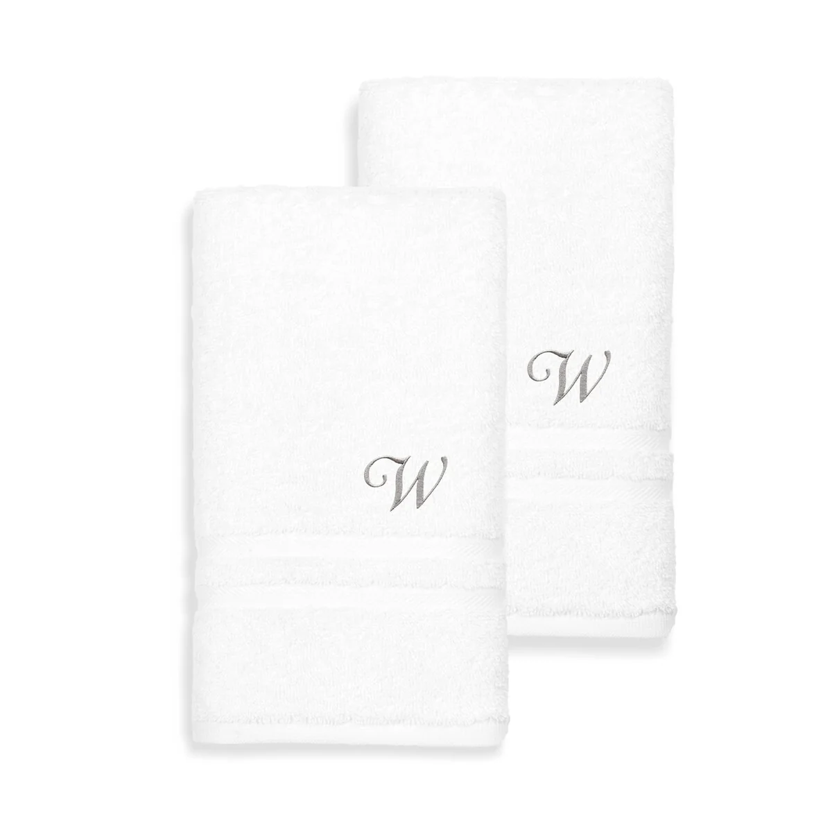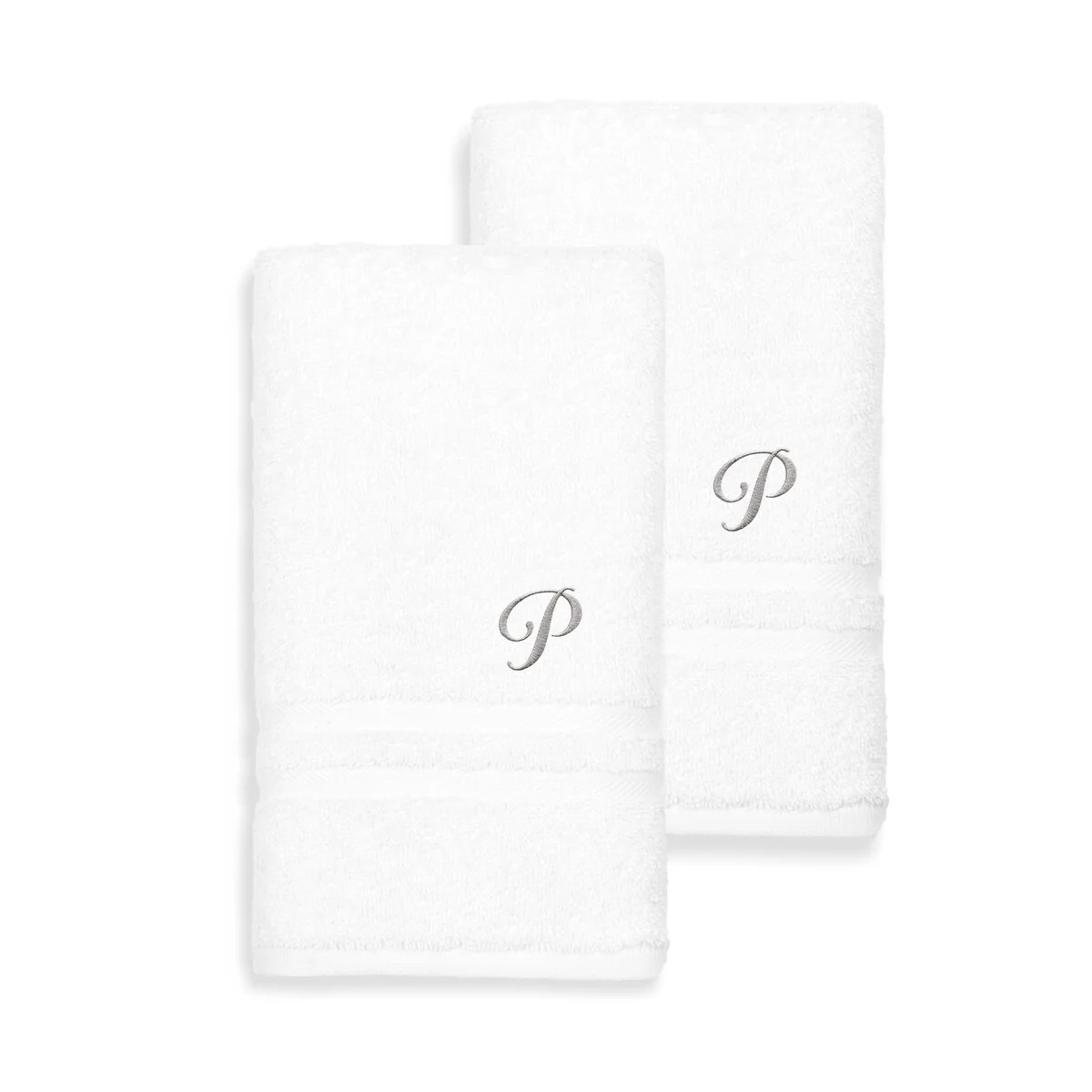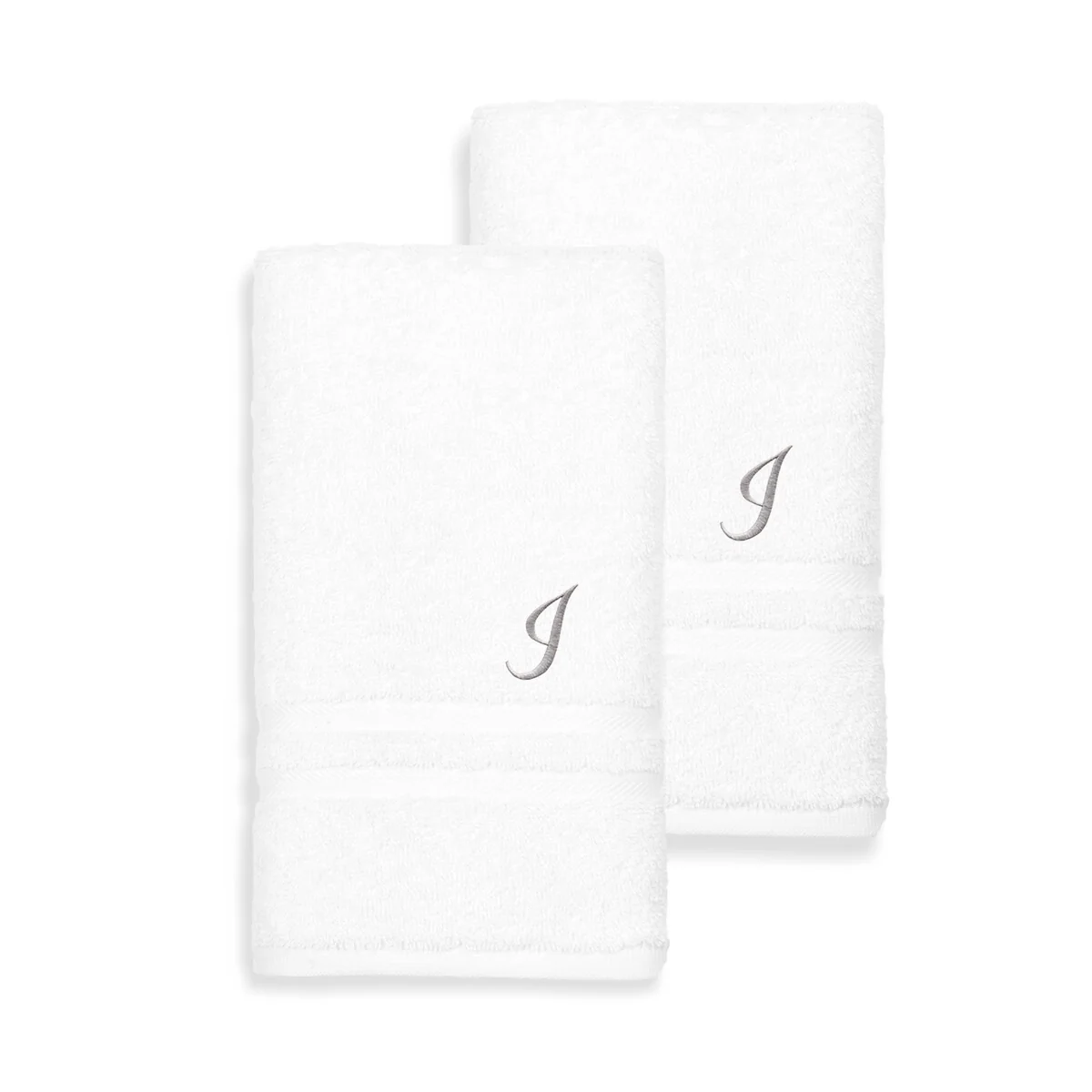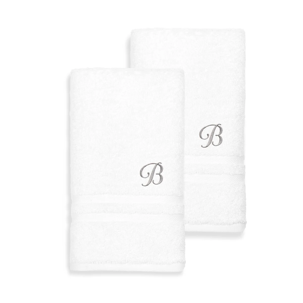 Mark your space in style with this set of monogrammed terry hand towels. This pair of towels features the elegant script initial of your choice for an upscale look in your bathroom. Soft, thick Turkish cotton construction makes the towels extra absorbent for quick and efficient hand-drying without pilling or shedding.