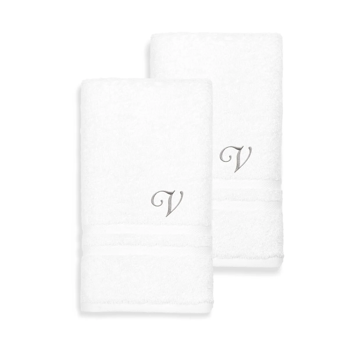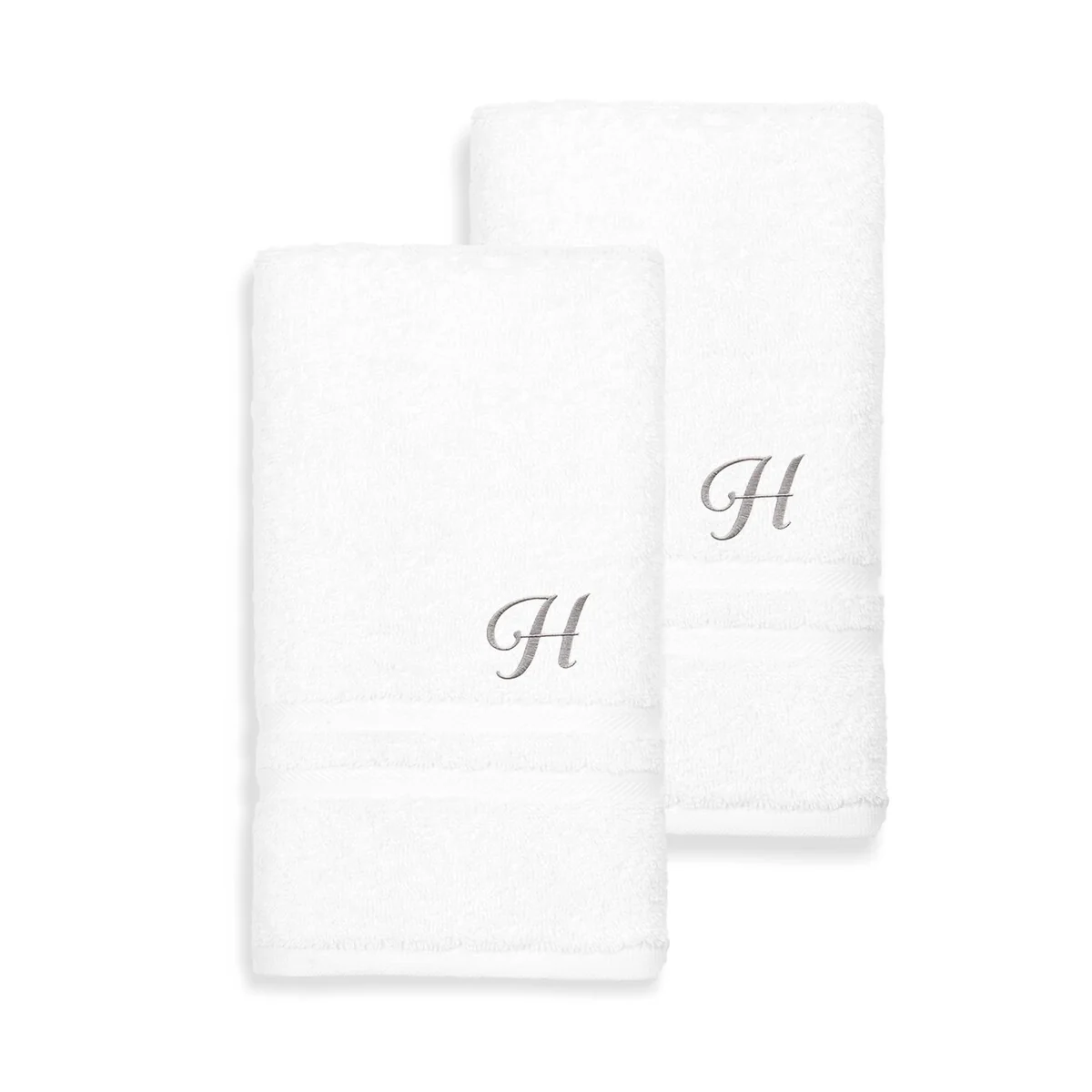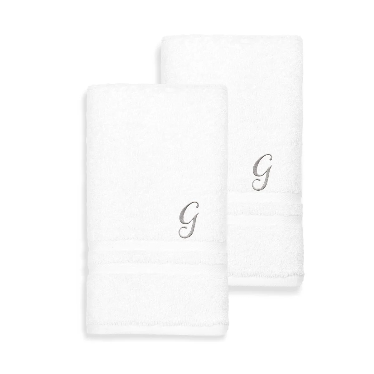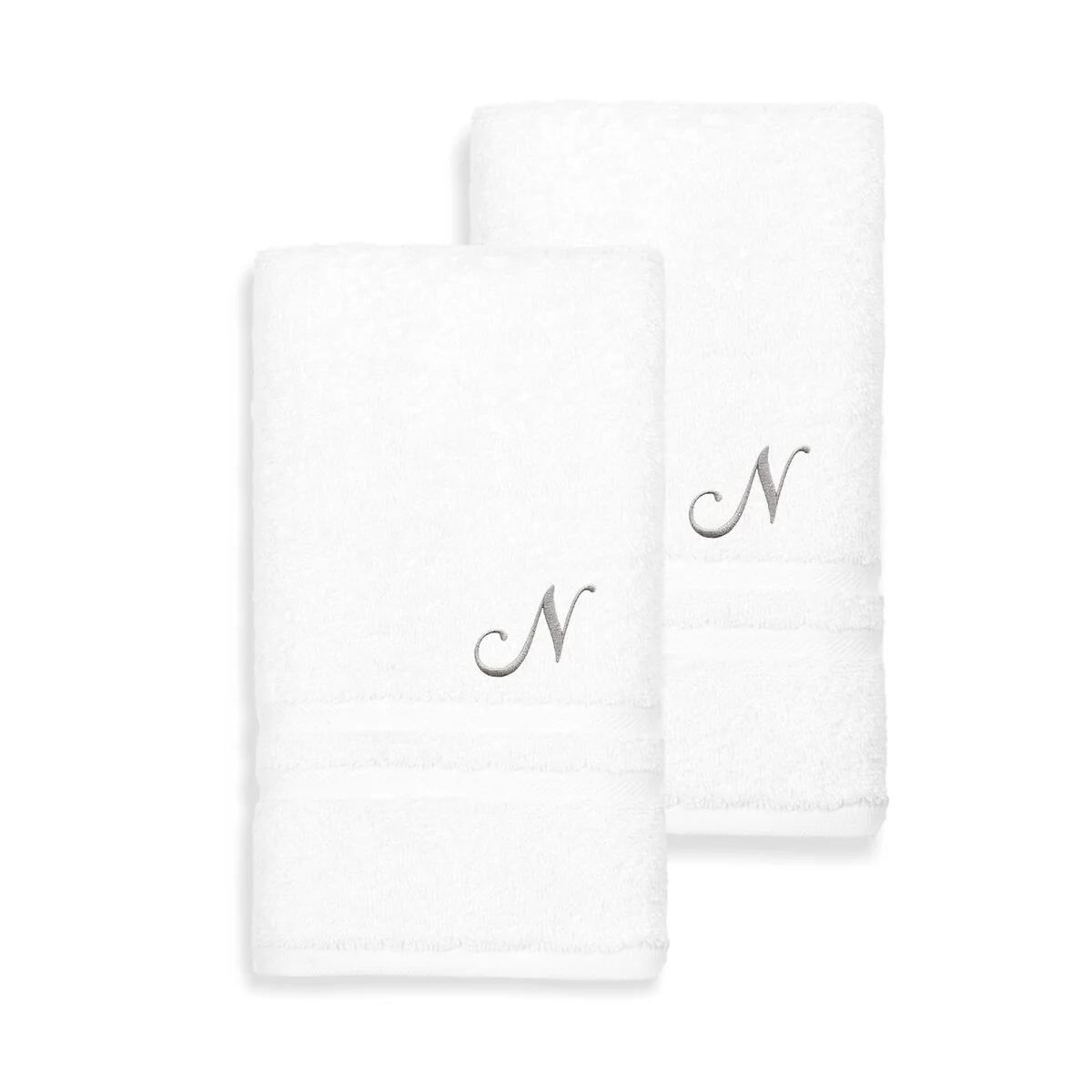 Mark your space in style with this set of monogrammed terry hand towels. This pair of towels features the elegant script initial of your choice for an upscale look in your bathroom. Soft, thick Turkish cotton construction makes the towels extra absorbent for quick and efficient hand-drying without pilling or shedding.