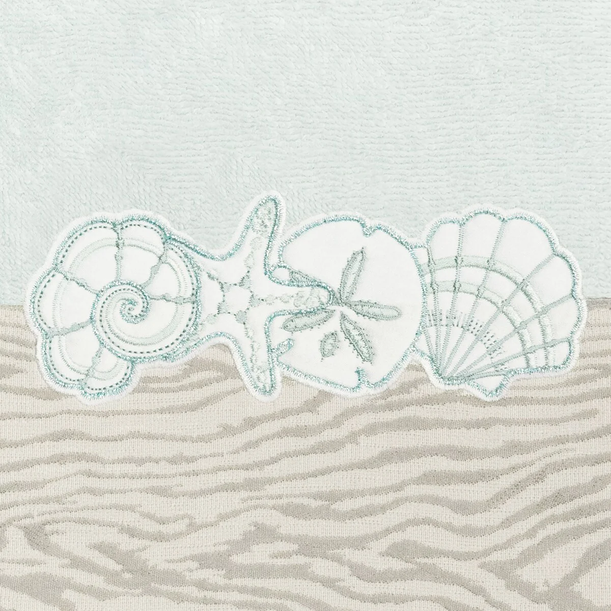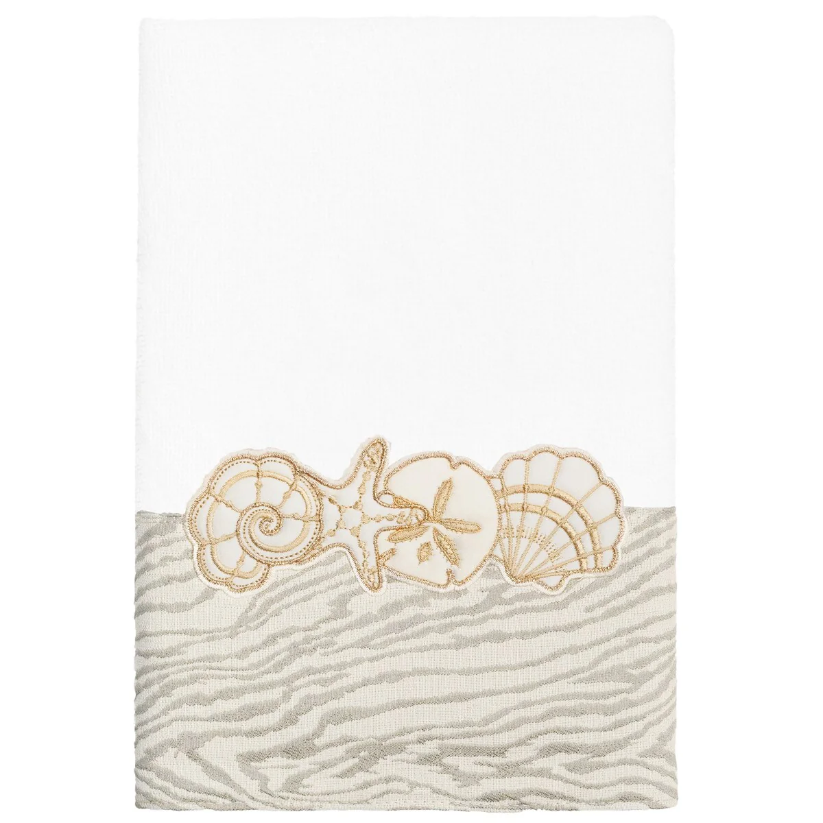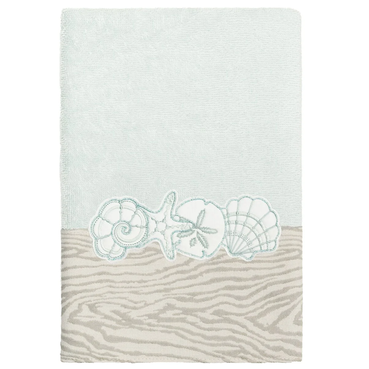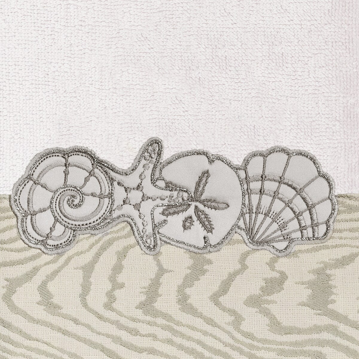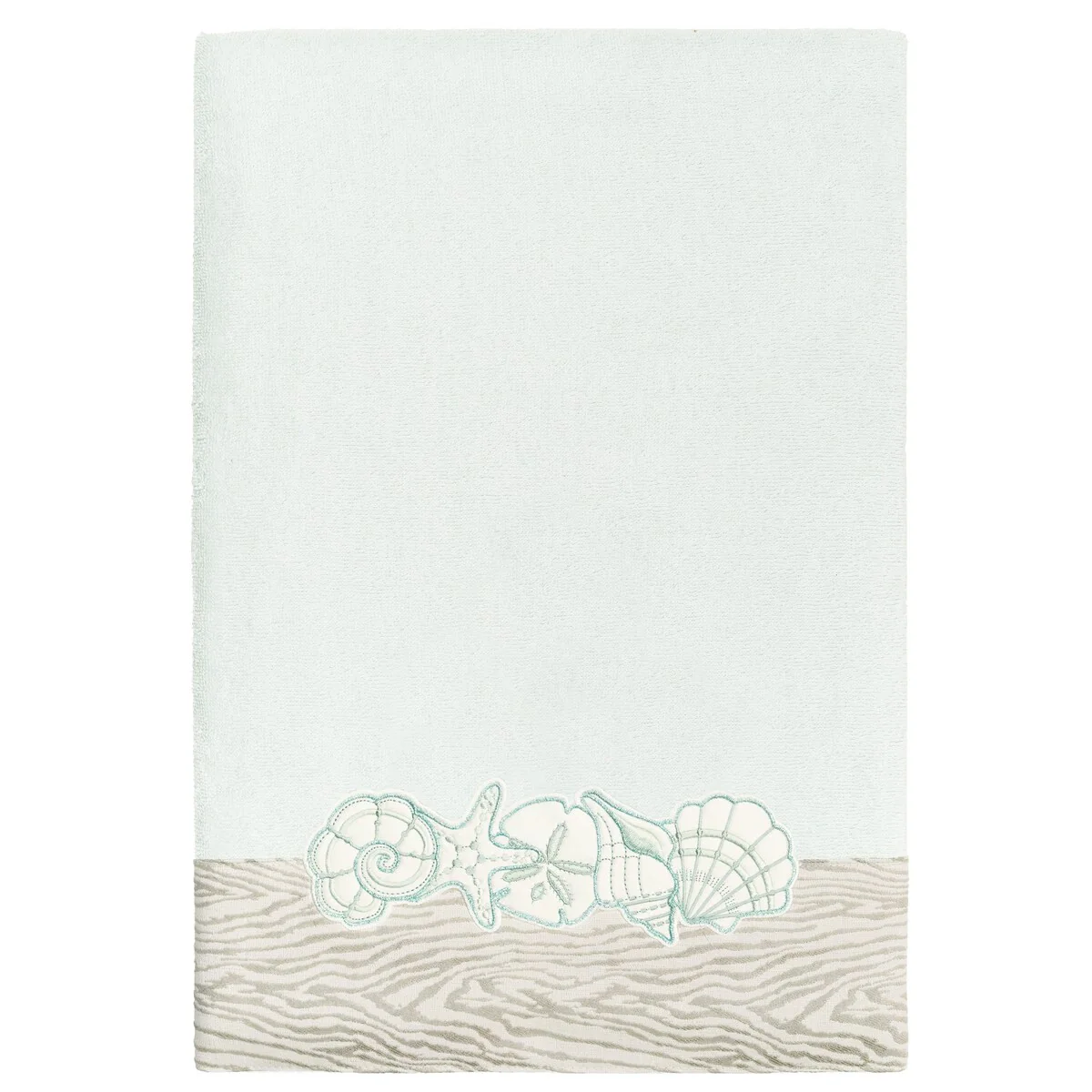 Your bath decor is not complete without a set of beautiful embroidered towels by Authentic Hotel and Spa for the comfort of your family and guests. The Shell Row towels feature sparkling applique seashells on a weathered woodgrain pattern jacquard border. Cloud soft and super absorbent, these luxurious, durable towels keep their plush appearance after washing. This collection is available in 8 elegant colors: White, Beige, Blush, Aqua, Silver, Cocoa, Charcoal and Marine. The Shell Row Towel Collection brings seaside spirit and richness to your home decor and makes a great gift.