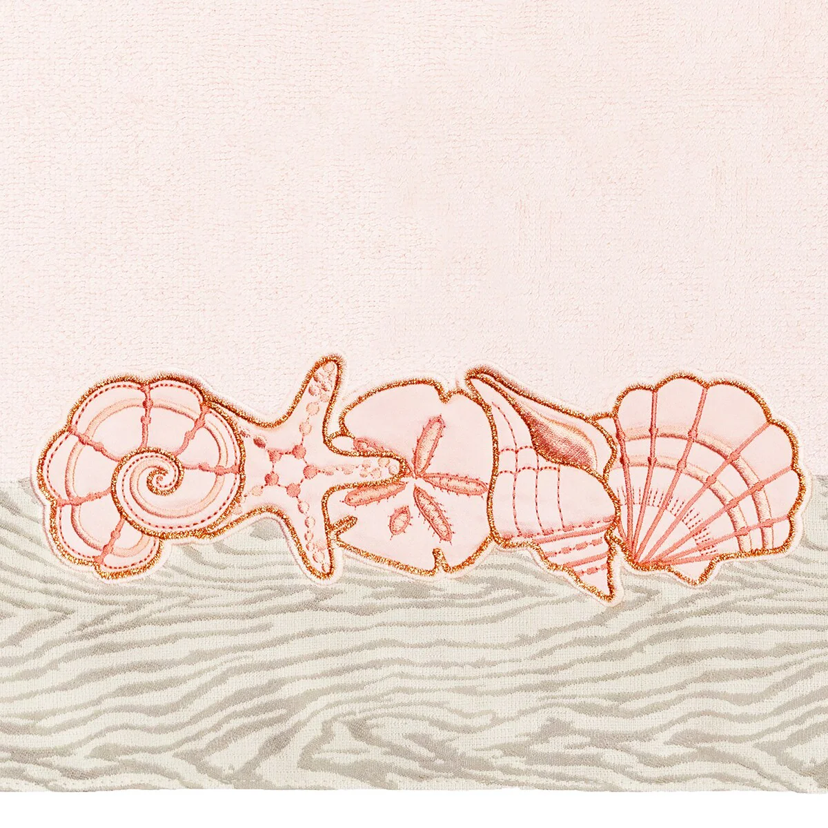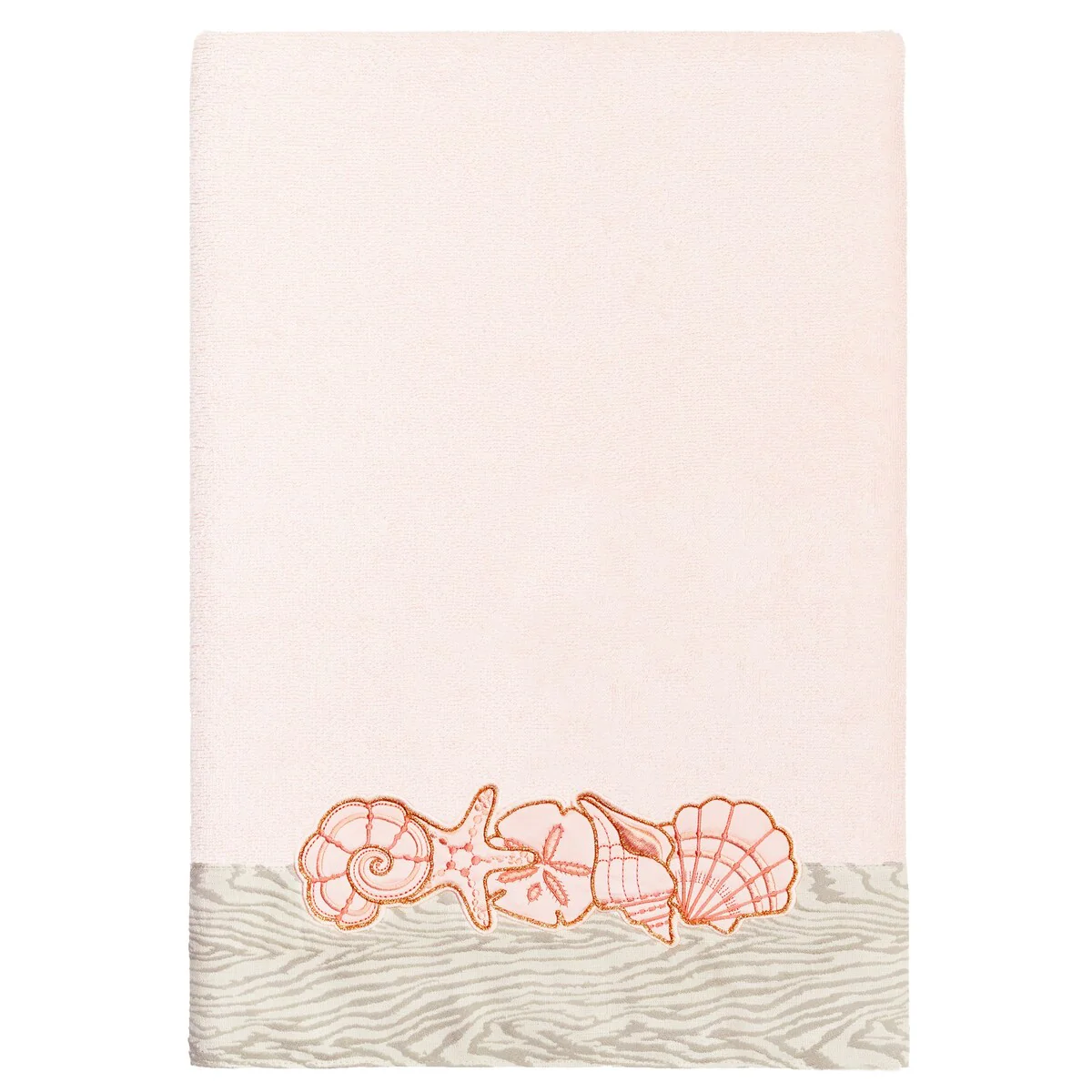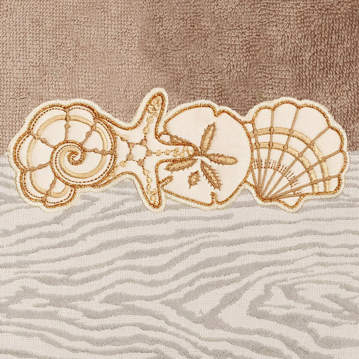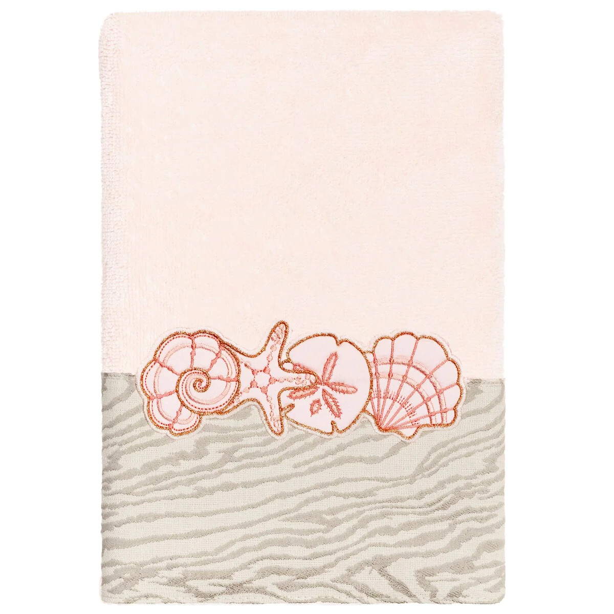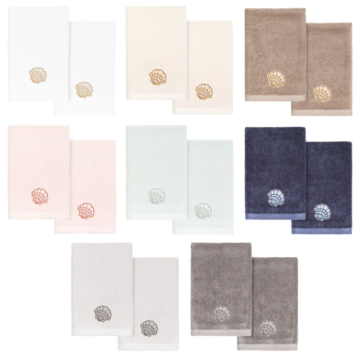 Your bath decor is not complete without a set of beautiful embroidered towels by Authentic Hotel and Spa for the comfort of your family and guests. The Shell Row towels feature sparkling applique seashells on a weathered woodgrain pattern jacquard border. Cloud soft and super absorbent, these luxurious, durable towels keep their plush appearance after washing. This collection is available in 8 elegant colors: White, Beige, Blush, Aqua, Silver, Cocoa, Charcoal and Marine. The Shell Row Towel Collection brings seaside spirit and richness to your home decor and makes a great gift.