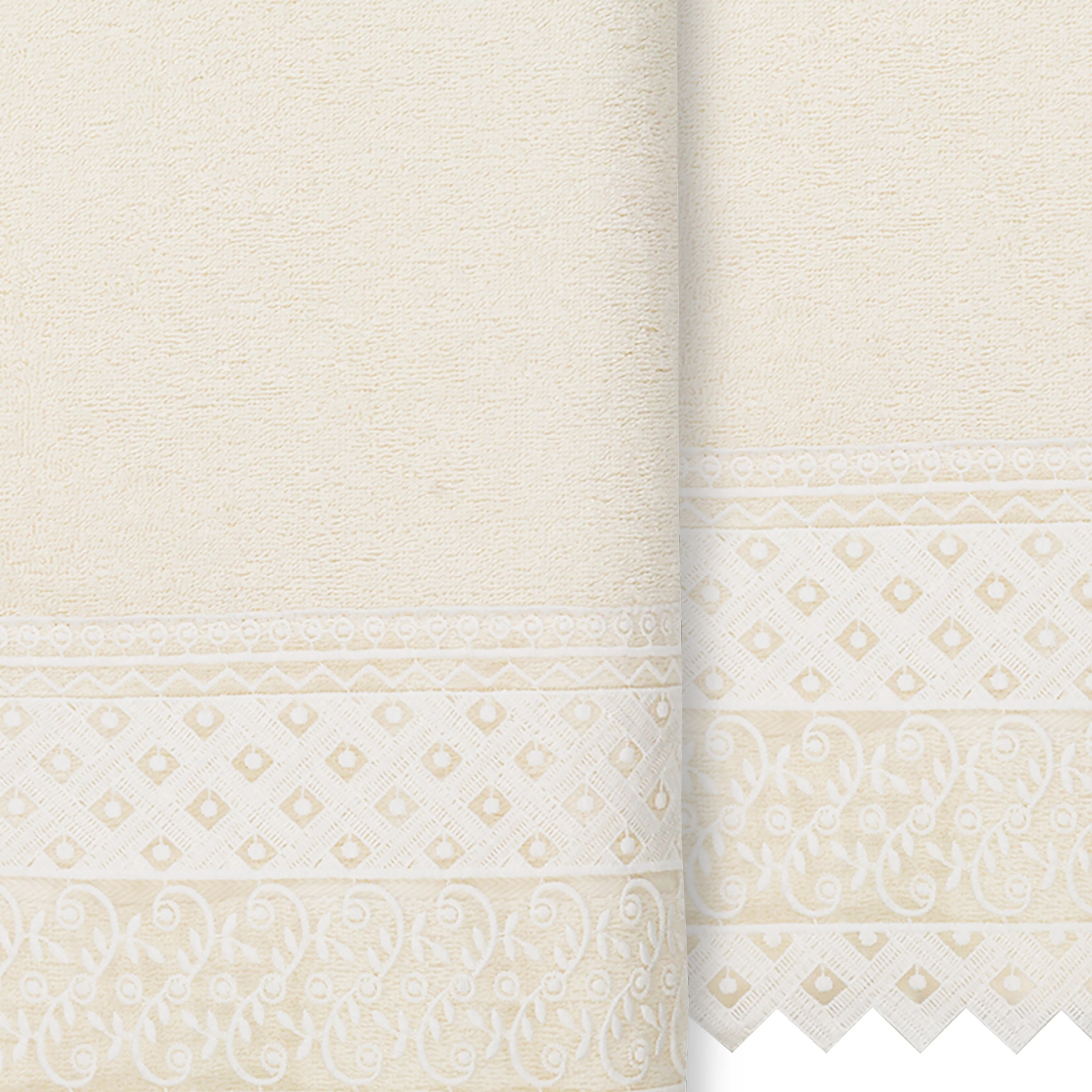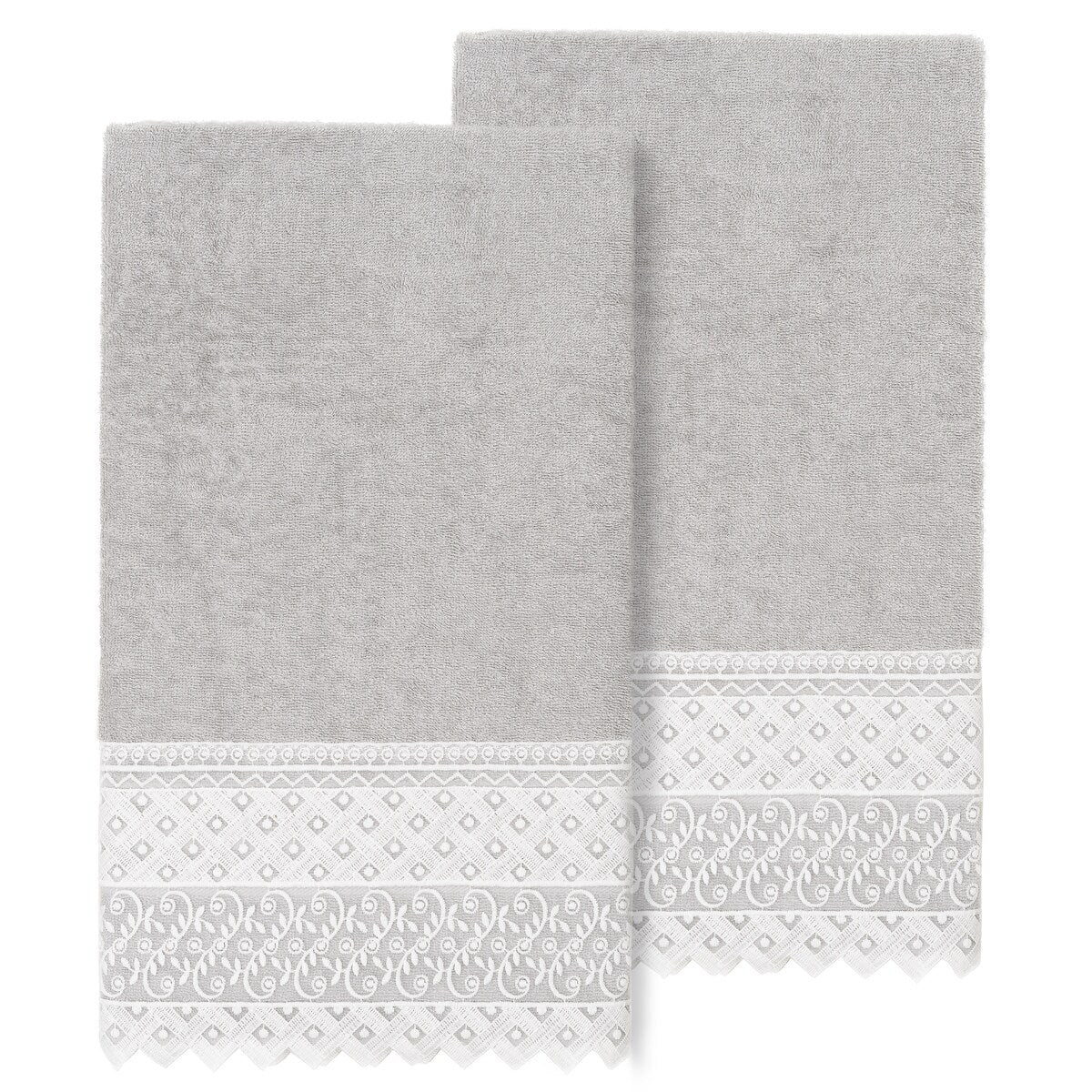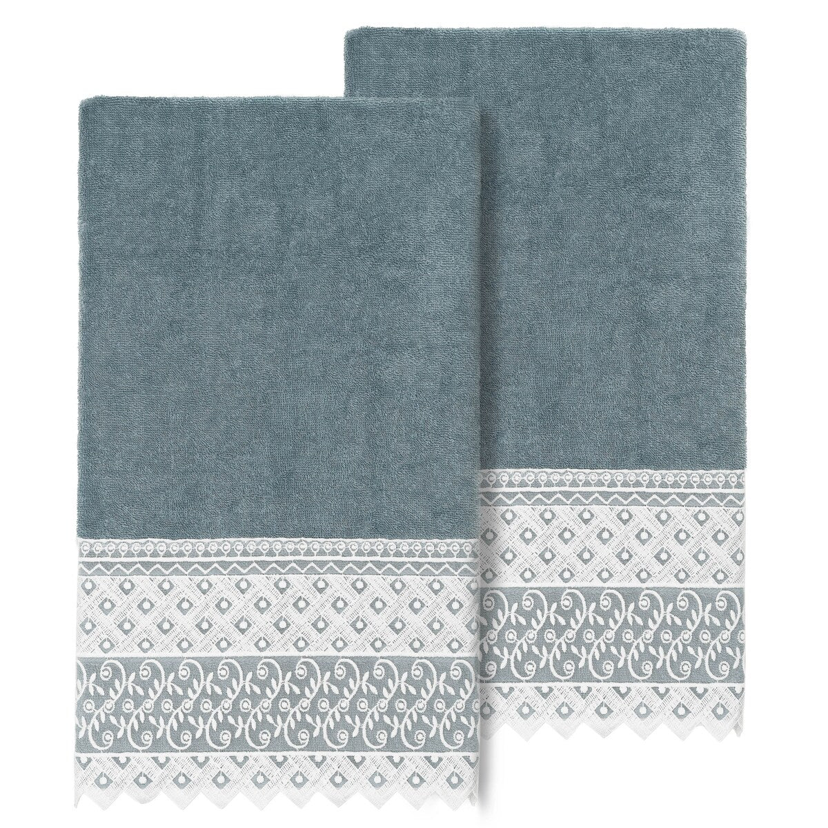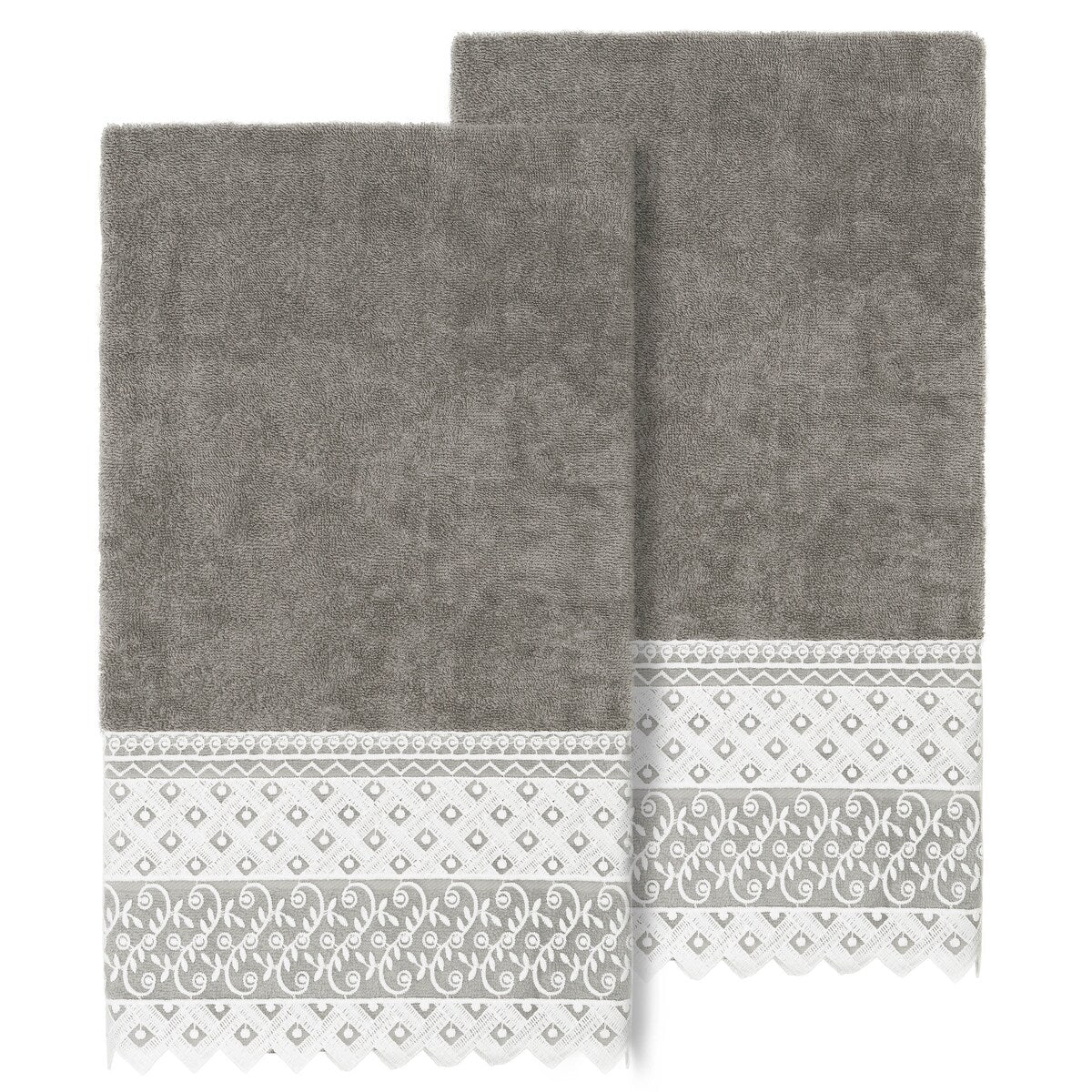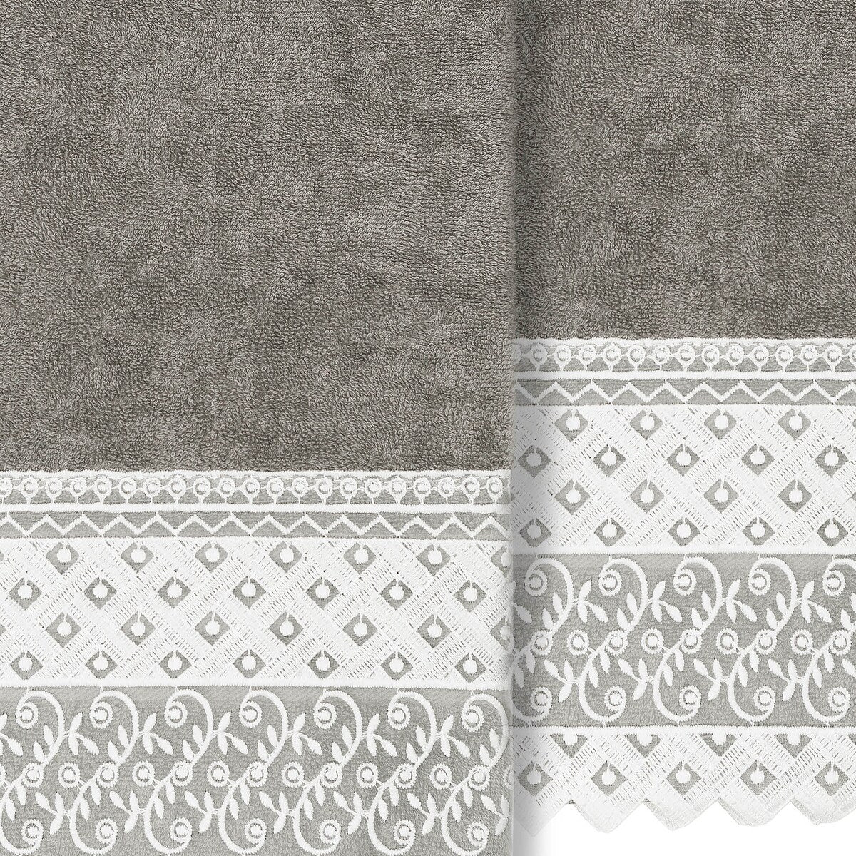 The Aiden Lace Towel Collection by Authentic Hotel and Spa features an intricate floral trellis motif, embroidered on a white organza lace border with scalloped bottom edge. These soft and luxurious towels are made of 100% premium Turkish Cotton and offer lasting absorbency and superior durability. The Aiden Lace Collection will bring a graceful note to your bath decor.