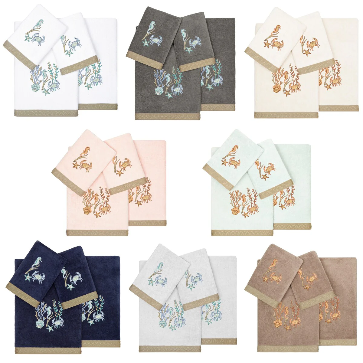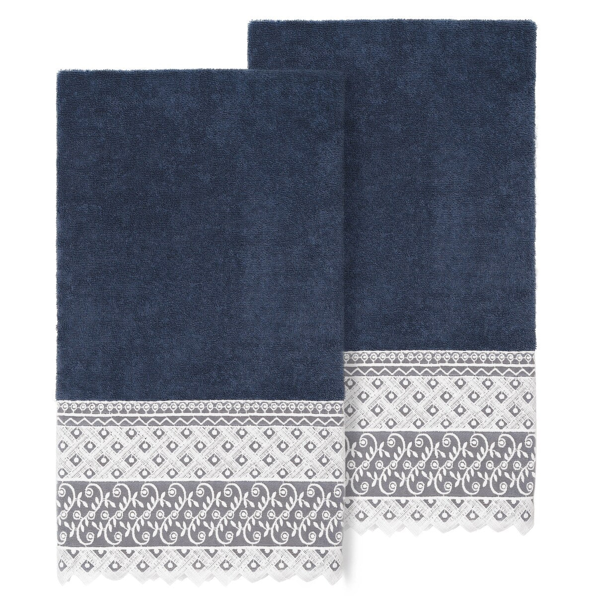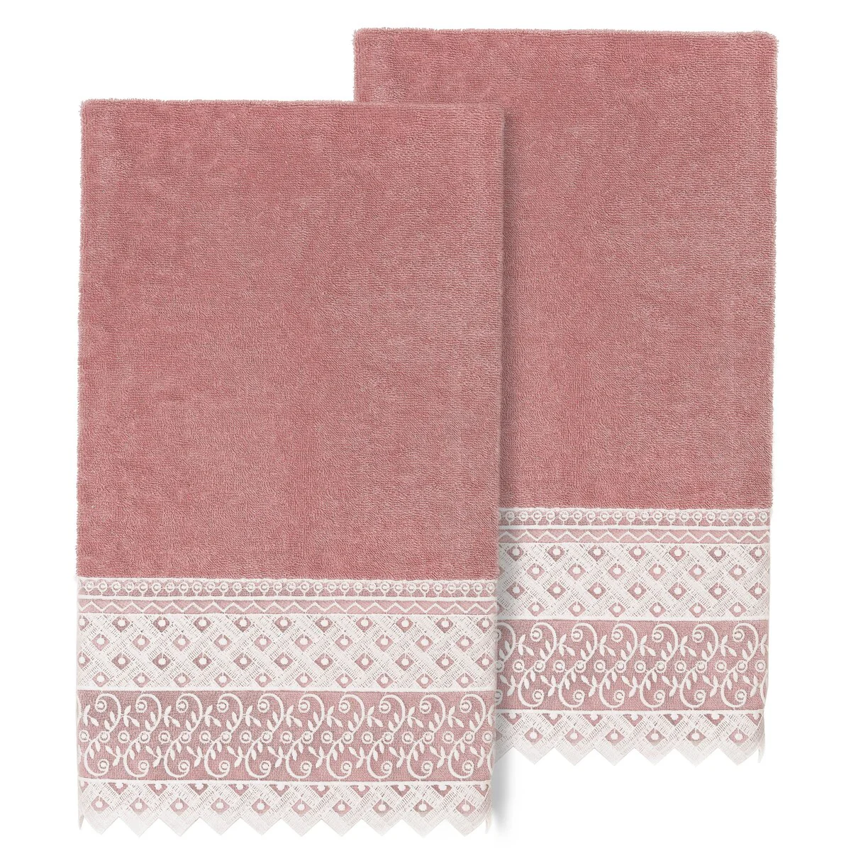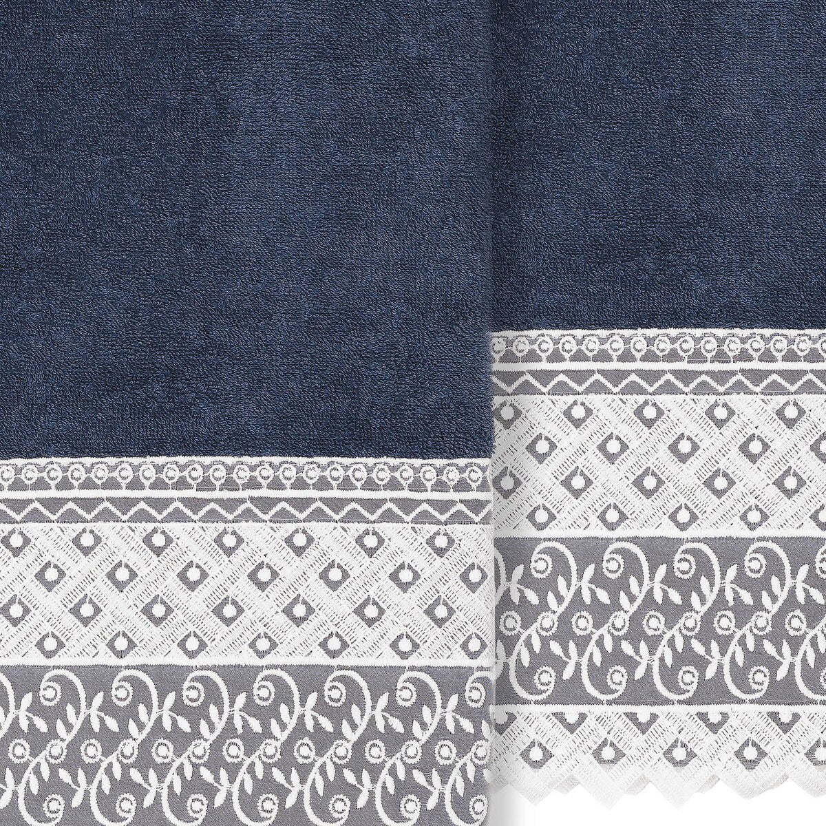 The Aiden Lace Towel Collection by Authentic Hotel and Spa features an intricate floral trellis motif, embroidered on a white organza lace border with scalloped bottom edge. These soft and luxurious towels are made of 100% premium Turkish Cotton and offer lasting absorbency and superior durability. The Aiden Lace Collection will bring a graceful note to your bath decor.
