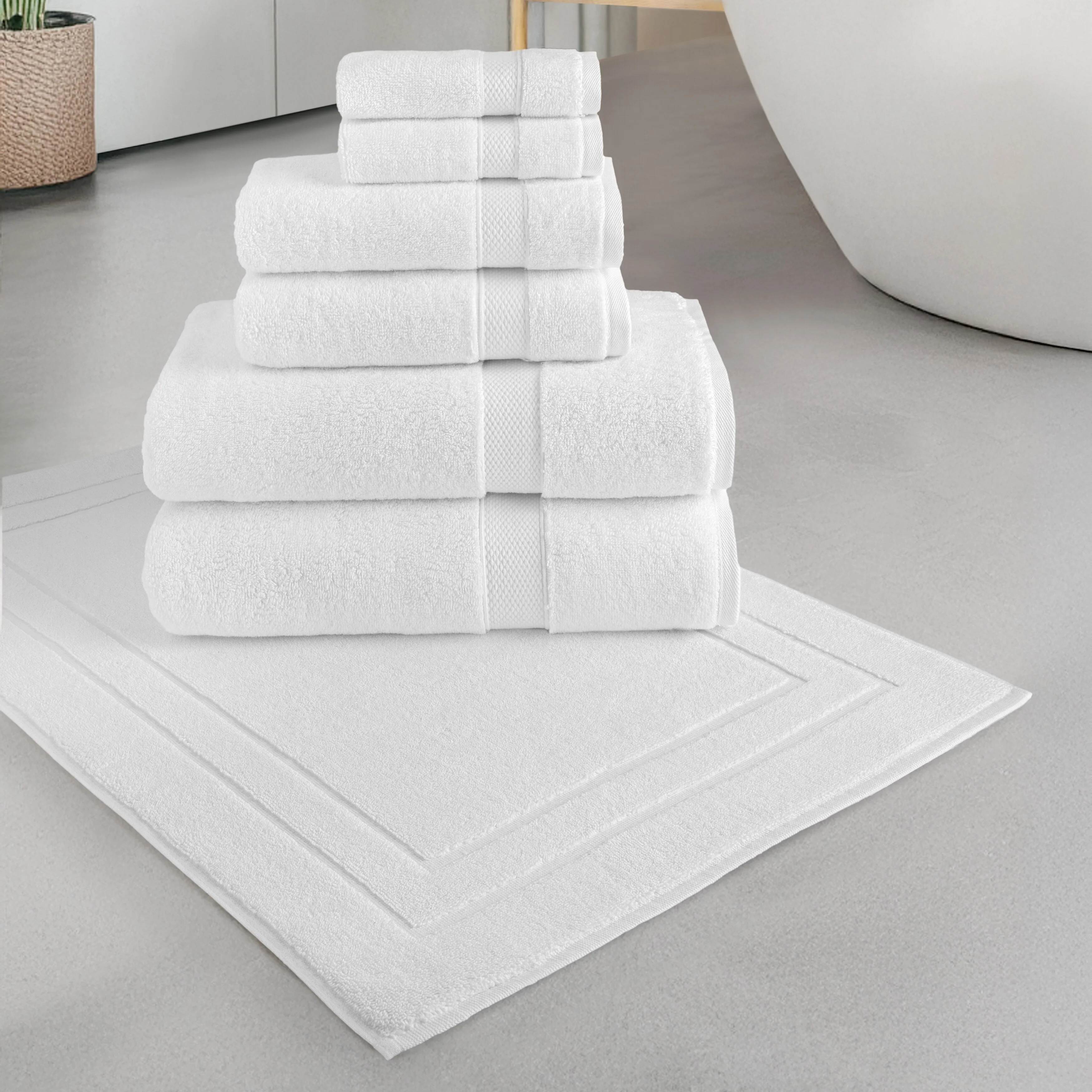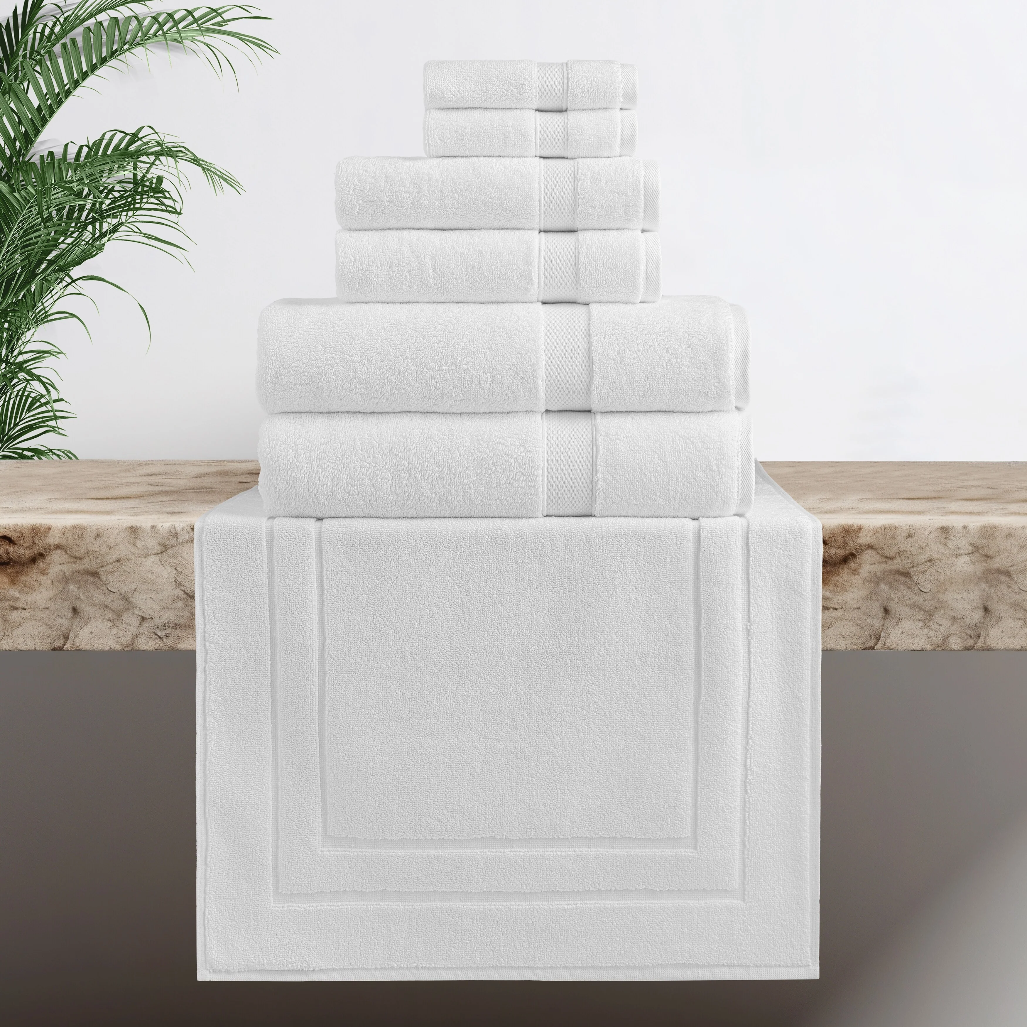 - 7-Piece set includes 2 oversized bath towel, 2 hand towel, 2 washcloth, and 1 bath mat