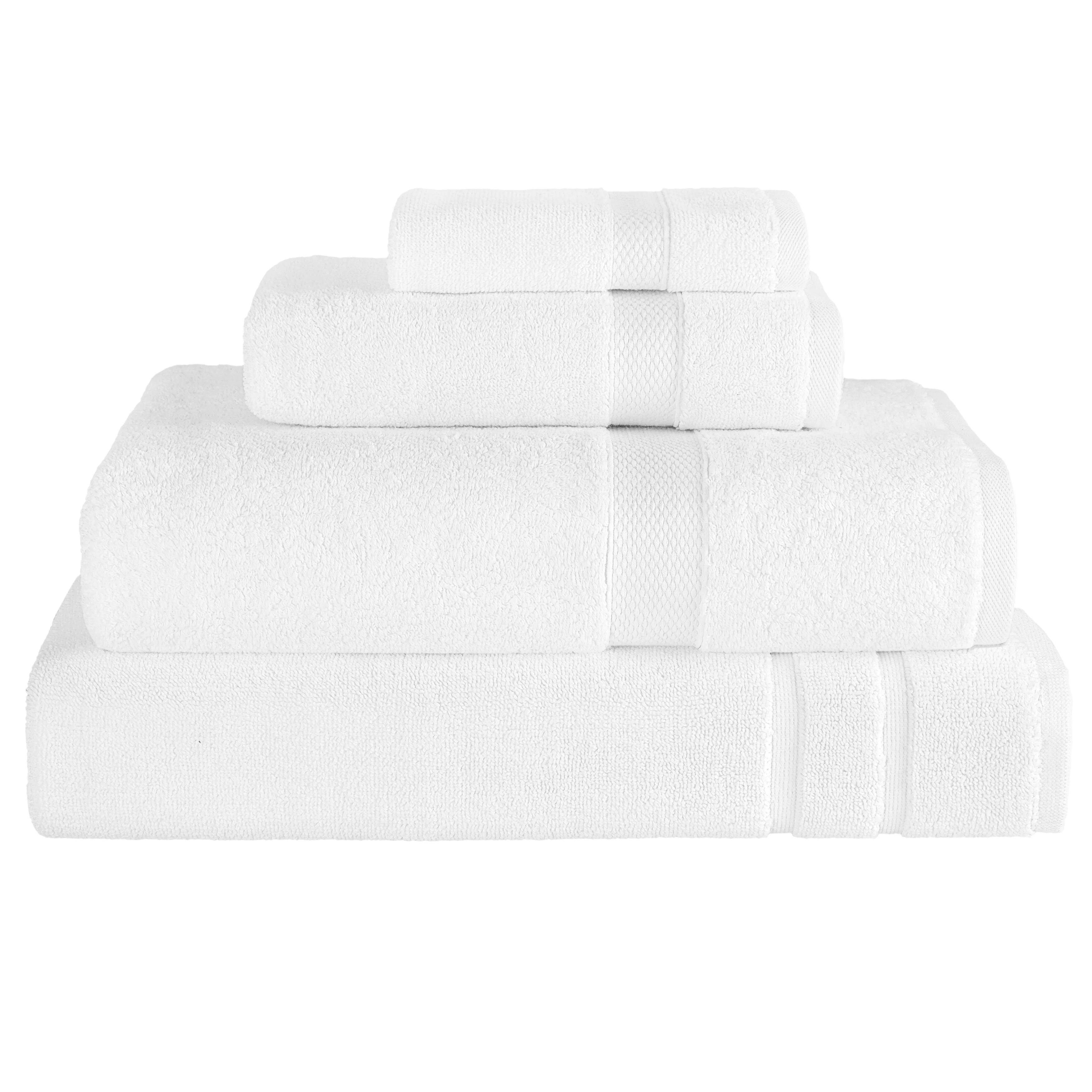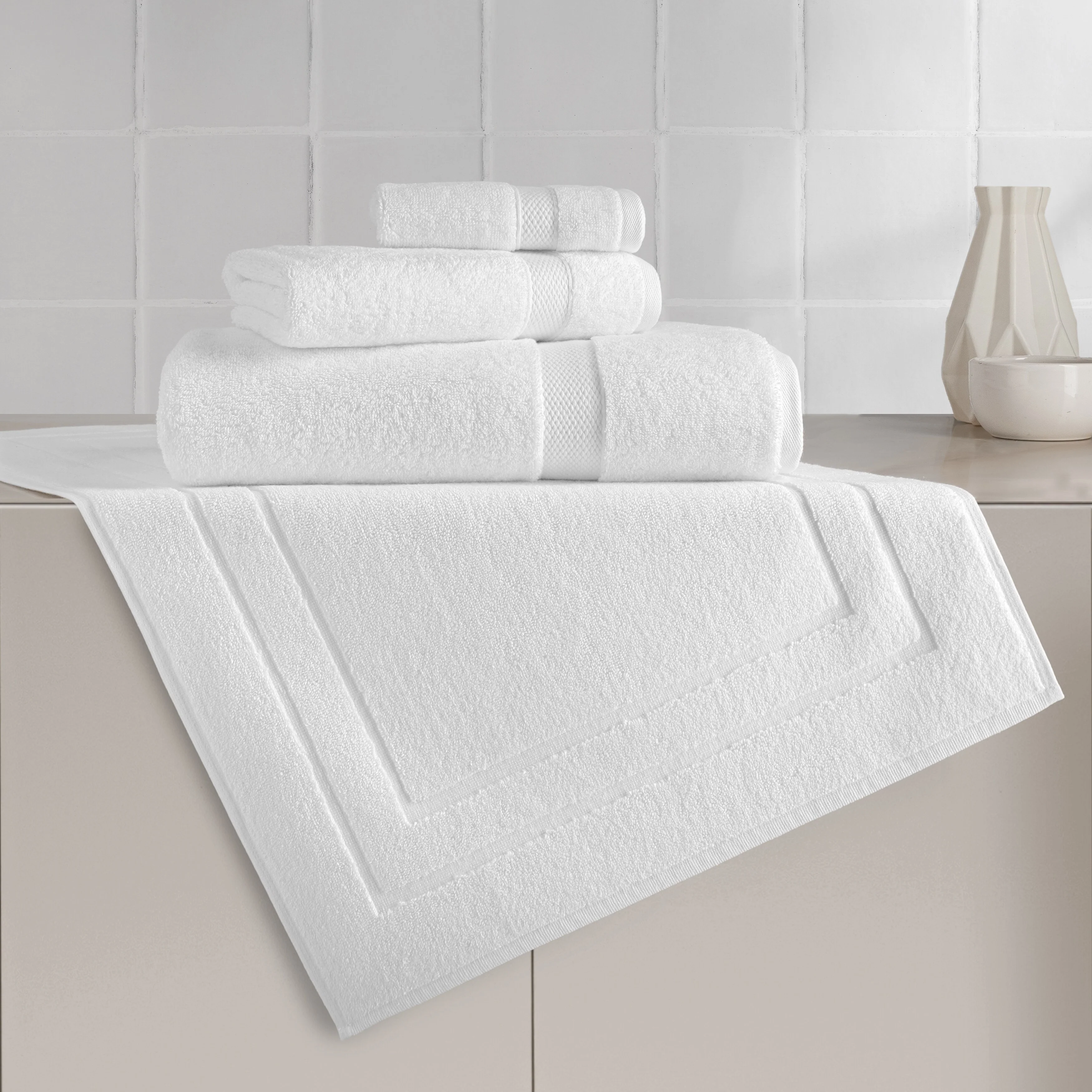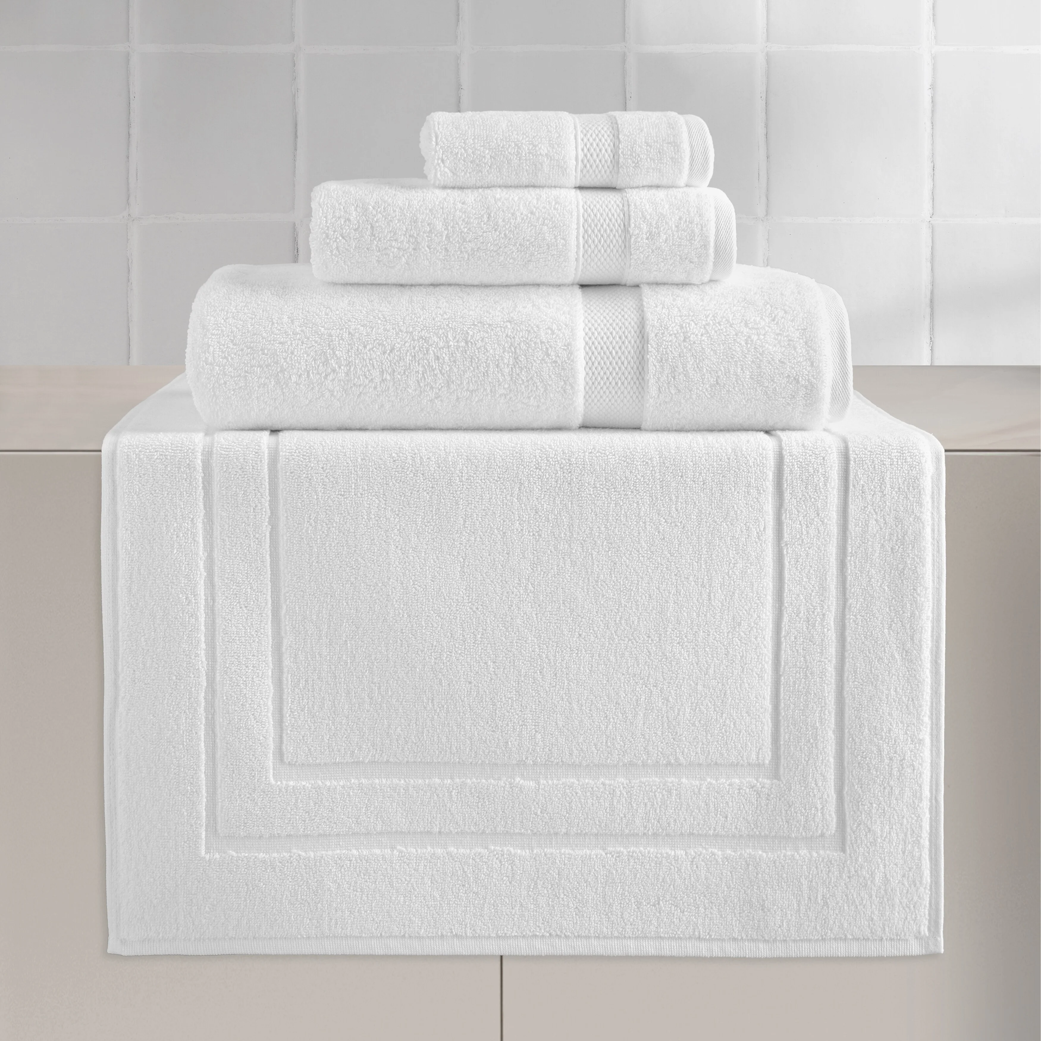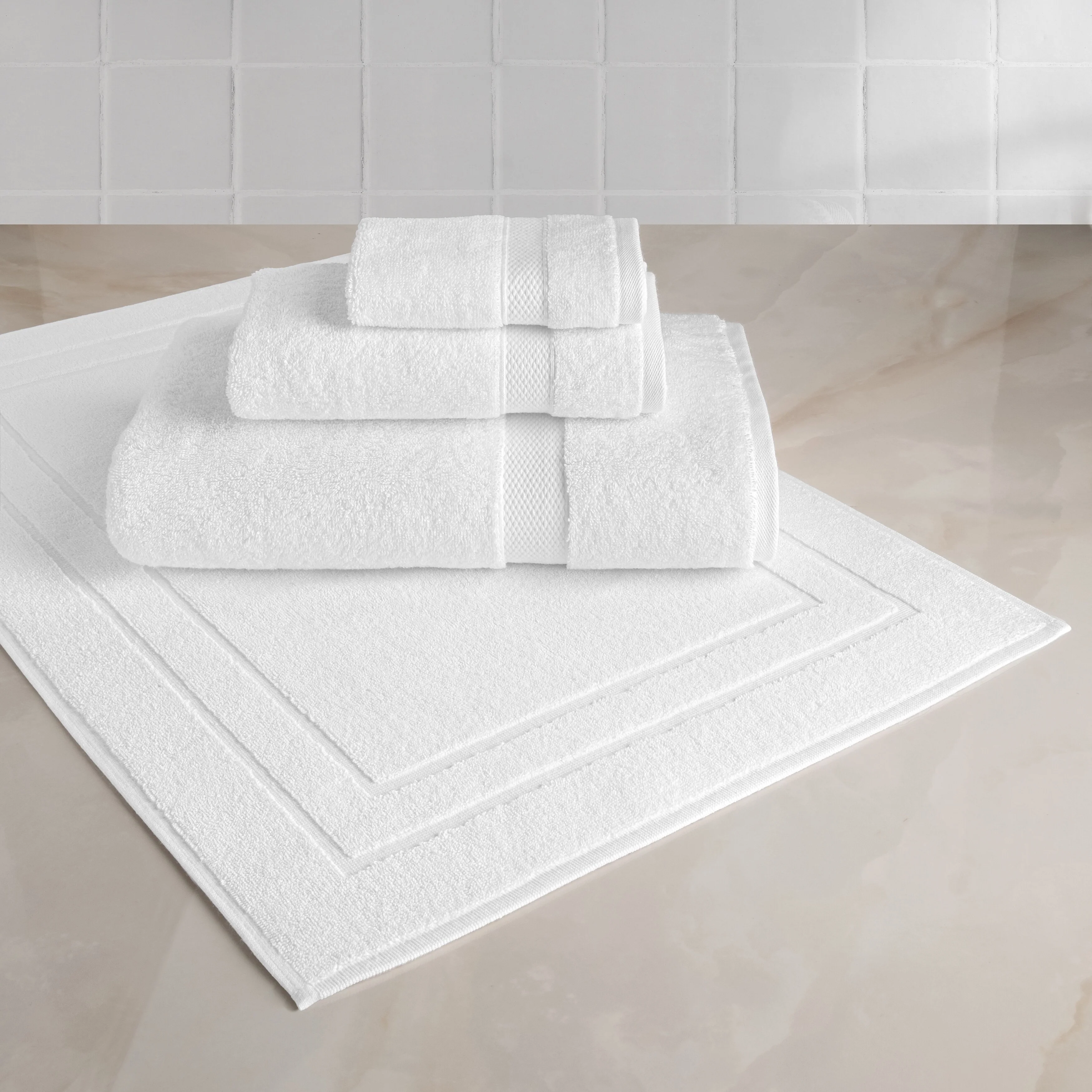 - 4-Piece set includes 1 oversized bath towel, 1 hand towel, 1 washcloth, and 1 bath mat
