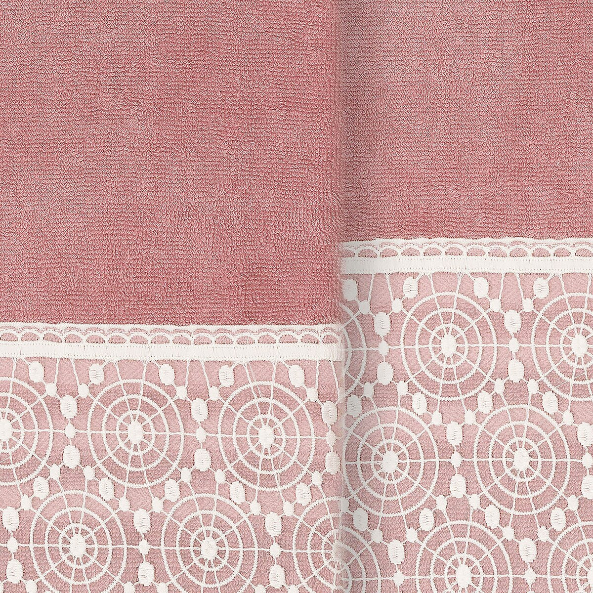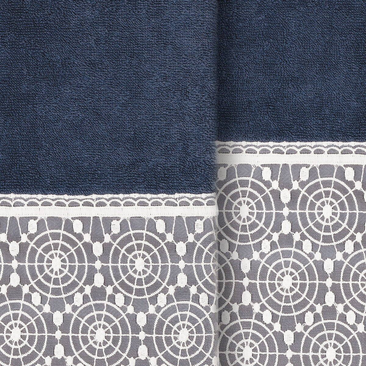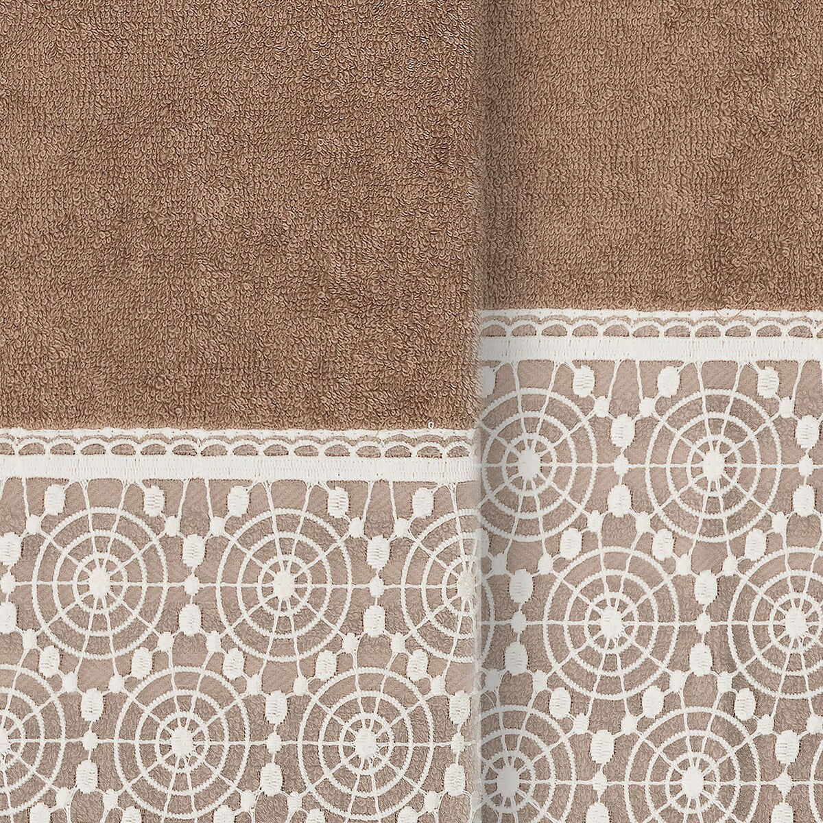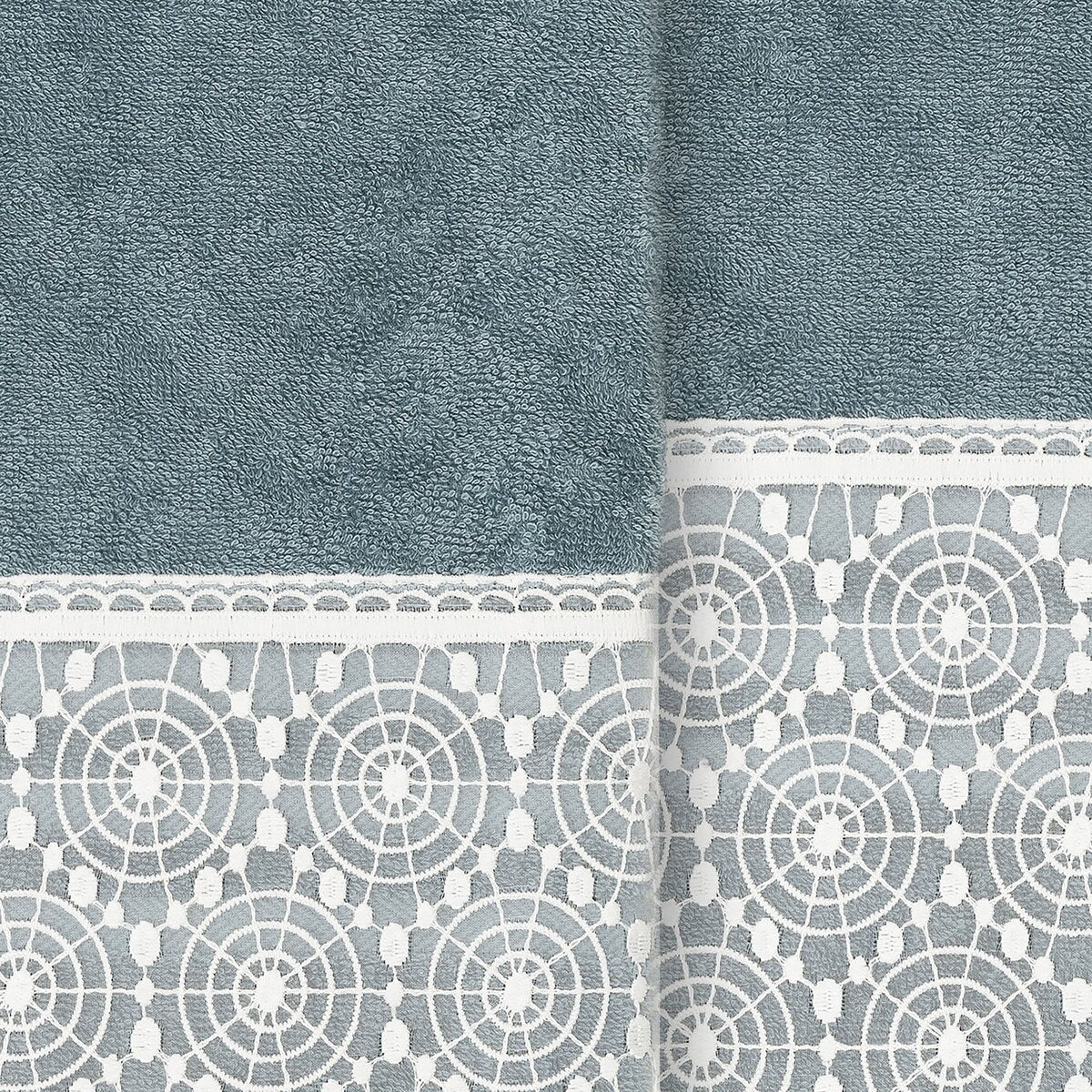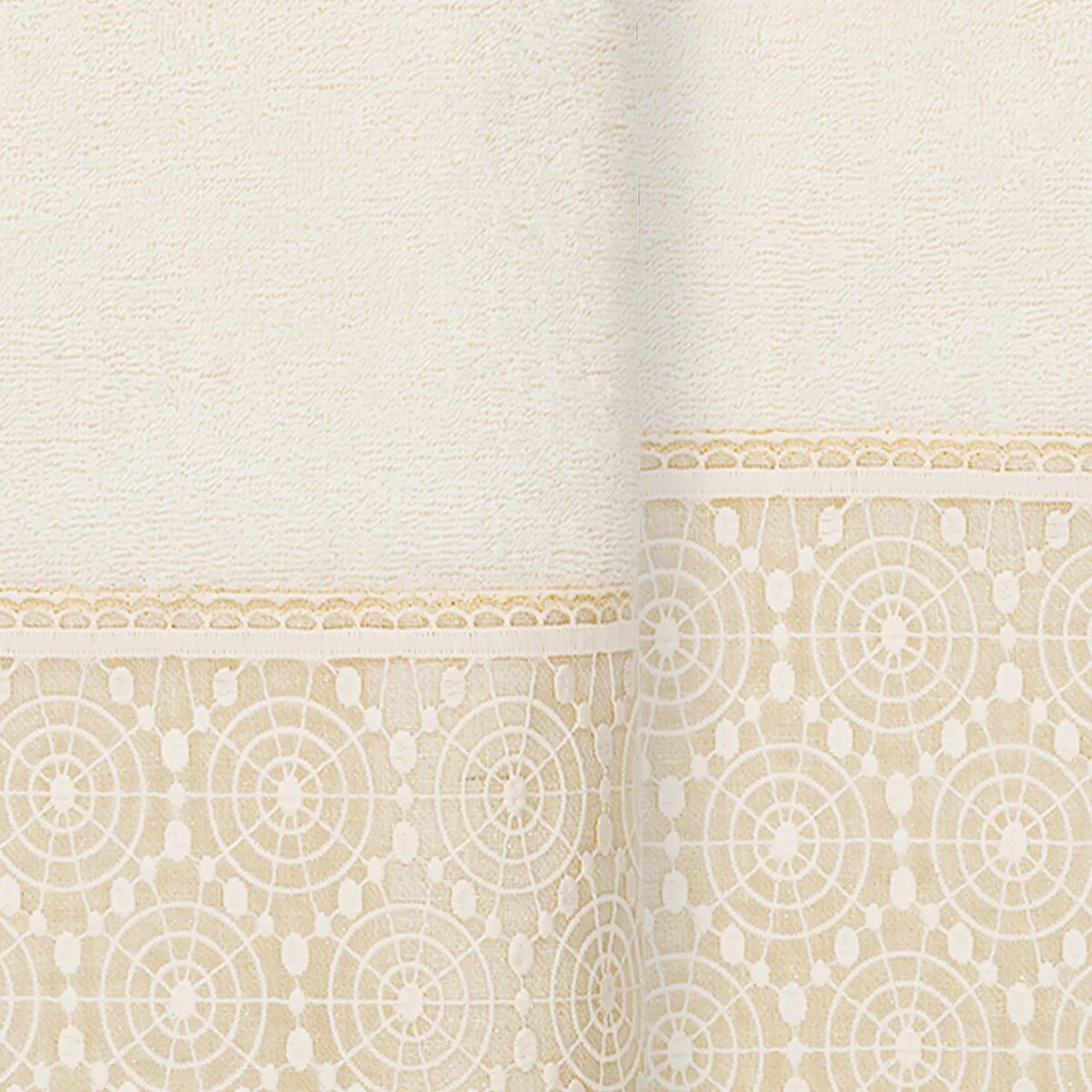 The Arian Lace Towel Collection by Authentic Hotel and Spa features an elegant circles motif, embroidered on a cream organza lace border with scalloped bottom edge. These soft and luxurious towels are made of 100% premium Turkish Cotton and offer lasting absorbency and superior durability. The Arian Lace Collection will bring a sophisticated note to your bath decor.