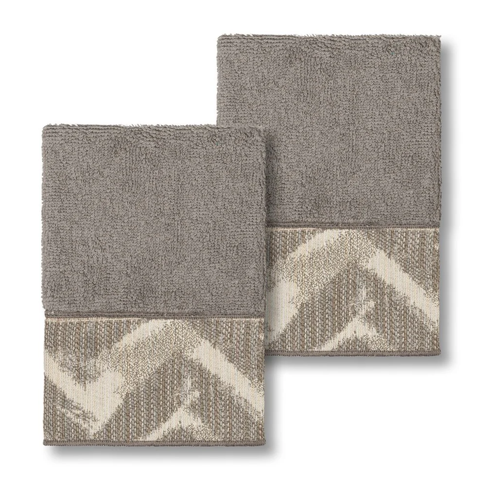 Authentic Hotel and Spa Turkish Cotton Chevron Jacquard Trim Dark Grey 4-piece Washcloth Set