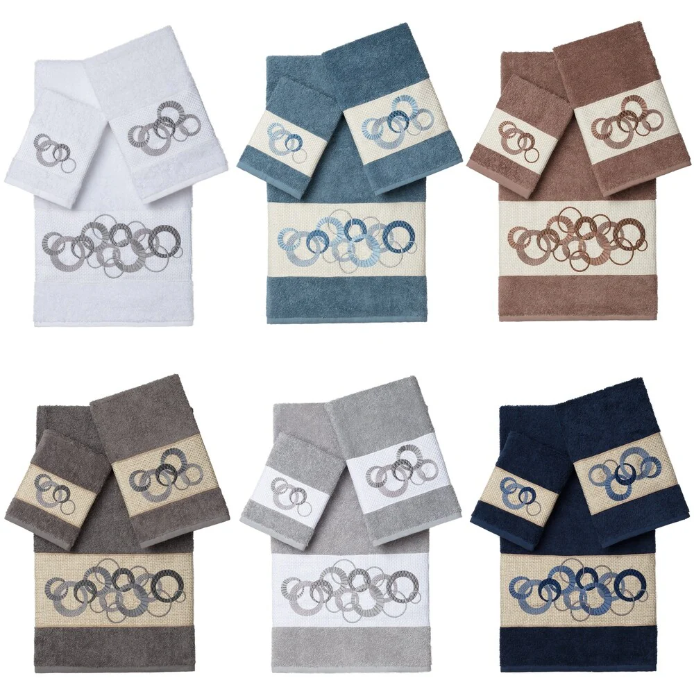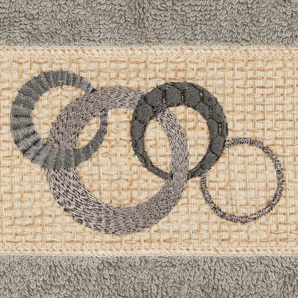 This authentic hotel and spa set of 2 washcloths are made from plush, high end Turkish cotton for supreme absorbency and durability. These beautiful dark grey washcloths are embellished with a circles embroidery design with metallic accents to add that special touch to your bathroom.