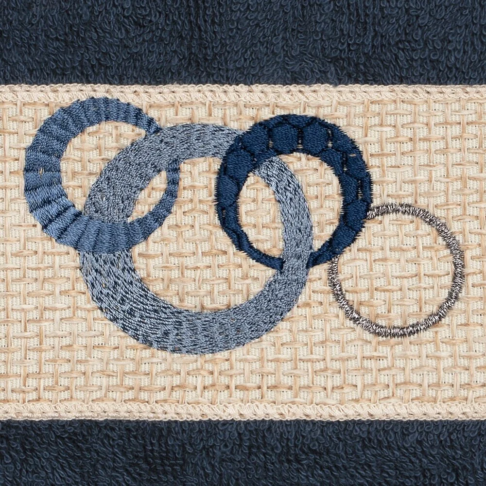 This authentic hotel and spa set of 2 washcloths are made from plush, high end Turkish cotton for supreme absorbency and durability. These beautiful midnight blue washcloths are embellished with a circles embroidery design with metallic accents to add that special touch to your bathroom.