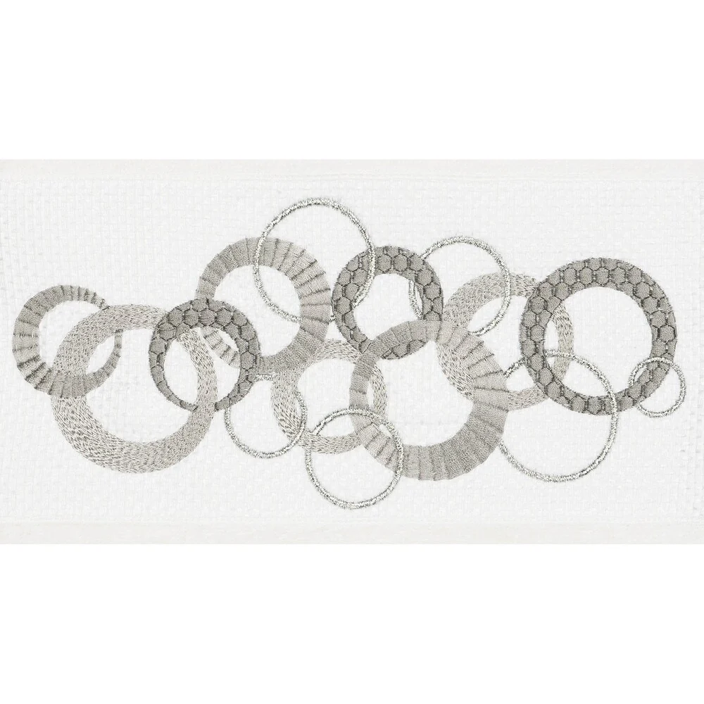 These authentic hotel and spa bath towels are made from plush, high end Turkish cotton for supreme absorbency and durability. The beautiful white towels are embellished with a circles embroidery design with metallic accents to add that special touch to your bathroom.