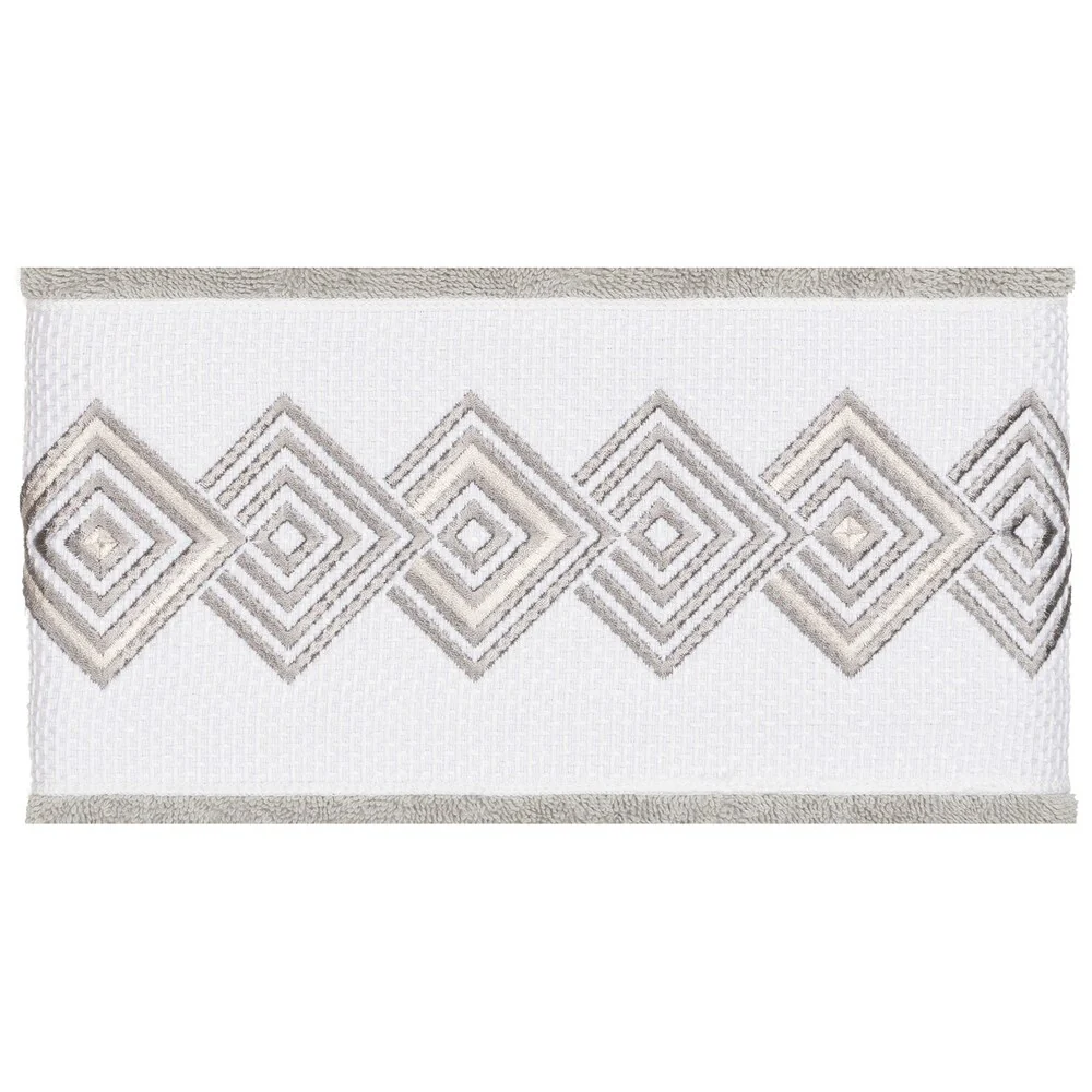 This authentic hotel and spa 3-piece towel set is made from plush, high end Turkish cotton for supreme absorbency and durability. The beautiful light grey towels are embellished with an overlapping diamonds embroidery design to add that special touch to your bathroom.