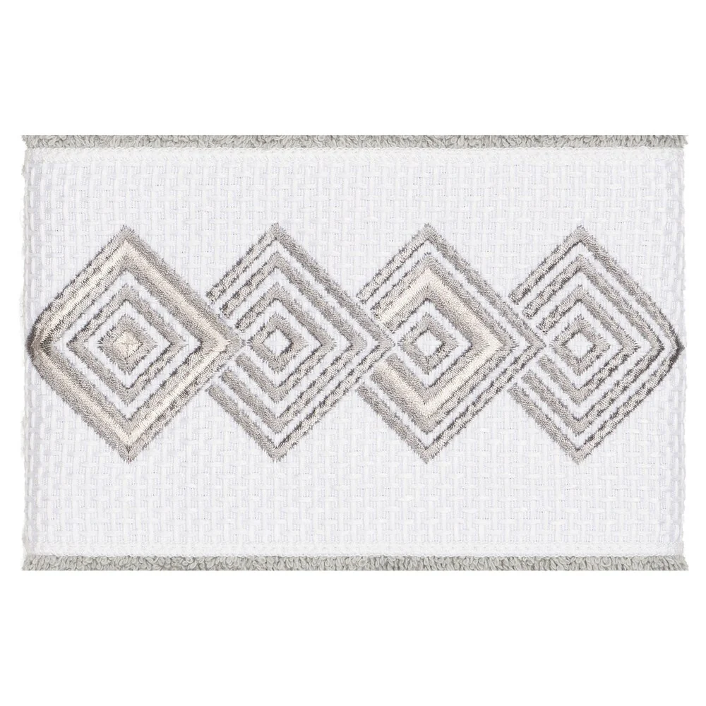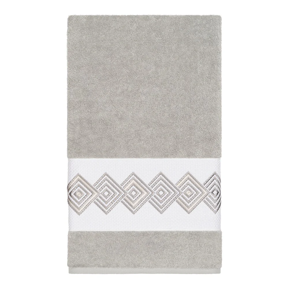 This authentic hotel and spa 4-piece towel set is made from plush, high end Turkish cotton for supreme absorbency and durability. The beautiful light grey towels are embellished with an overlapping diamonds embroidery design to add that special touch to your bathroom.
