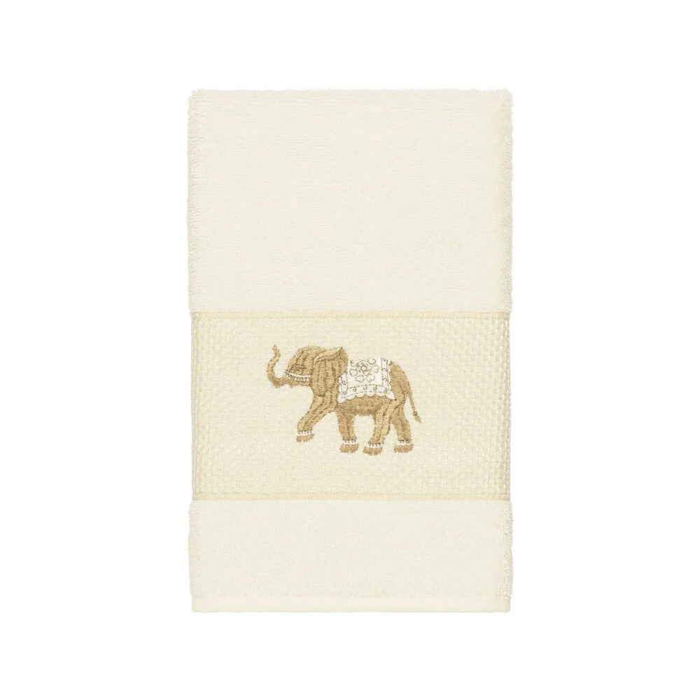 This authentic hotel and spa 3-piece towel set is made from plush, high end Turkish cotton for supreme absorbency and durability. These beautiful cream towels are embellished with an elephant embroidery design with a textured woven border to add that special touch to your bathroom.