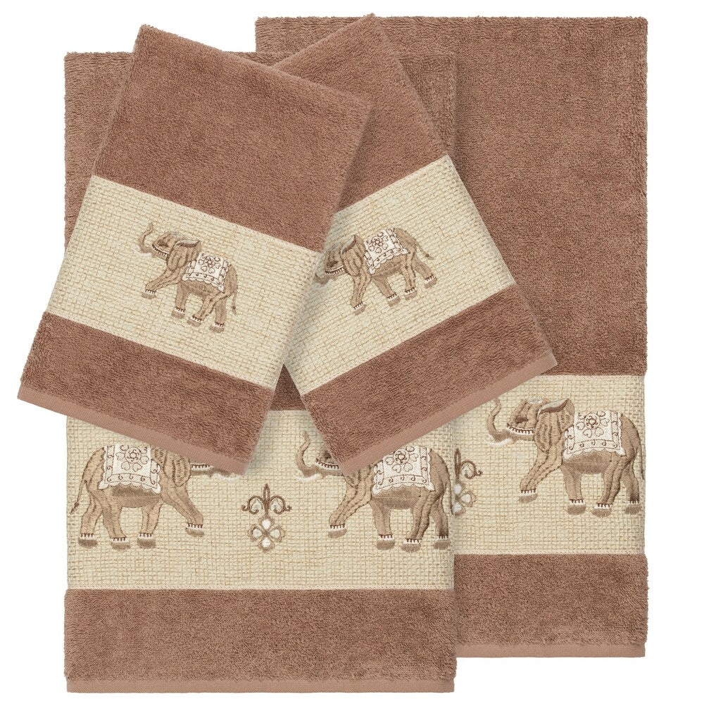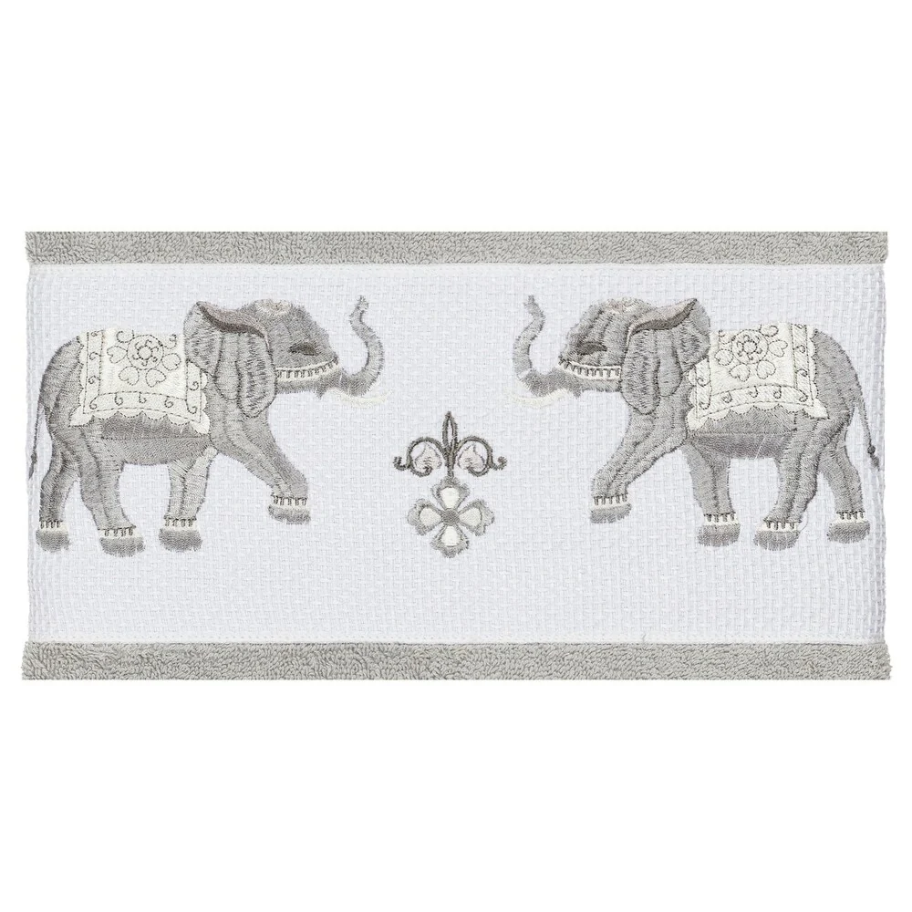These authentic hotel and spa bath towels are made from plush, high end Turkish cotton for supreme absorbency and durability. The beautiful light grey towels are embellished with an elephant embroidery design with a textured woven border to add that special touch to your bathroom.