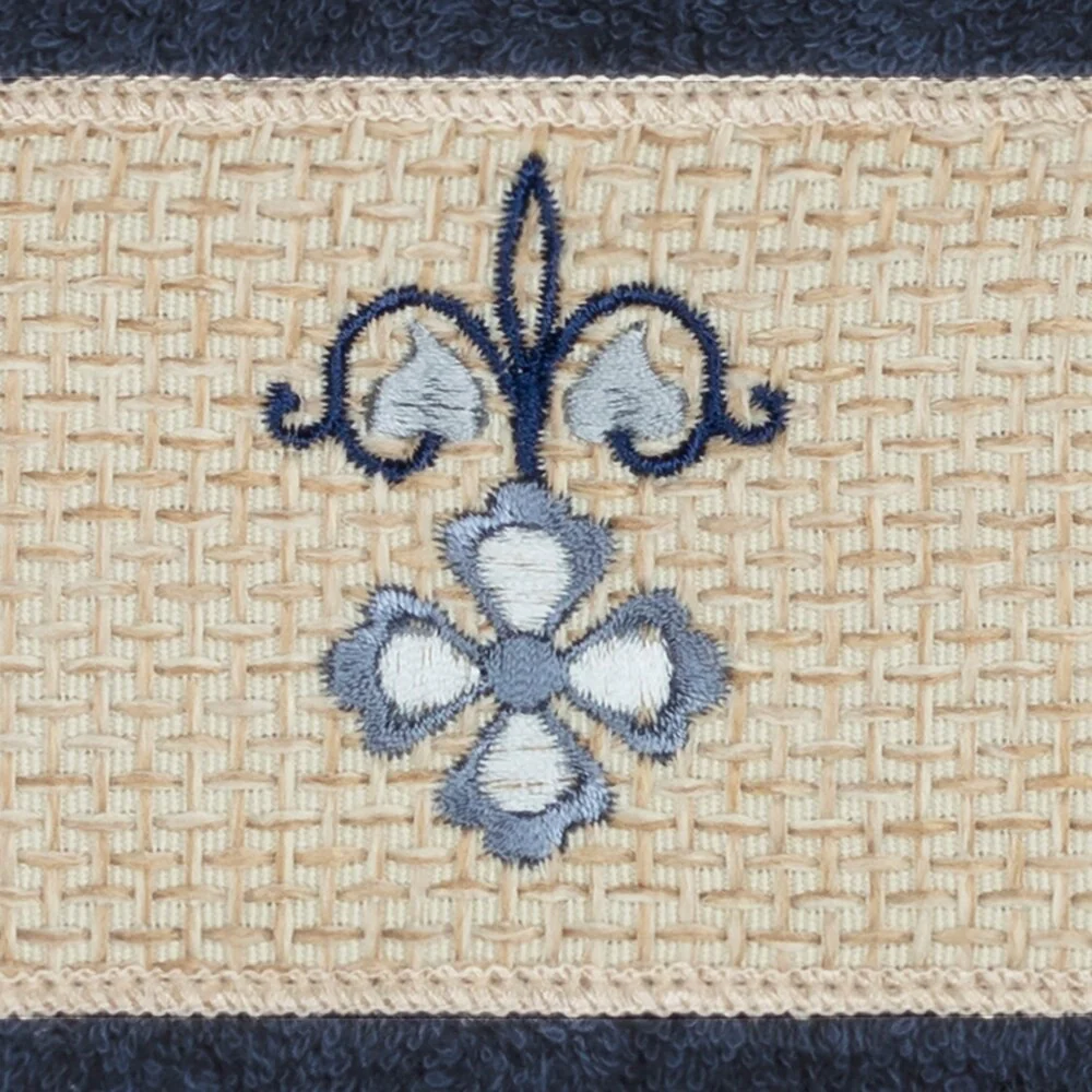 This authentic hotel and spa 3-piece towel set is made from plush, high end Turkish cotton for supreme absorbency and durability. These beautiful midnight blue towels are embellished with an elephant embroidery design with a textured woven border to add that special touch to your bathroom.