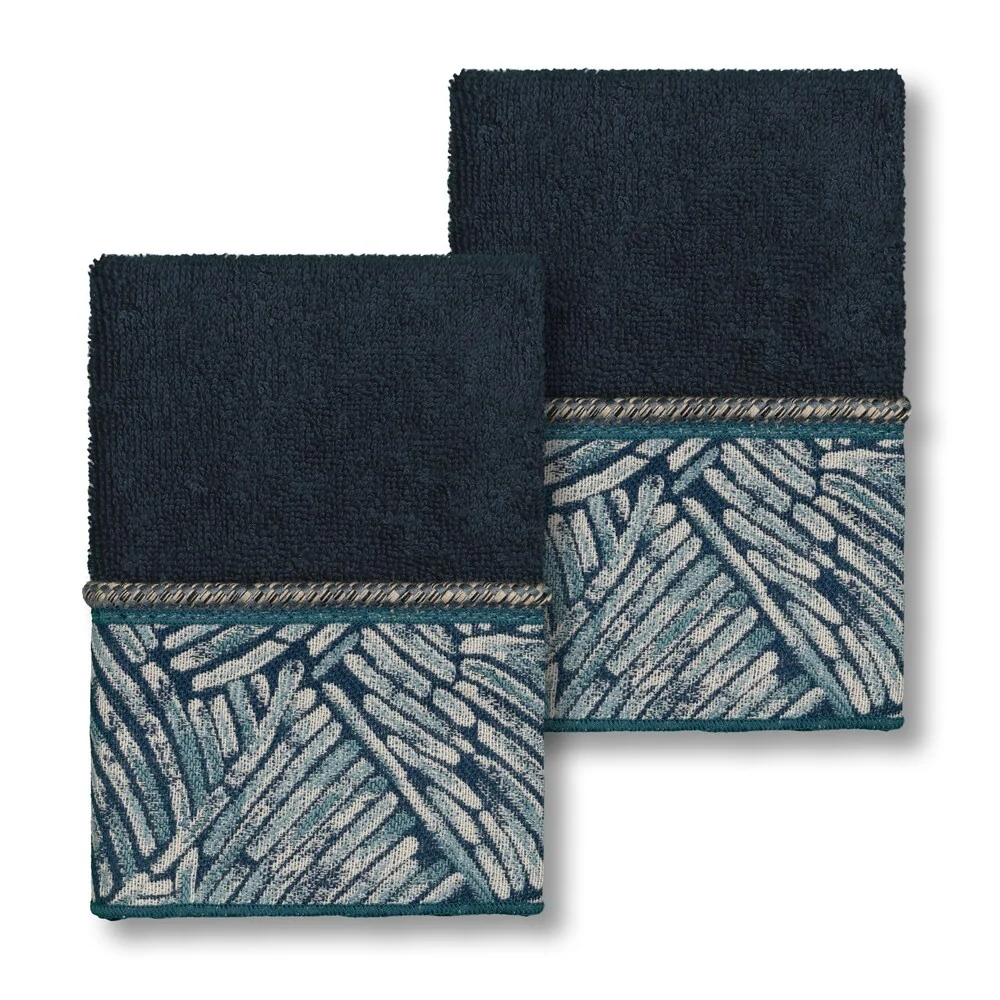 This authentic hotel and spa washcloth is made from plush, high end Turkish cotton for supreme absorbency and durability. This beautiful light grey washcloth is embellished with contemporary, earthy and textural grey jacquard woven fern-like patterned border, accented with a grey-multi bolo cord trim to add that special touch to your bathroom.