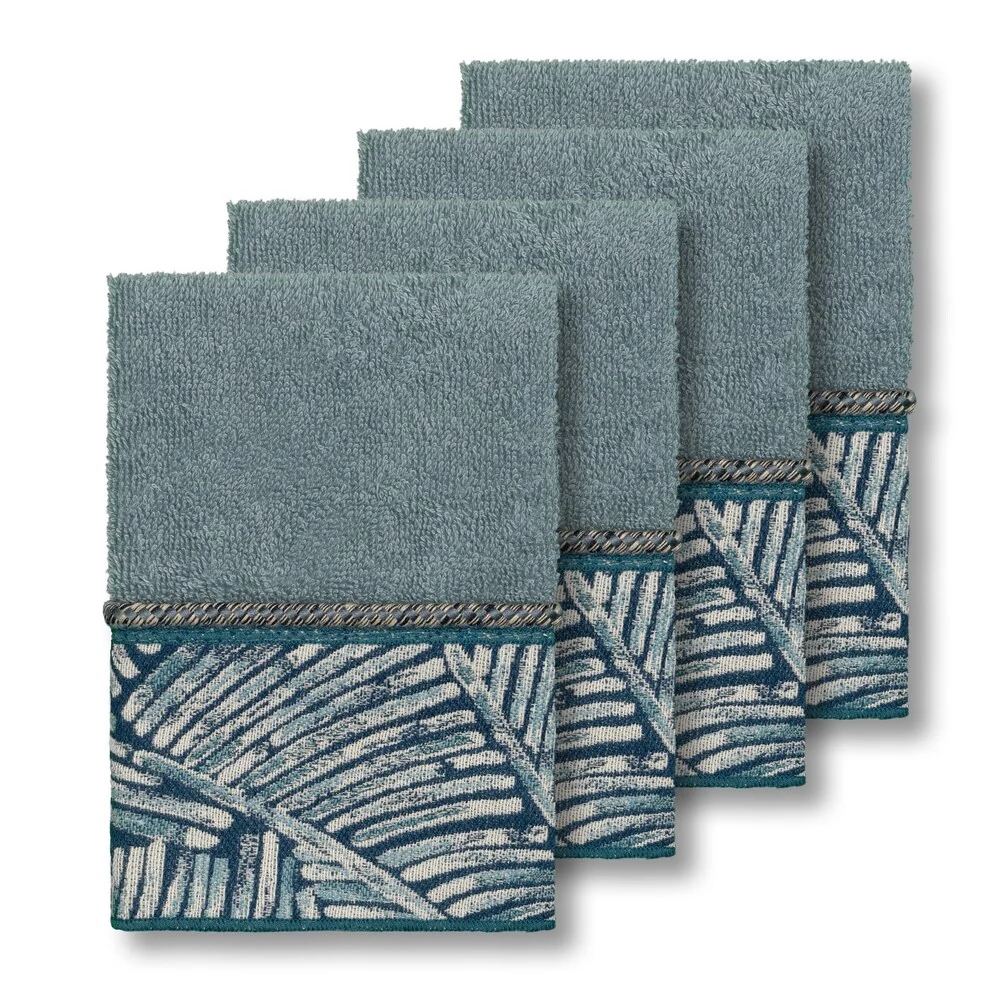 Authentic Hotel and Spa Turkish Cotton Fern Jacquard Trim Teal Blue Washcloth